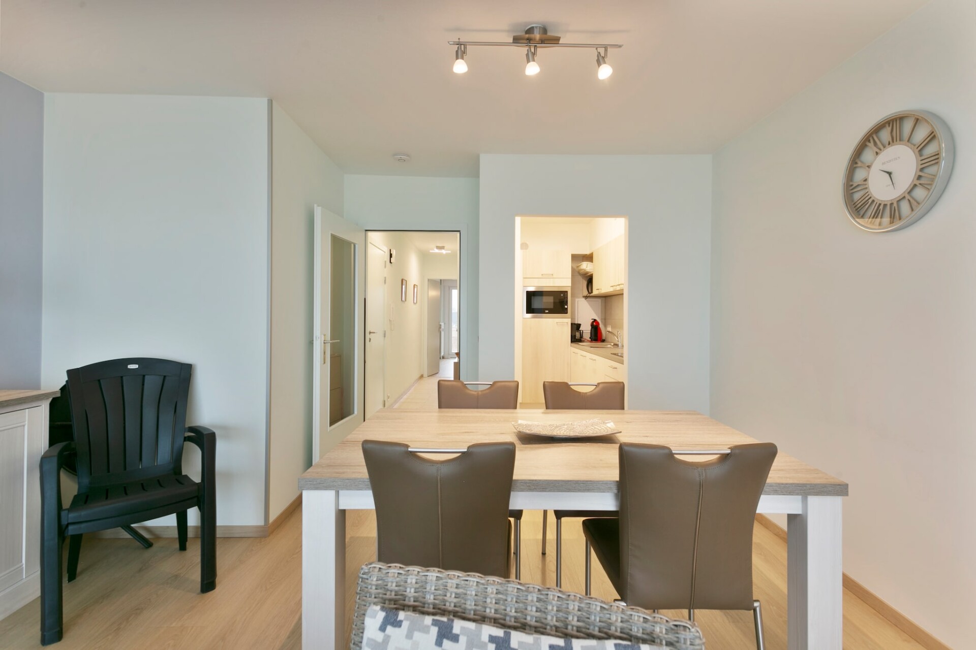 Het appartement beschikt over zowel voor- als achterterrassen, ingericht met comfortabele stoelen en een tuintafel, zodat u op elk moment van de dag buiten kunt ontspannen. Een volledig uitgeruste keuken met een magnetron, oven en koffiezetapparaat zorgt voor een comfortabel verblijf, terwijl moderne meubels een warme en uitnodigende ambiance creëren. Dit heerlijke toevluchtsoord biedt de perfecte balans tussen comfort en kustcharme.