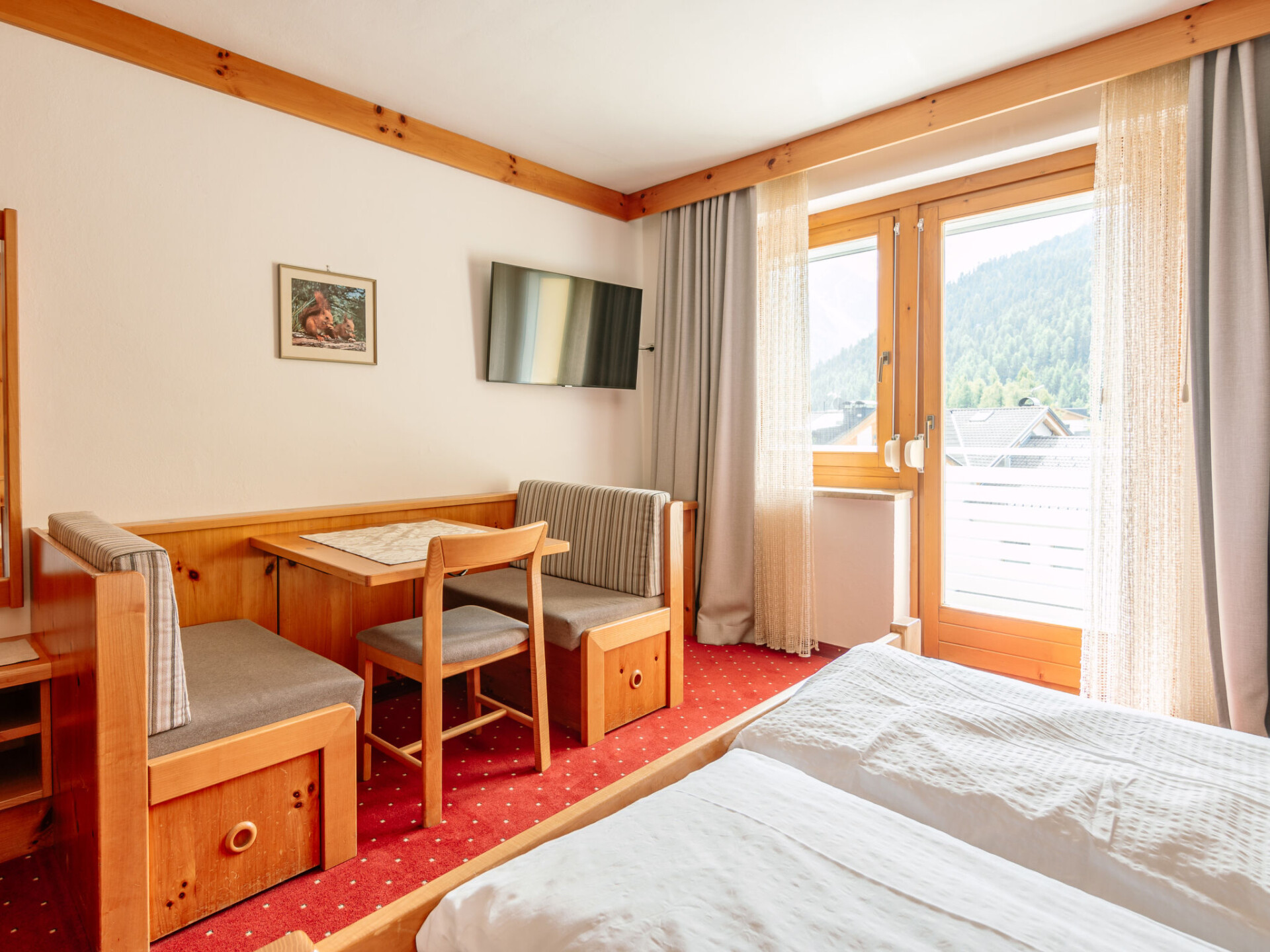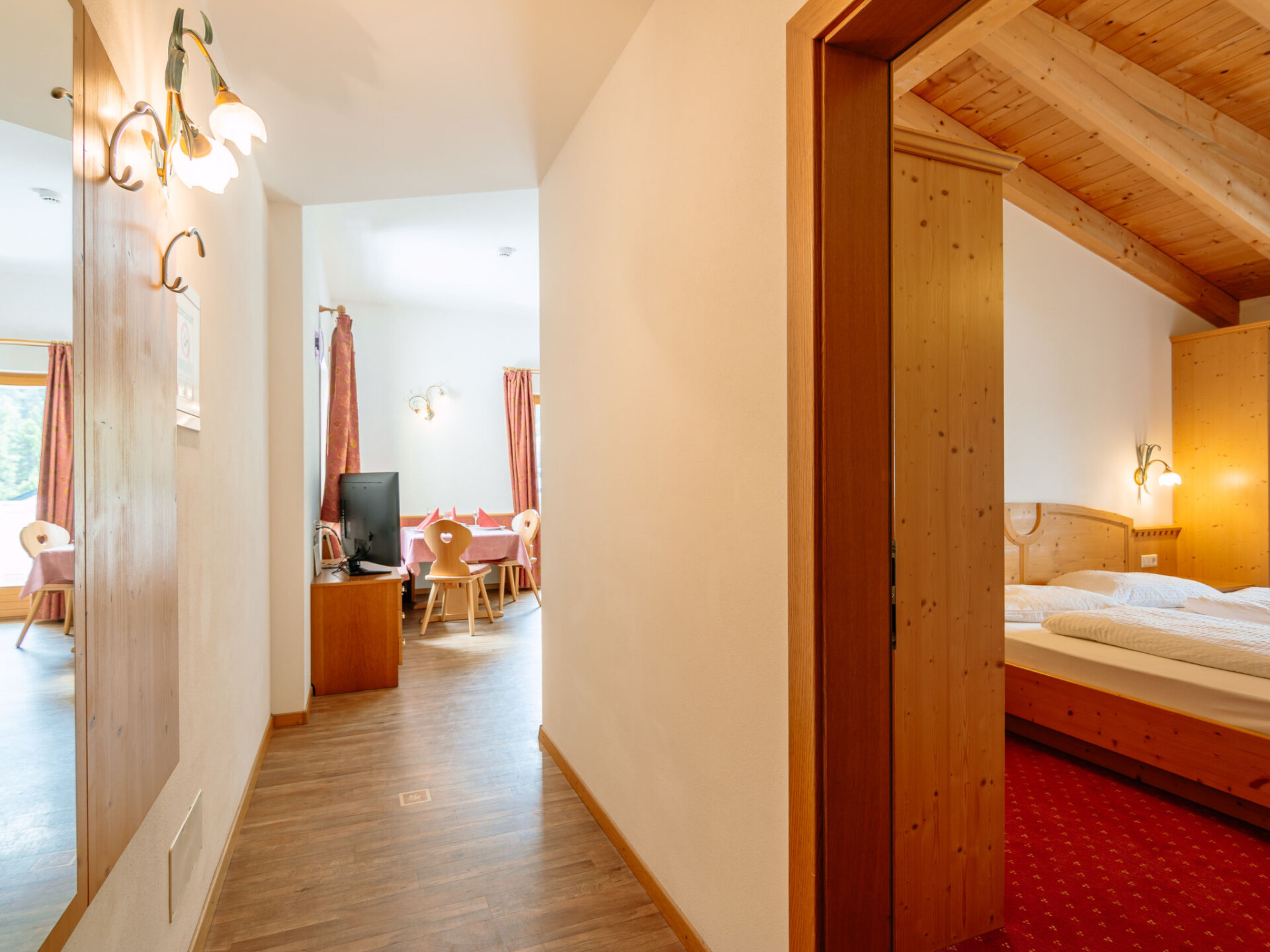Mooi flatgebouw "Olympia", van 4 verdiepingen. In de plaats, 450 m van het centrum van Sulden, zonnige, verhoogde ligging, 50 m van de bosrand, 750 m van het skigebied. Voor medegebruik: terras, tuinmeubelen. In het huis: receptie, bar, ontbijtruimte, sauna, stoombad (alles incl.), ontspanningsruimte, lift, skischoendroger. Ontbijt op aanvraag (extra). In de winter sneeuwkettingen aanbevolen. Parkeerplaats bij het huis. Winkel, levensmiddelenwinkel 450 m, supermarkt 500 m, restaurant 100 m, café 20 m, bushalte 3.6 km. Wandelroutes 10 m vanaf het huis, kabelbaan 1 km, stoeltjeslift, ski faciliteiten 750 m, skibushalte 20 m, kinderskischool 900 m. Bekende skigebieden kunnen gemakkelijk worden bereikt: Kanzellift 1 km, Rosimbahn 2.6 km, Langenstein 700 m. Wandelgebied Sulden am Ortler, Madritschhütte, Schöneck. De eigenaar woont in hetzelfde huis.