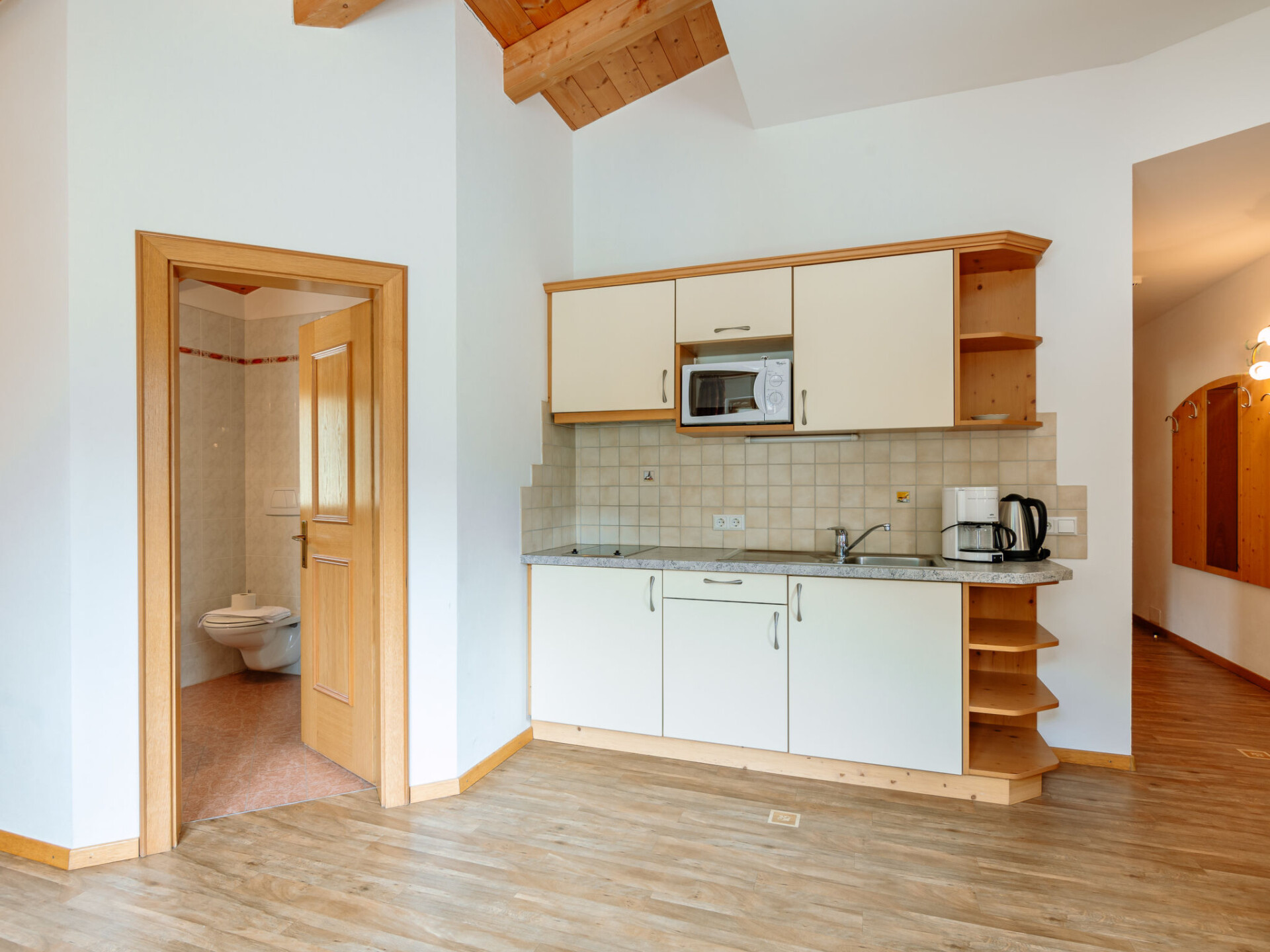 "Nr. 17", appartement 4-kamers 90 m2. Gezellig ingericht: woon-/eetkamer met gasverwarming. Uitgang naar het balkon. 1 2-pers. kamer. 2 2-pers. kamers, elke kamer heeft douche/bidet/WC. Woonkeuken (4 keramische glas kookplaten, waterkoker, magnetron, elektrische koffiemachine) met TV. Uitgang naar het balkon. Douche/bidet/WC. Houtverwarming. Klein balkon. Balkonmeubilair. Mooi uitzicht op de bergen en het landschap. Ter beschikking: kinderstoel, kinderbed tot 2 jaar. Internet (WiFi, gratis). Maximaal 1 huisdier/hond toegestaan. Geen interne verbinding tussen de aparte wooneenheden. IT021095A15PFH6SA9