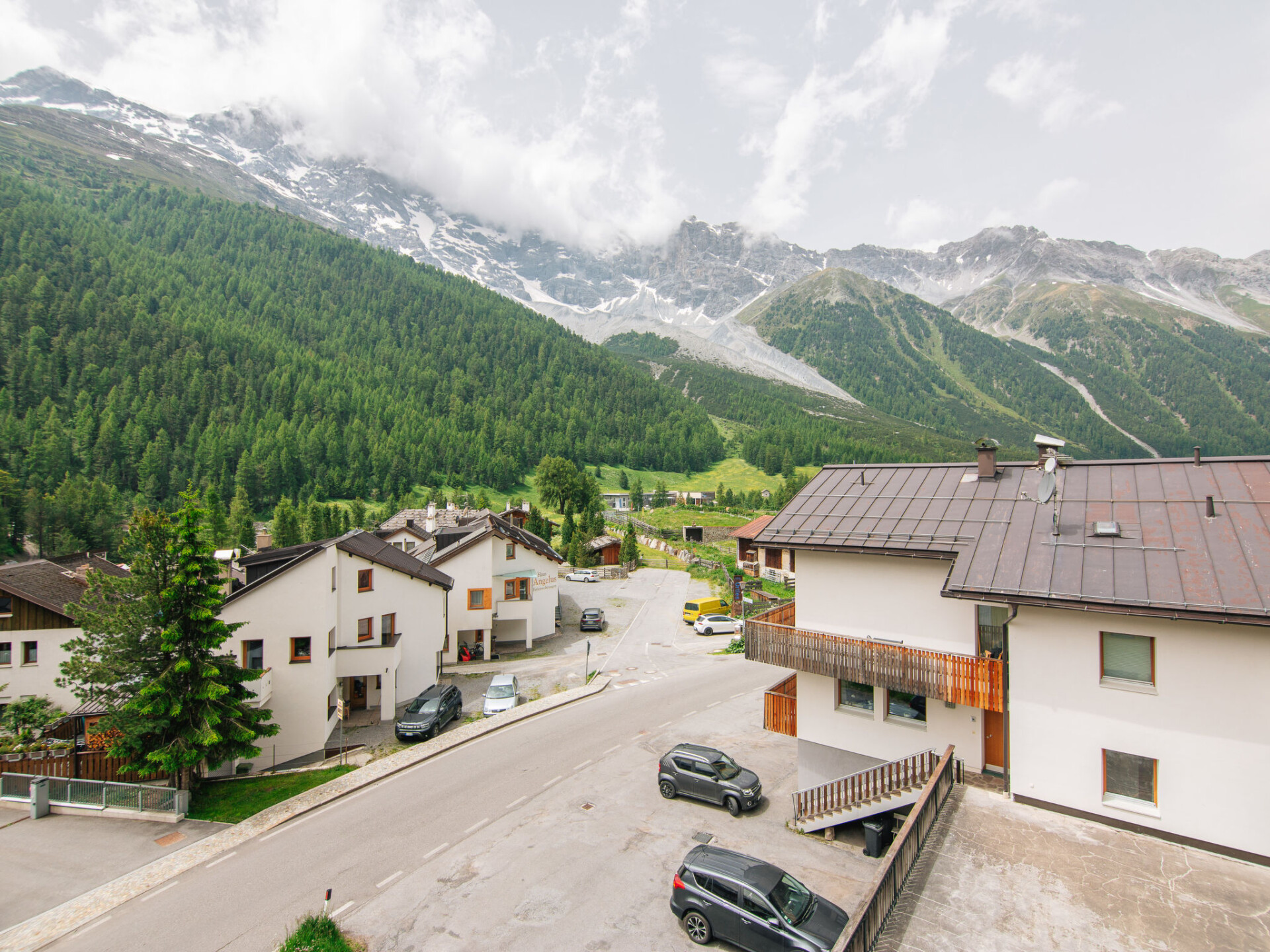 Mooi flatgebouw "Olympia", van 4 verdiepingen. In de plaats, 450 m van het centrum van Sulden, zonnige, verhoogde ligging, 50 m van de bosrand, 750 m van het skigebied. Voor medegebruik: terras, tuinmeubelen. In het huis: receptie, bar, ontbijtruimte, sauna, stoombad (alles incl.), ontspanningsruimte, lift, skischoendroger. Ontbijt op aanvraag (extra). In de winter sneeuwkettingen aanbevolen. Parkeerplaats bij het huis. Winkel, levensmiddelenwinkel 450 m, supermarkt 500 m, restaurant 100 m, café 20 m, bushalte 3.6 km. Wandelroutes 10 m vanaf het huis, kabelbaan 1 km, stoeltjeslift, ski faciliteiten 750 m, skibushalte 20 m, kinderskischool 900 m. Bekende skigebieden kunnen gemakkelijk worden bereikt: Kanzellift 1 km, Rosimbahn 2.6 km, Langenstein 700 m. Wandelgebied Sulden am Ortler, Madritschhütte, Schöneck. De eigenaar woont in hetzelfde huis.