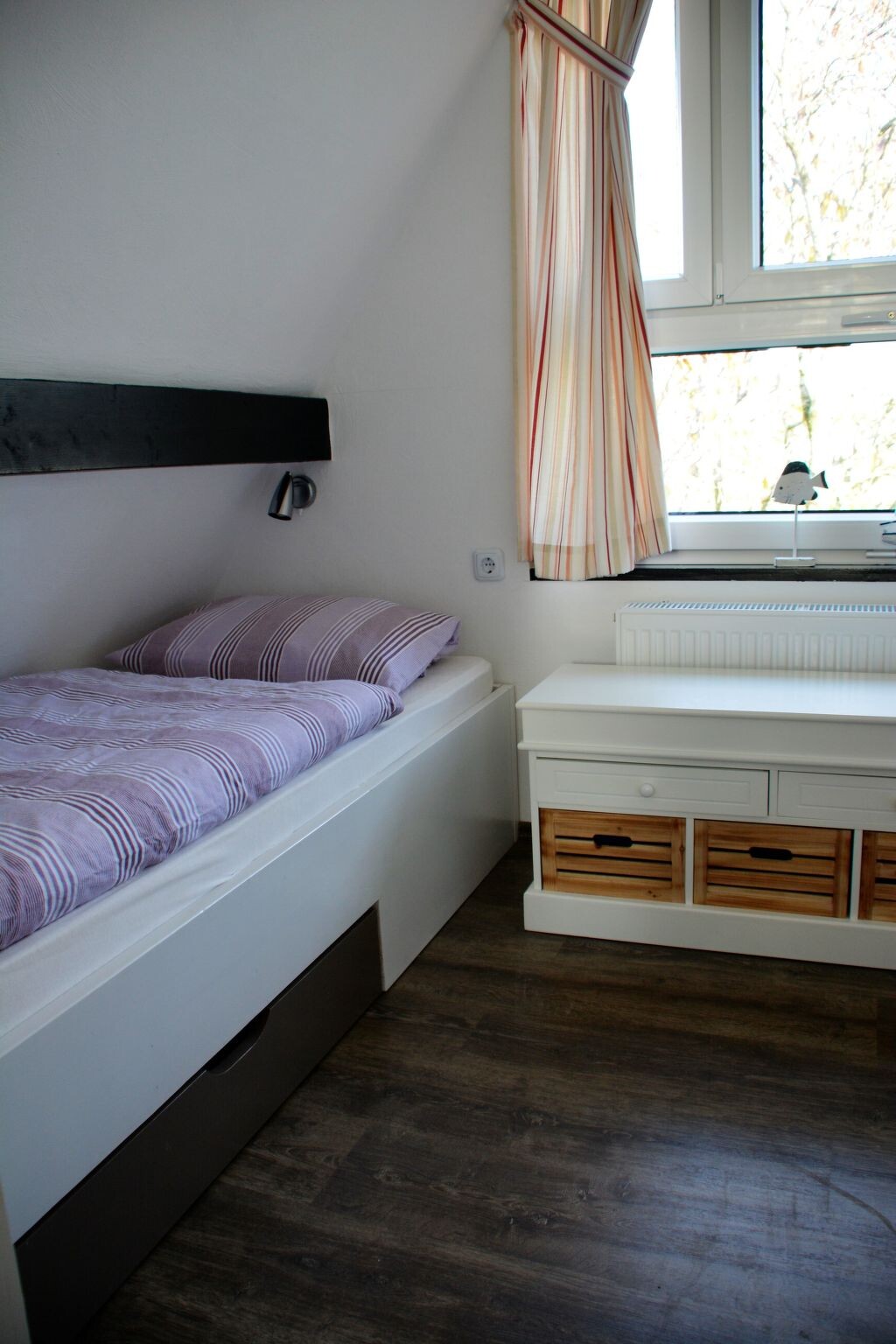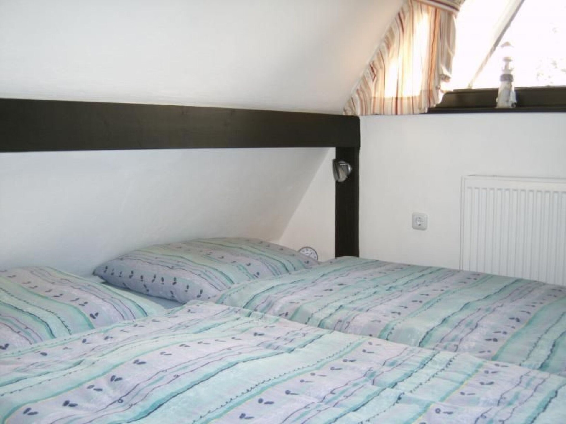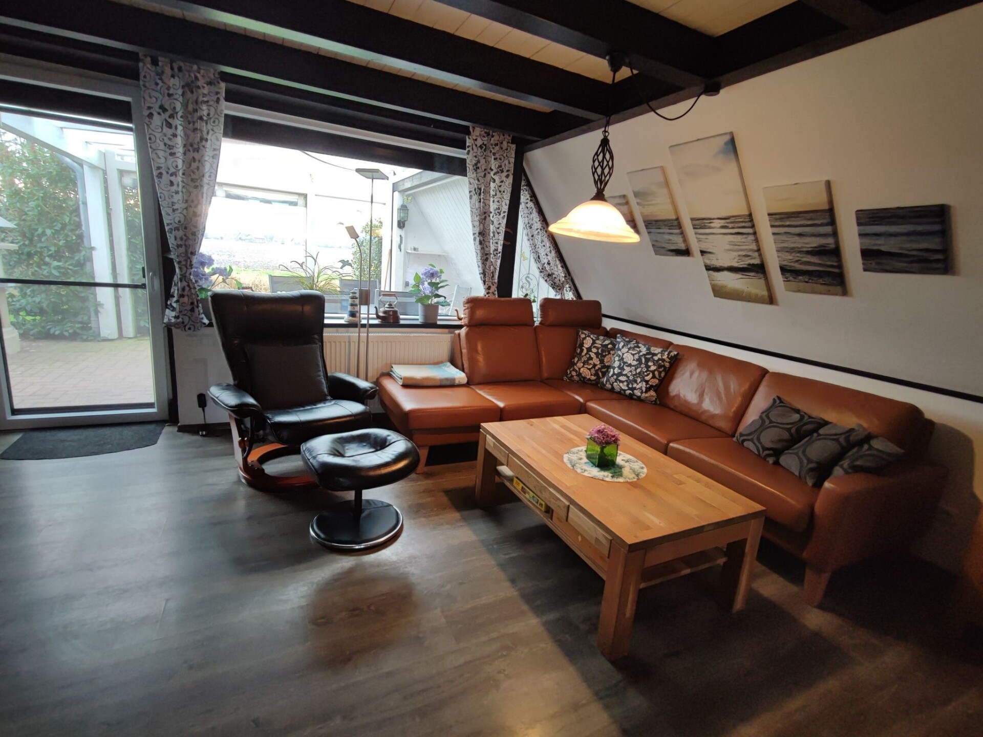 Maximaal 2 huisdieren/honden toegestaan. The cosy roof-only house (non-smoking) for a maximum of 4 people is located at the end of a cul-de-sac in the quiet Achtern Diek holiday home complex, with a wonderful view of the neighbouring meadows.From the living area on the ground floor you have access to the large, partly covered terrace and the adjoining, fully fenced garden.Upstairs there is a double bedroom and a room with two single beds. On the ground floor there is a small shower room and a separate WC and a small, fully equipped kitchen with fridge, microwave and hob with oven. The dormer window installed during the renovation work has created a bright separate dining area in the living area, which offers plenty of space for eating and playing. With a baby travel cot and a high chair, which are provided free of charge by the owner, as well as a toilet seat for children and a hump in the bathroom, the house offers family-friendly facilities.The complex is located directly on the North Sea dyke, so that you can reach the North Sea lagoon, the green beach of Burhave or the play barn in just a few minutes on foot. The centre of Butjadingen-Burhave, which offers numerous restaurants and shopping facilities, is also within easy reach by bike or on foot. The proximity to the North Sea dyke offers a good starting point for long walks or cycle tours along the coast of Butjadingen. Just a few minutes' walk from the holiday home, the dog beach and another designated dog meadow behind the play barn offer the opportunity for your four-legged friends to romp around to their heart's content.Cats are not allowed in the holiday home.