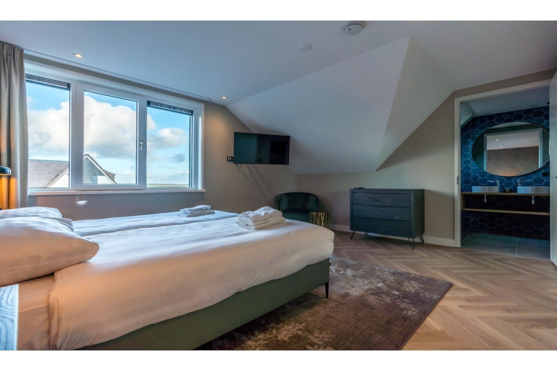 Deze luxe villa ligt in het noorden van het grootste Waddeneiland Texel met zijn brede zandstranden. Vanaf het grote terras heb je uitzicht op het uitgestrekte Krimbos. Ideaal voor gezinnen.