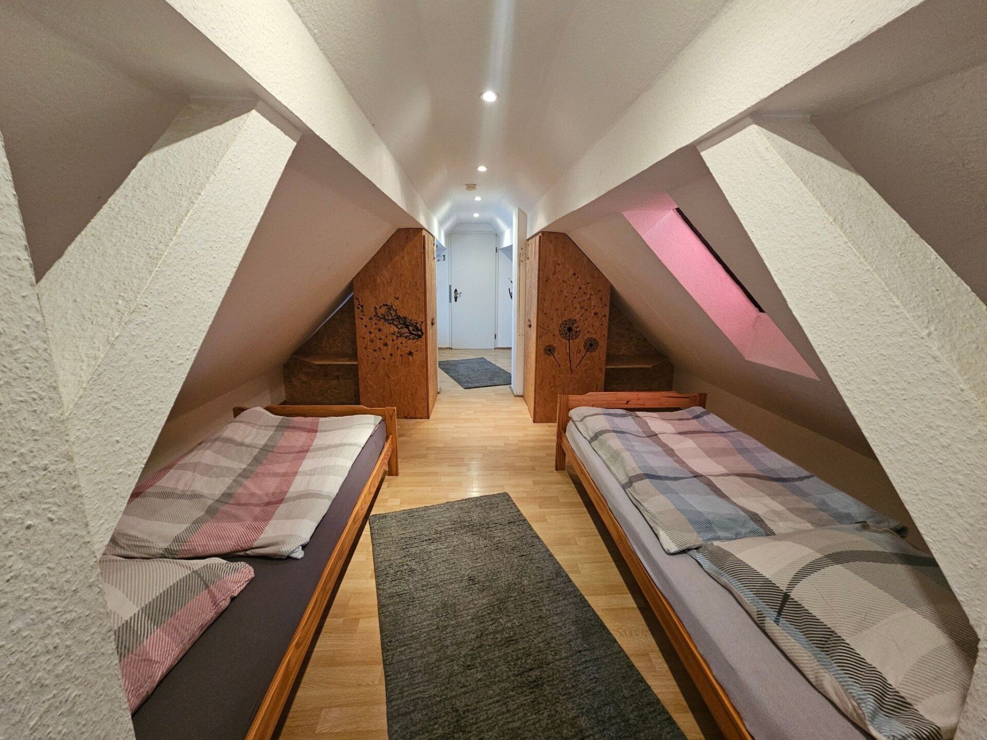 The internal staircase takes you to the maisonette flat on the top floor. No lift available. This is suitable for a maximum of six people and has two bedrooms. One of them is a quadruple room and has a covered, secluded, 10 m² balcony with table and chairs, so that smokers don't miss out either. In the lower part of this flat you will find the eat-in kitchen with a large dining table, fully equipped kitchen with fridge***, cooker with ceramic hob and oven as well as extractor bonnet, sink and dishwasher, coffee machine, kettle, microwave, crockery, the daylight bath with additional shower and WC.In addition to numerous other shops, there is a full-range grocery store, butchers, bakers, several restaurants, petrol stations, garages, banks, doctors and dentists, as well as a pharmacy.Surprise your children with a trip to the parrots in the bird park in Weilrod, the Opel Zoo in Kronberg, the Lochmühle leisure park in Wehrheim or the Hessenpark open-air museum in Neu Anspach.Centrally located between Frankfurt, Bad Homburg and Butzbach, Giessen, Bad Nauheim and Usingen.