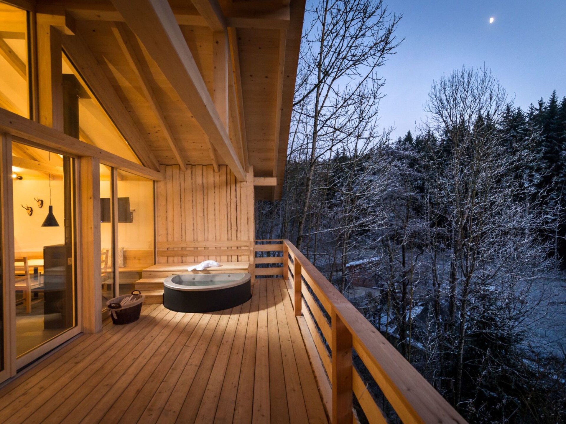Maximaal 2 huisdieren/honden toegestaan. SPACE FOR VALUABLE TIME Simple and clear - on the outside, in the tradition of shelters for people who have called the forest home for centuries and used it to earn a living - regionally localised - wood as the central building element, inside and out - with high value for the present.Whether spring, summer, autumn or winter - the Bavarian Forest and the Forstgut ensure a relaxing time at any time of year. However, if you are looking for a big spectacle, we regret to disappoint you.87 square metres offer space for your time at the FORSTGUT. Designed for 2 people, we offer you space to relax and take a deep breath with your own sauna in the bathroom and an outdoor hot tub on the covered terrace. The architecture, which focuses on valuable visual axes, opens up the space to the nearby estate forest. Nature in view, whether from the sauna, the bedroom or the cosy couch - always close to the estate forest, to the seasons and yet surrounded by a room equipped with a large kitchen, a crackling open fire and cosy reading corners. We invite you to the " Room for VALUABLE TIME - FORSTGUT von Schnurbein"Golfing, hiking, horse riding, cycling, archery, mushroom picking, observing animals, picking flowers, taking photos, relaxing, savouring, taking a deep breath, having fun, barbecuing, picnicking, playing badminton.... Being human. Ski areas in the immediate vicinity: The two ski areas Rusel (with Haussteinlift) and Geißkopf (Geißkopfbahn, Parallellift, Nordhanglift, Riegellift, Forsthauslift and Babylift) are each 10 to 15 minutes away and are operated by the Geißkopfbahn. The main advantage for skiers is the introduction of electronic reading systems, so that in future one lift ticket will be valid for both ski areas. The Geißkopf ski area (1100 m) with 6 lifts and 8 runs of varying difficulty has 4 ski and snowboard schools on site. A fun park completes the offer. The Forsthaus downhill run, Geißkopf men's downhill run and Nordhang downhill run are covered with artificial snow. A floodlight system on the 1150 metre-long main run allows skiing on the Geißkopf on Wednesdays, Thursdays and Fridays until 9.30 pm. Floodlight skiing is also possible on the Rusel on the same days. Golf courses: 10 minutes away is the 18-hole course of the Deggendorf Golf Club on the plateau of the Rusel Pass at an altitude of 840 metres. A driving range and a 3-hole practice course are available. In the season from April to November, you can enjoy the beautiful scenery from the terrace of the clubhouse after your game. The Oberzwieselau golf course is located in a hilly park landscape about 20 kilometres away. The clubhouse with its terrace forms the centre of an 18-hole championship course harmoniously embedded in the landscape. Bavarian Forest National Park: The Bavarian Forest National Park is only 25 kilometres away. It was opened in 1970 as the first national park in Germany and protects a unique forest and low mountain range landscape on the border with the Czech Republic. Expanded in 1997, the national park now covers an area of over 24,000 hectares. Almost the entire area of the national park is covered by extensive forests, which today are uniquely left to develop largely uninfluenced by man. The action of natural environmental forces and the undisturbed dynamics of the biotic communities are guaranteed. In the national park you can experience unspoilt nature in an impressive way. It offers ideal conditions for exploring the natural processes in nature and learning about nature.At the Forstgut you will only experience "home-made" things - the programme is determined by nature and your desire, mood and creativity. Let us inspire you to enjoy a completely normal holiday.