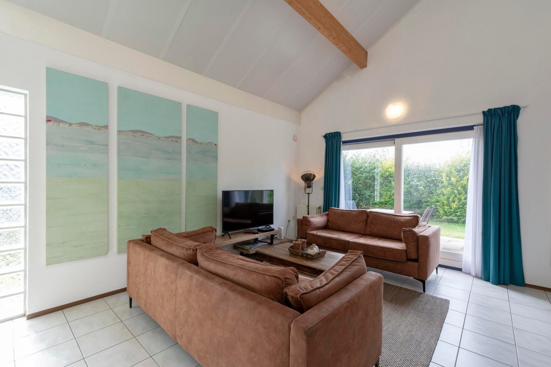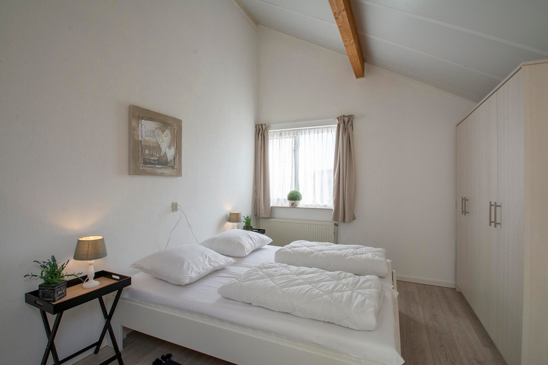 De lichte, ruime woonkamer met schuifpui geeft toegang tot een zonnig terras, ideaal voor zomerse dagen. De volledig uitgeruste open keuken is voorzien van een moderne eethoek, een Senseo-koffiezetapparaat, magnetron, vaatwasser, gasfornuis, broodrooster en koelkast. De woning heeft drie slaapkamers, waarvan één op de begane grond met een tweepersoonsbed en kledingkast, waardoor de woning ook toegankelijk is voor mensen met een lichamelijke beperking.