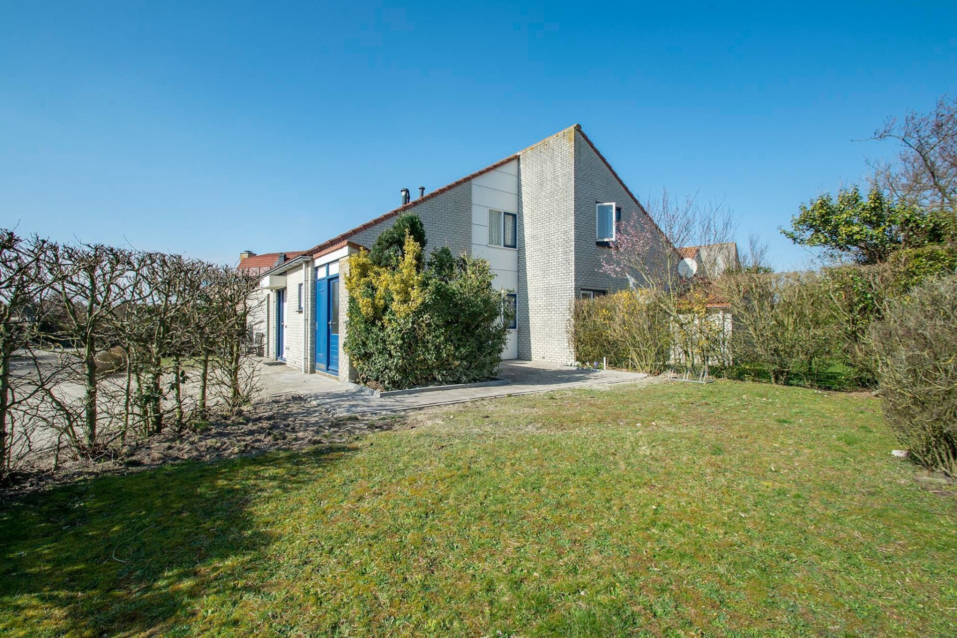 Buiten kunt u genieten van de besloten, omheinde tuin met een gazon, tuinmeubilair, parasol, ligstoelen en een bolderkar voor buitenplezier. Er is parkeergelegenheid voor twee auto's op de eigen oprit. Het vakantiepark is zeer gezinsvriendelijk, met een speeltuin, een traphekje en de nabijheid van het zwembad en het strand. Deze vrijstaande villa, gelegen te midden van pittoreske bollenvelden, biedt een rustig, ontspannend toevluchtsoord met gemakkelijke toegang tot de natuur en activiteiten aan zee. Huisdieren zijn welkom (maximaal twee honden) en het huis biedt alle comfort voor een heerlijke vakantie.