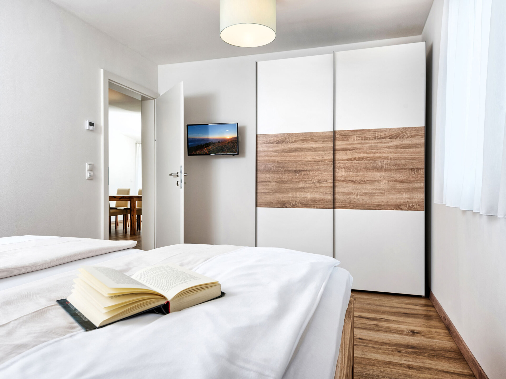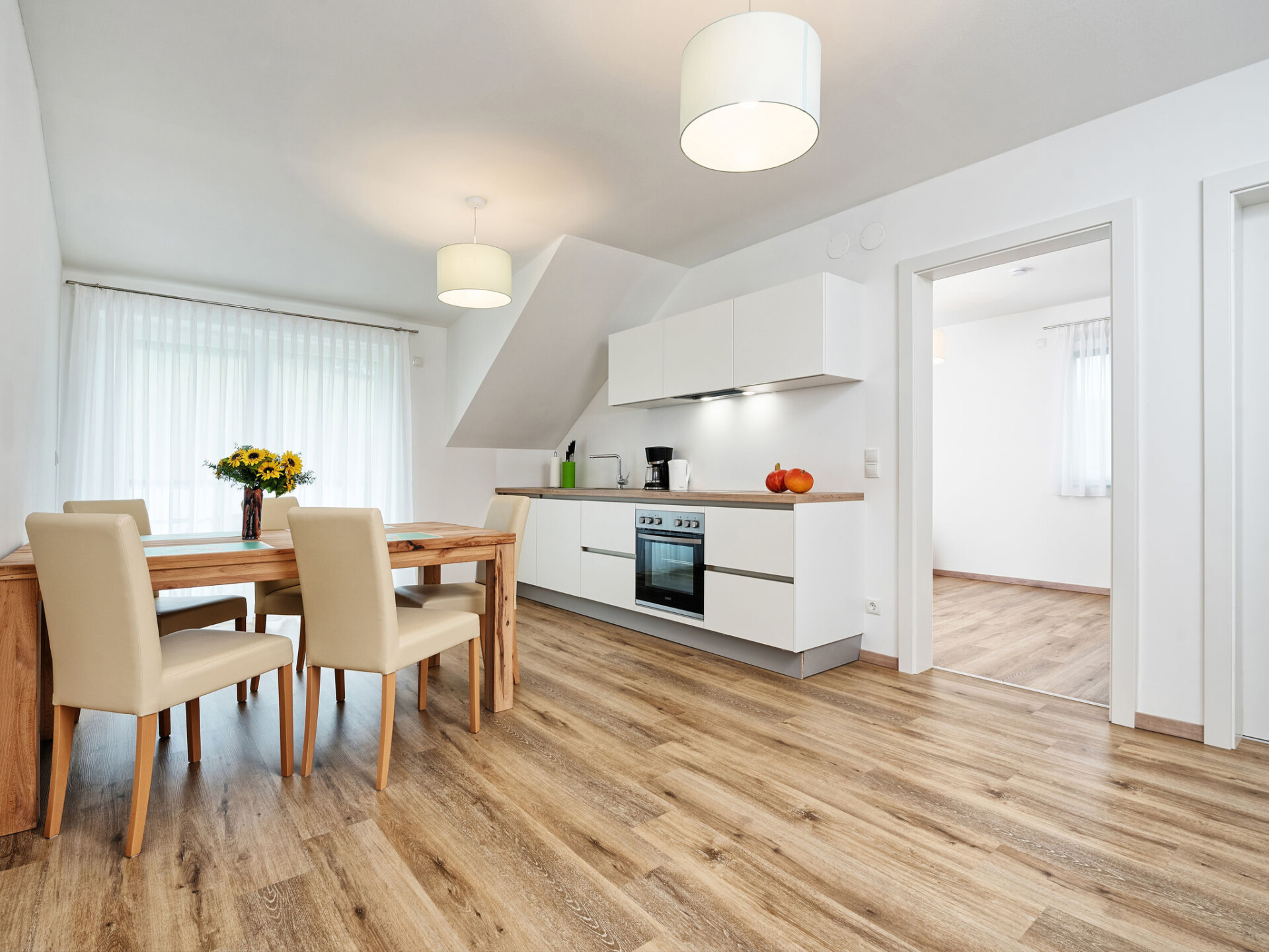 "Deutschbauer", appartement 3-kamers 62 m2, op de bovenste verdieping. Het objekt is geschikt voor 4 volwassenen + 2 kinderen. Licht, modern ingericht: woon-/slaapkamer met afgeschuinde daken met 1 2-pers divanbed (1 x 140 cm, lengte 200 cm), eettafel en Sat-TV. Uitgang naar het balkon. 2 2-pers. kamers met afgeschuinde daken. Open keuken (oven, afwasmachine, 4 keramische glas kookplaten, broodrooster, waterkoker, elektrische koffiemachine). Douche/WC. Air-conditioning, vloerverwarming. Balkon 3 m2. Balkonmeubilair. Ter beschikking: kinderstoel, kinderbed. Internet (Internet (WiFi), gratis). Parkeerplaats (1 Auto) bij het huis. Rookmelders.