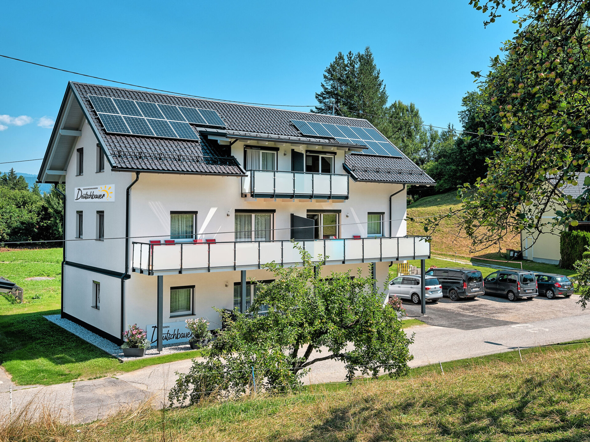 Flatgebouw "Deutschbauer", bouwjaar 2018. 5 appartementen in de woning. 700 m van het centrum van Egg am Faaker See, 2 km van het centrum van Drobollach am Faaker See, 8 km van het centrum van Villach, 1 km van het meer. In het huis: centrale verwarming, wasmachine (voor medegebruik). Parkeerplaats op het terrein. Oplaadstation. Winkel 700 m, supermarkt 2 km, bushalte "St.Niklas/Drau Kreisverkehr" 1 km. Golfterrein (18 holes) 6 km.