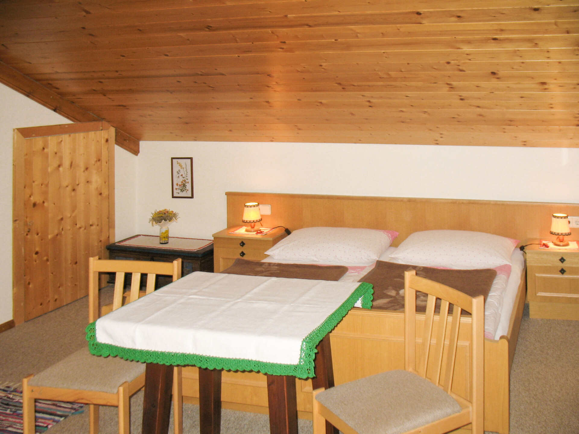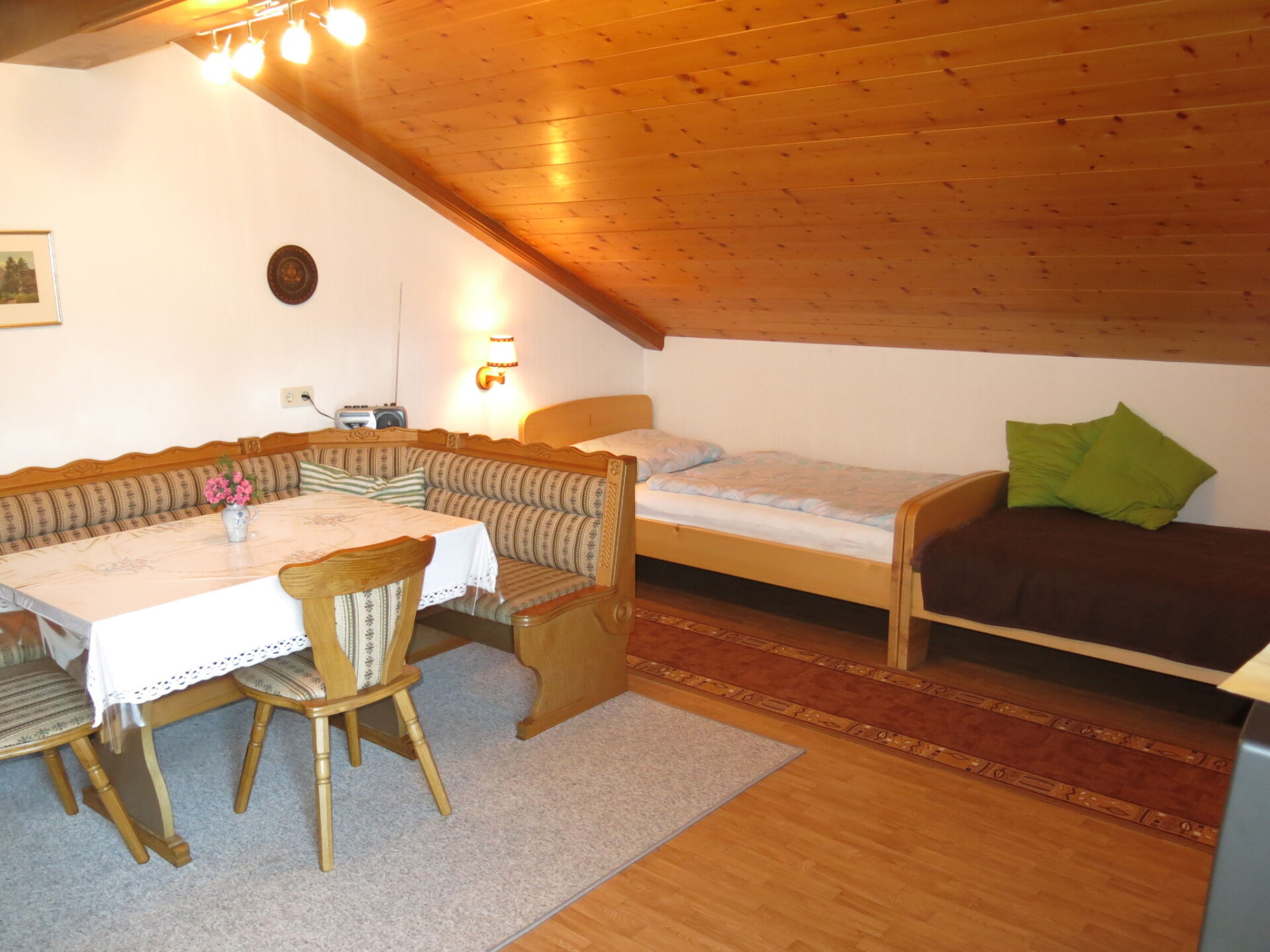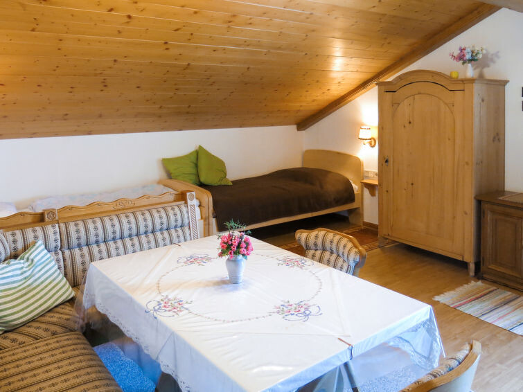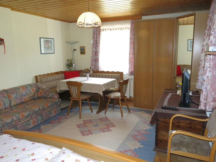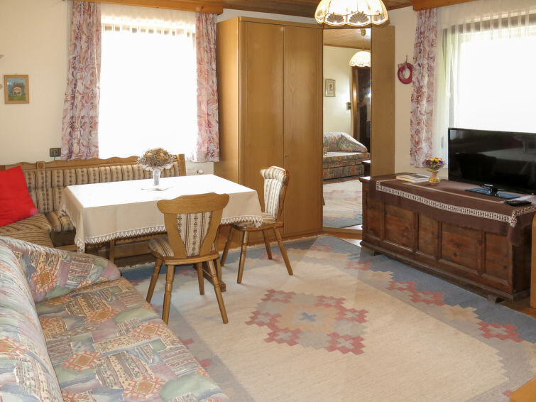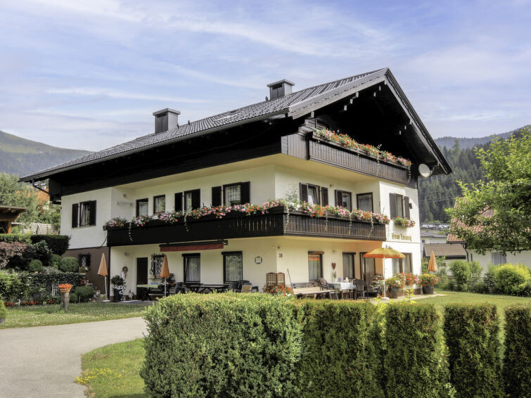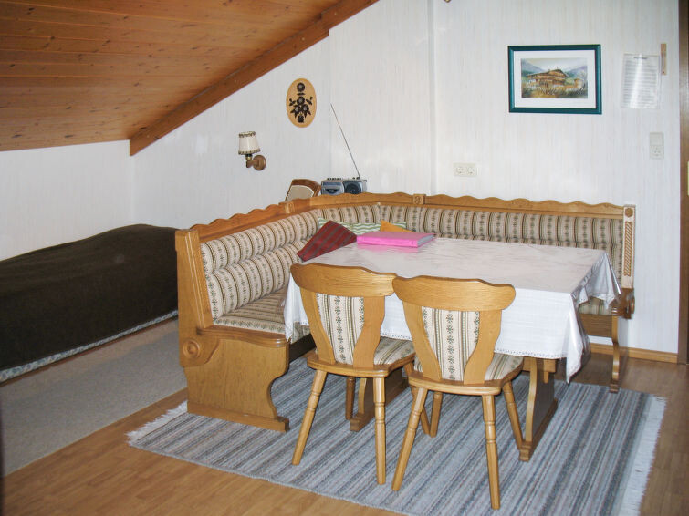 "Lassnig", appartement 2-kamers 60 m2 op de 2e verdieping. Eenvoudig en gezellig ingericht: woon-/slaapkamer met afgeschuinde daken met 2 divanbedden, eettafel, Sat-TV en radio. Uitgang naar het balkon. 1 2-pers. kamer met afgeschuinde daken. Uitgang naar het balkon. Open keuken (4-pits kookplaat, oven, afwasmachine, broodrooster, waterkoker, magnetron, elektrische koffiemachine). Douche/WC. Verwarming. Balkon, op het zuiden gelegen. Mooi uitzicht. Ter beschikking: Internet (Internet (WiFi), gratis).