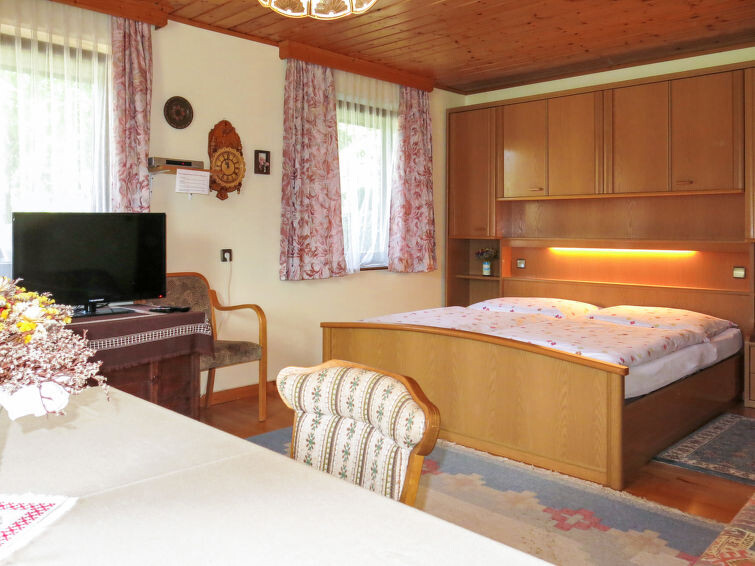 "Lassnig", appartement 3-kamers 60 m2, op de begane grond. Eenvoudig en gezellig ingericht: 1 2-pers. kamer met Sat-TV. 1 kamer met 1 x 2 stapelbedden. Woonkeuken (4-pits kookplaat, oven, afwasmachine, broodrooster, waterkoker, magnetron, elektrische koffiemachine) met eethoek en radio. Douche/WC. Verwarming. Terras. Terrasmeubelen. Ter beschikking: kinderstoel, kinderbed. Internet (Internet (WiFi), gratis).
