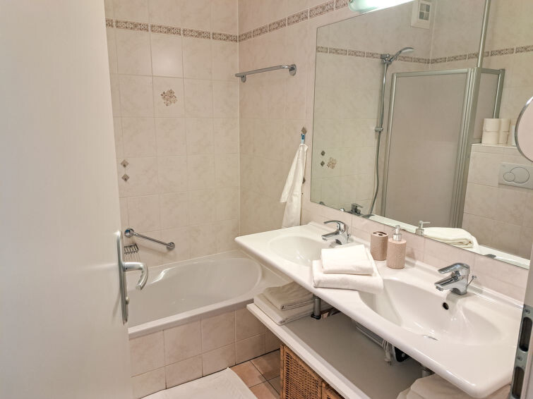 "Vinzek", appartement 3-kamers 60 m2. Licht, zeer mooi ingericht: woon-/eetkamer met bad/WC, Sat-TV en elektrische verwarming. Uitgang naar het terras. 2 2-pers. kamers. Open keuken (afwasmachine, 4 keramische glas kookplaten, broodrooster, waterkoker, magnetron, elektrische koffiemachine). Parketvloeren. Terras, op het zuiden gelegen. Terrasmeubelen, elektrische barbecue. Zeer mooi panoramazicht op het meer. Ter beschikking: wasmachine. Internet (Internet (WiFi)). Parkeerplaats (1 Auto) bij het huis. Niet rokers woning. Rookmelders.