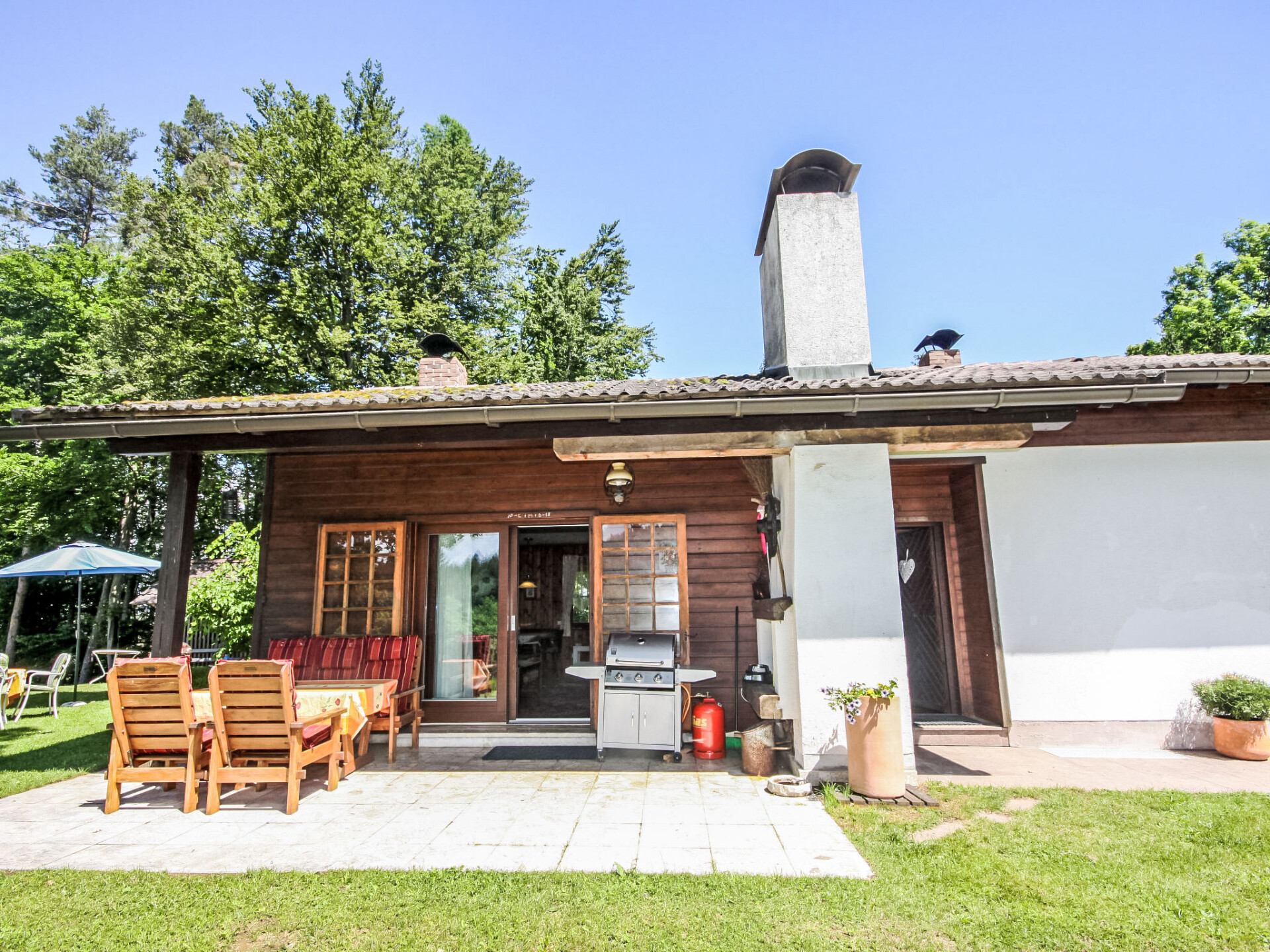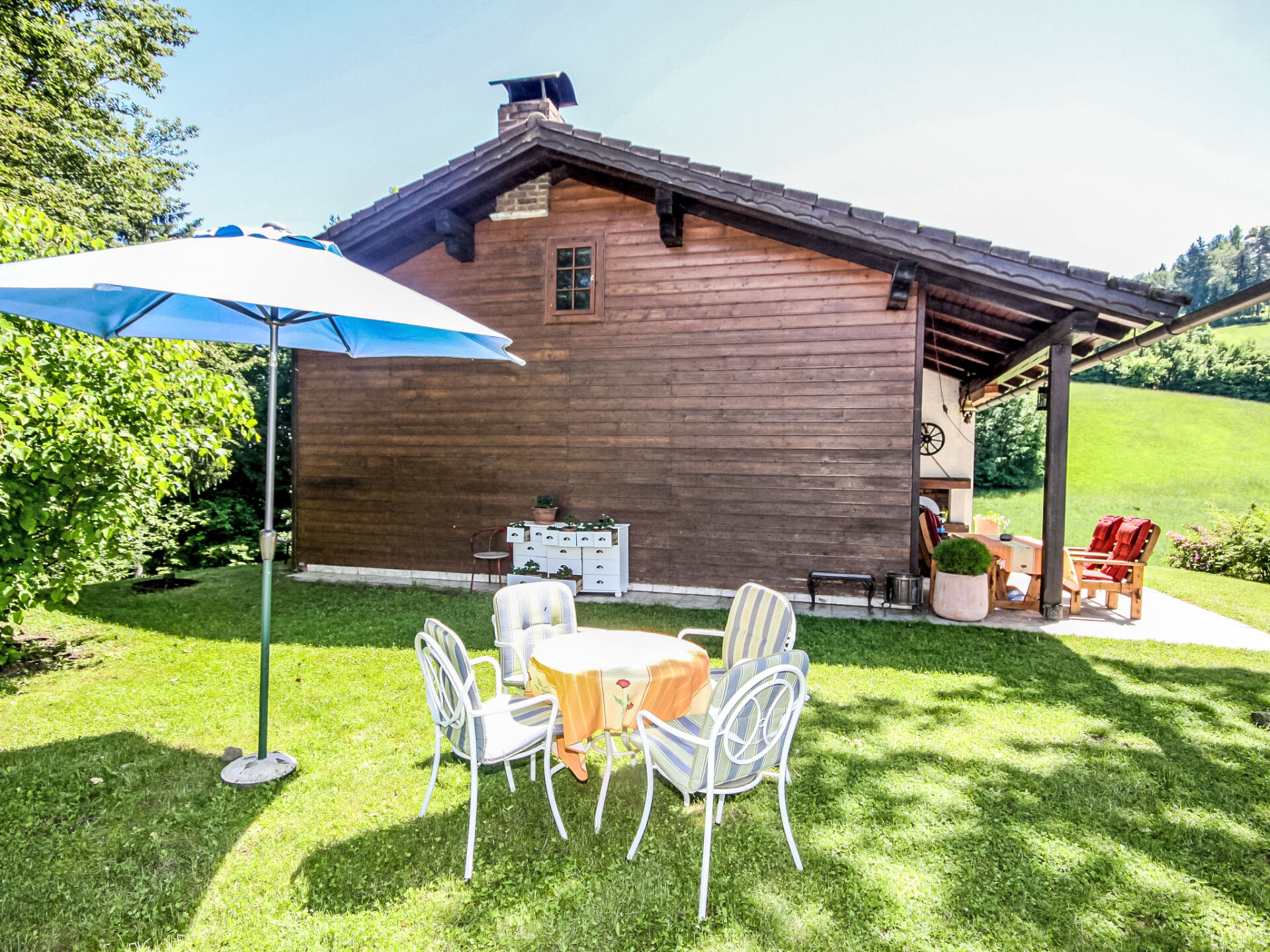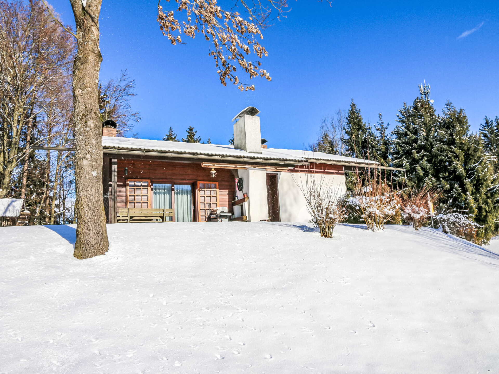Bungalow 3-kamers 90 m2. Het objekt is geschikt voor 4 volwassenen + 1 kinderen. Romantisch en met veel hout ingericht: hal. Groot woon-/eetkamer met 1 uitschuifbaar bed (1 pers.), eethoek en Sat-TV (Flatscreen TV), stereo-installatie, DVD en tegelkachel. Uitgang naar het terras. 2 2-pers. kamers. Uitgang naar het balkon. Open keuken (oven, afwasmachine, 4 keramische glas kookplaten, magnetron, grill, elektrische koffiemachine, pads voor de koffiemachine (Cafissimo) extra). Douche, aparte WC. Elektrische verwarming, boiler (100 liter). Balkon 16 m2, terras 22 m2, zithoek in de tuin. Terrasmeubelen, ligstoelen, bergruimte. Uitzicht op de bergen en het dal. Ter beschikking: strijkijzer, kinderstoel, kinderbed tot 2 jaar. Internet (WiFi, gratis). Niet rokers woning. Maximaal 2 huisdieren/honden toegestaan. Rookmelders, brandblusser.