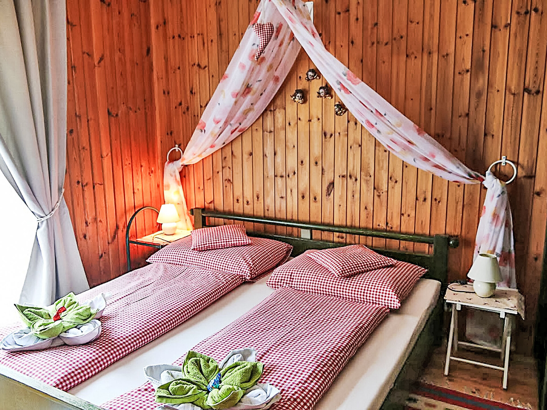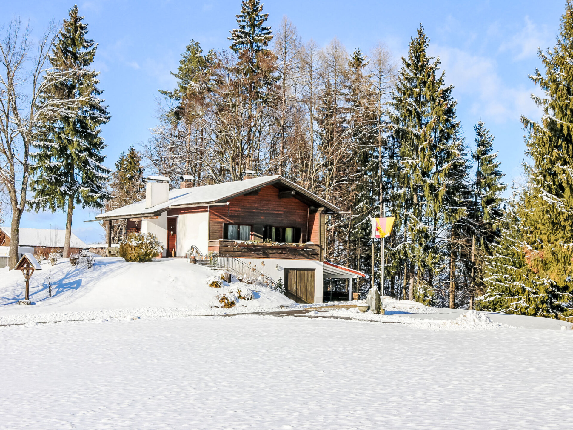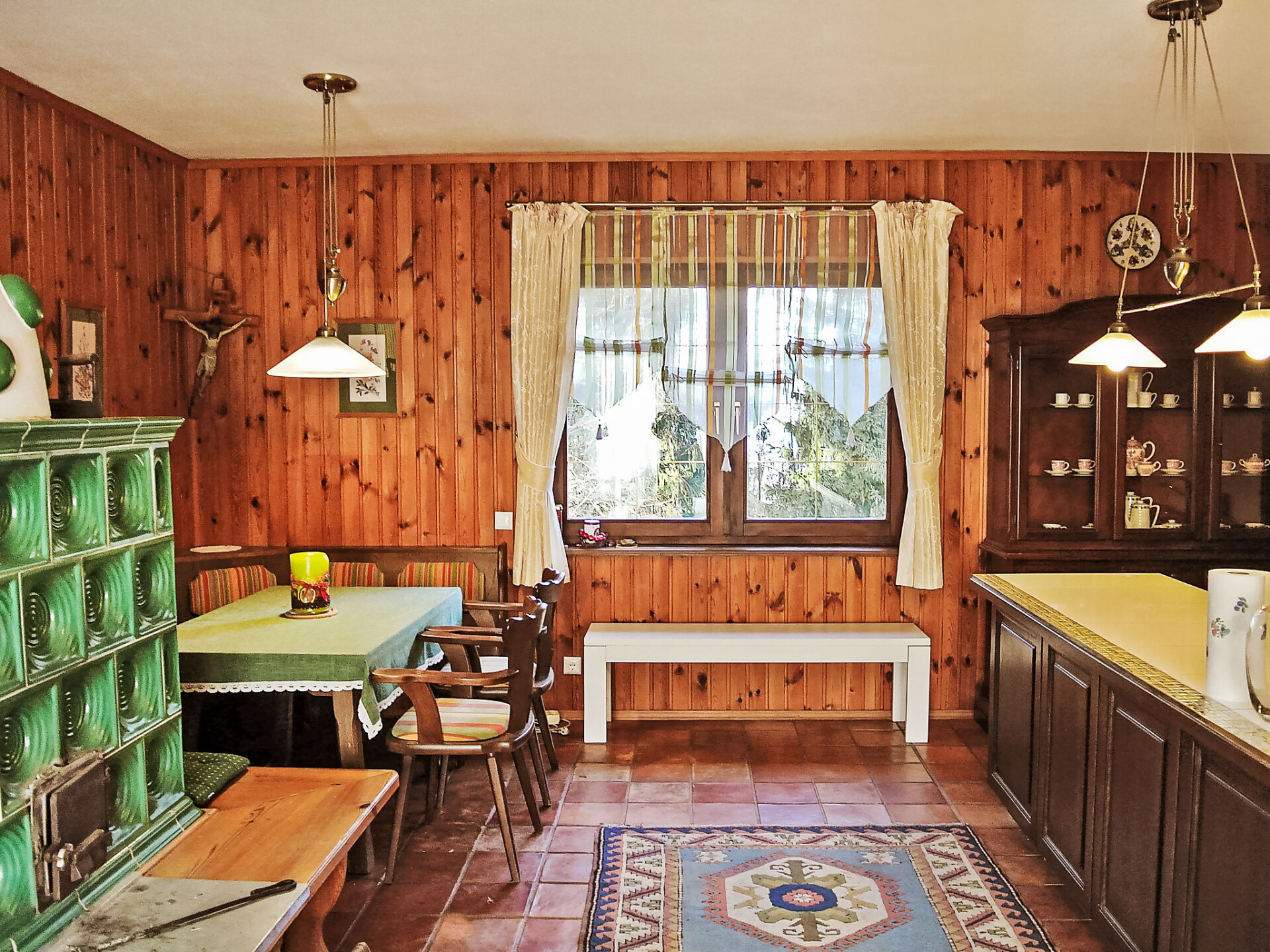 Bungalow 3-kamers 90 m2. Het objekt is geschikt voor 4 volwassenen + 1 kinderen. Romantisch en met veel hout ingericht: hal. Groot woon-/eetkamer met 1 uitschuifbaar bed (1 pers.), eethoek en Sat-TV (Flatscreen TV), stereo-installatie, DVD en tegelkachel. Uitgang naar het terras. 2 2-pers. kamers. Uitgang naar het balkon. Open keuken (oven, afwasmachine, 4 keramische glas kookplaten, magnetron, grill, elektrische koffiemachine, pads voor de koffiemachine (Cafissimo) extra). Douche, aparte WC. Elektrische verwarming, boiler (100 liter). Balkon 16 m2, terras 22 m2, zithoek in de tuin. Terrasmeubelen, ligstoelen, bergruimte. Uitzicht op de bergen en het dal. Ter beschikking: strijkijzer, kinderstoel, kinderbed tot 2 jaar. Internet (WiFi, gratis). Niet rokers woning. Maximaal 2 huisdieren/honden toegestaan. Rookmelders, brandblusser.