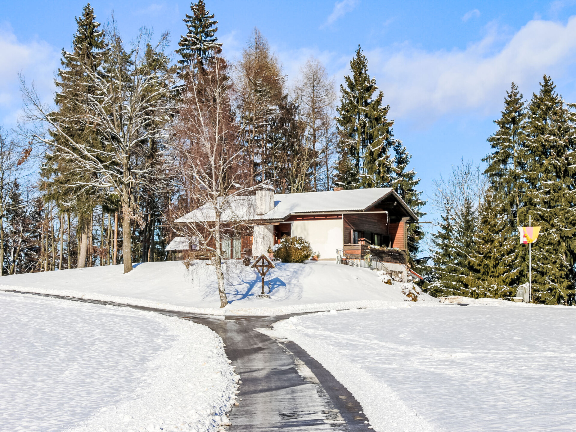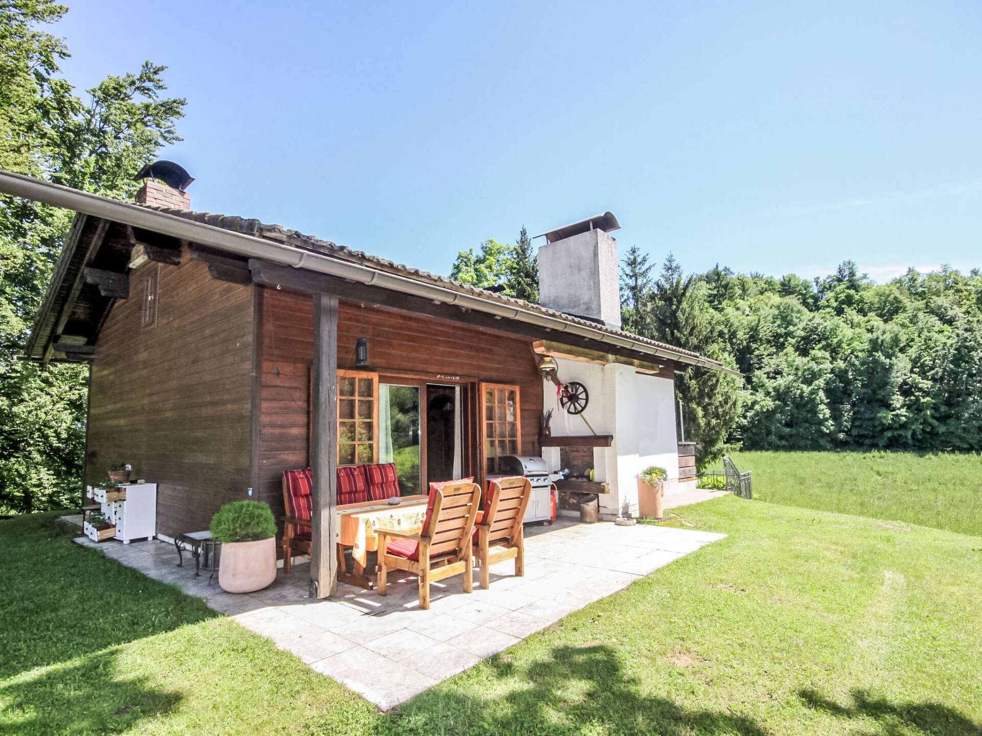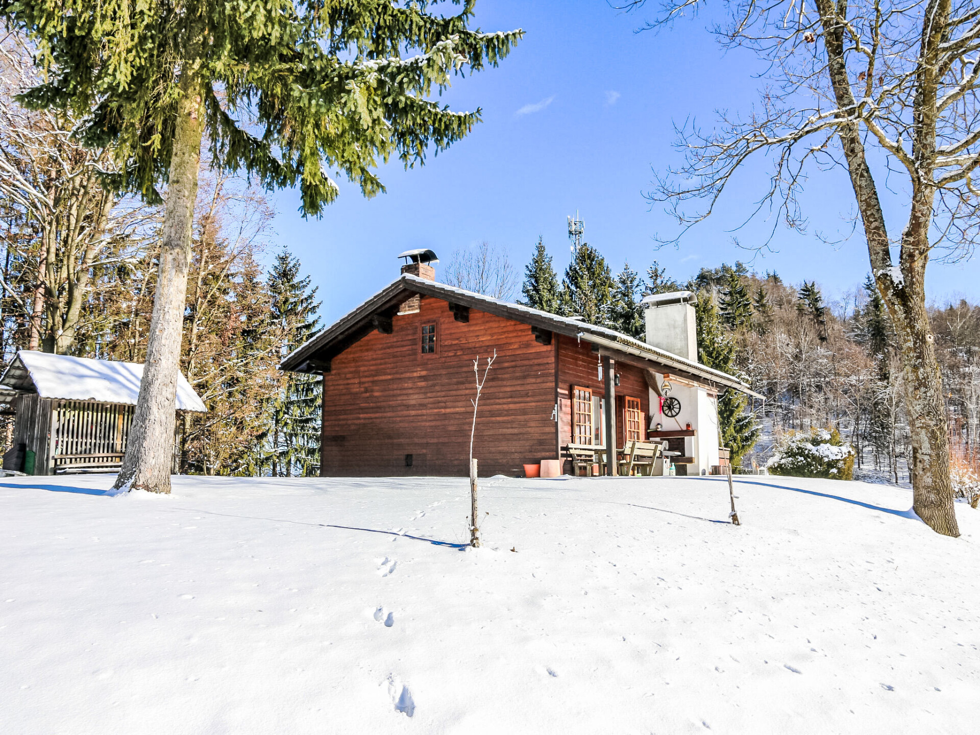 Ebenthal 13 km van Klagenfurt: Kleine, gezellige bungalow "Rustika", 640 m boven zeeniveau. Buiten de plaats, rustige, zonnige ligging, aan een doodlopende weg, te midden van groen. Voor alleengebruik: wild terrein 2.100 m2, ligweide. Patio, barbecue. In het huis: Internet (WiFi), wasmachine. Toegangsweg (bergweg). Parkeerplaats bij het huis, eigen garage. Carport. Levensmiddelenwinkel 4 km, restaurant 8 km, biertuin 300 m, bushalte "Obermieger Ort" 1 km, meer (zwemmen) "Wörthersee" 18 km. Tennis 8 km, manege 12 km, ski faciliteiten 40 km, ijsbaan 15 km. Attracties in de buurt: Kirche St. Bartlmä 2.5 km, Minimundus 18 km, Wildensteiner Wasserfall 19 km, Rosenthaler Nostalgiebahn 26 km. Bekende meren kunnen gemakkelijk worden bereikt: Klopeinersee 20 km. Wandelgebied Karnische Alpen. Auto noodzakelijk. Het objekt is geschikt voor 4 volwassenen + 1 kinderen.