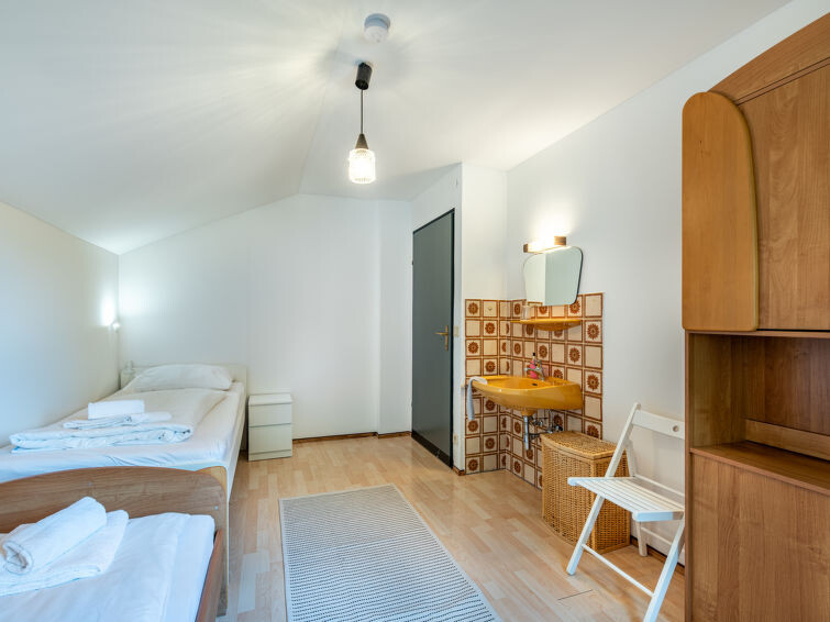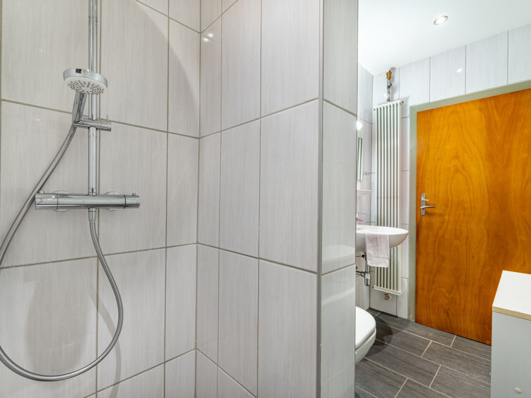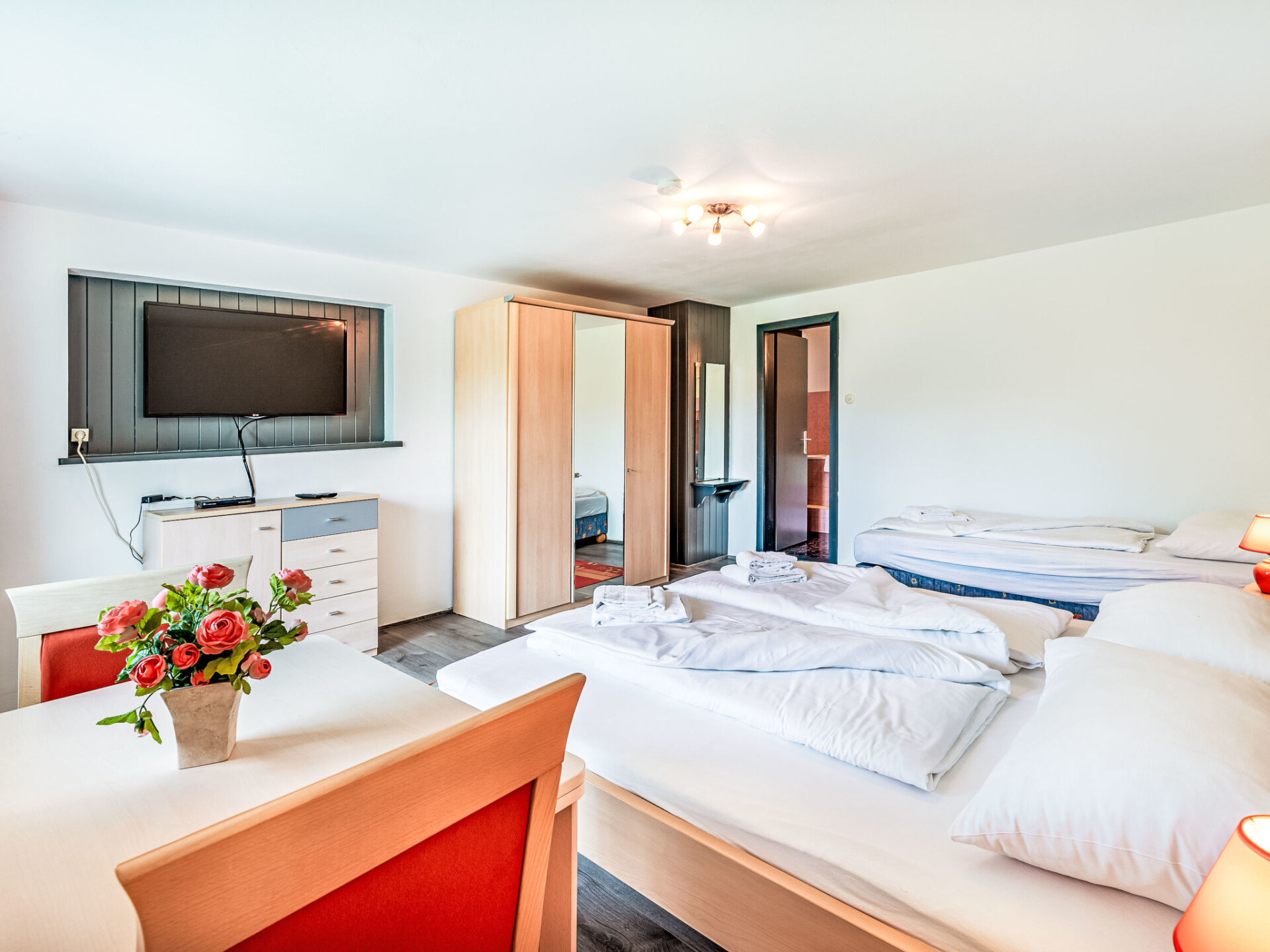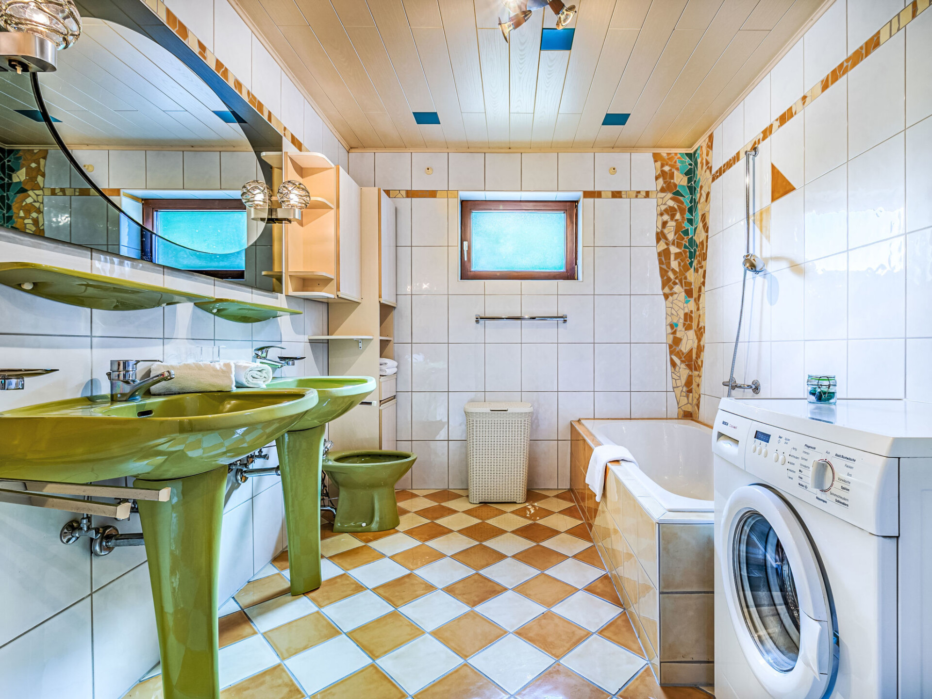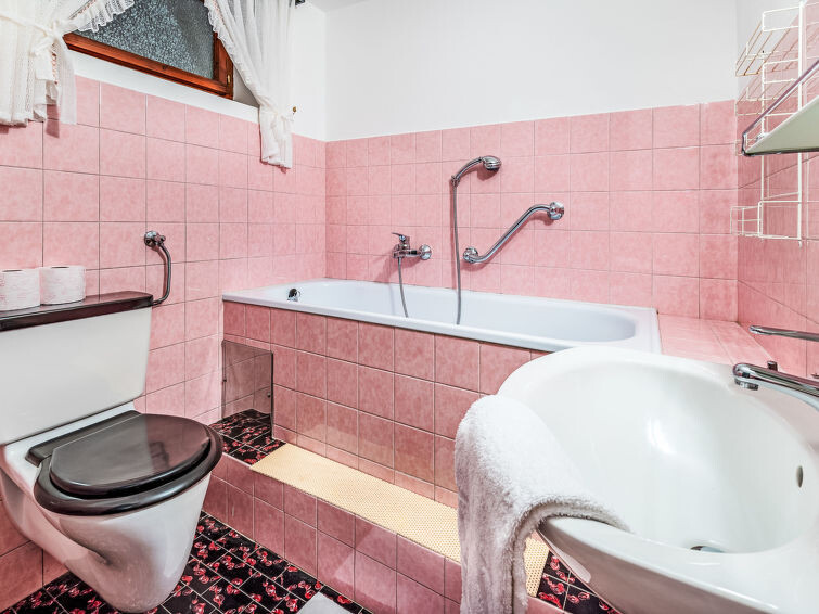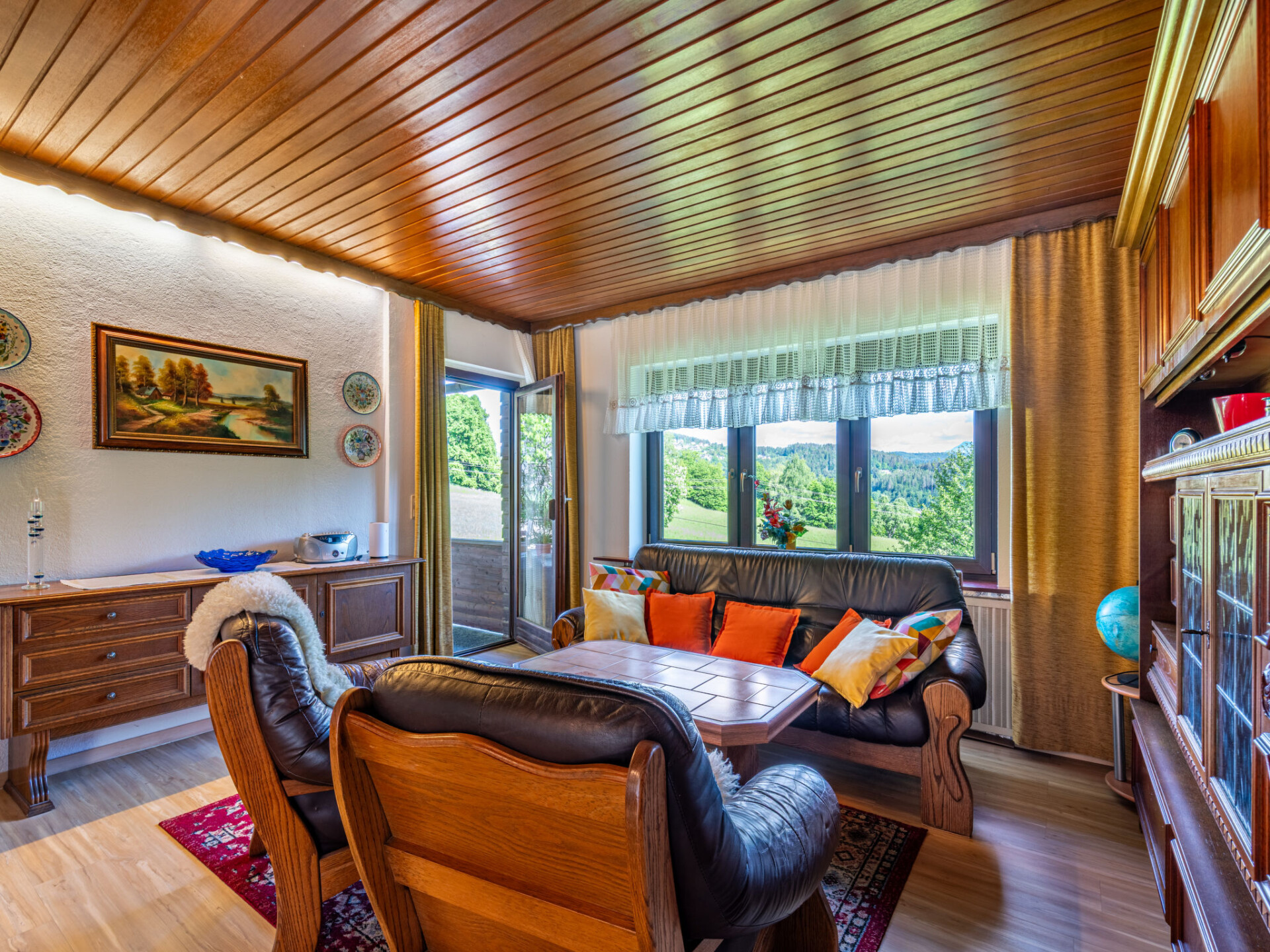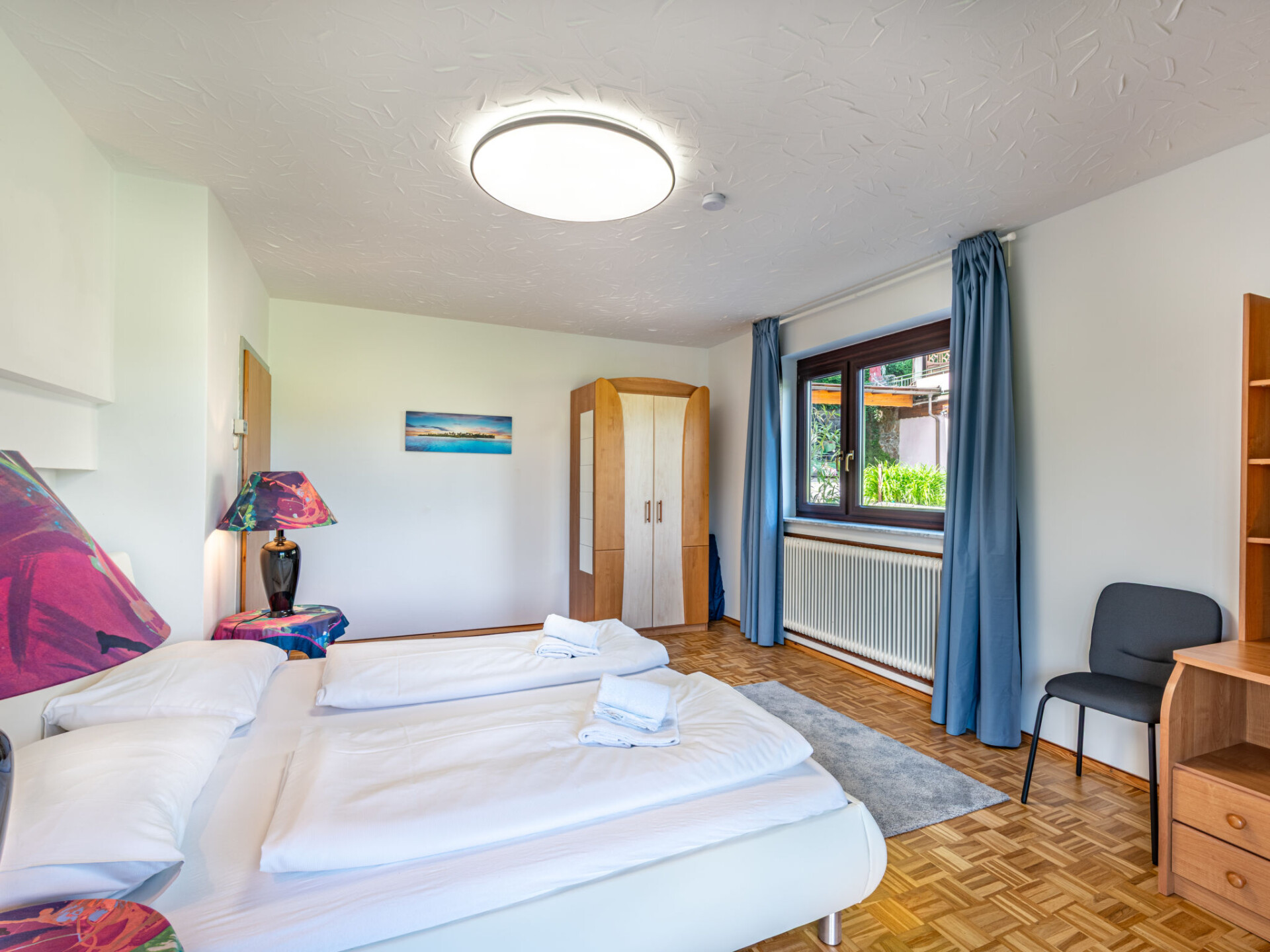 "Zeitlos", huis 5-kamers 112 m2 op 2 verdiepingen. Het objekt is geschikt voor 8 volwassenen + 1 kinderen. Doelmatig en gezellig ingericht: hal. 1 groot 2-pers. kamer 16 m2 met gordijn met douche/WC. Uitgang naar het balkon. 1 groot 2-pers. kamer met gordijn met douche/WC. 1 kamer met afgeschuinde daken met gordijn met 2 bedden (90 cm, lengte 200 cm), wastafel en radio. Groot woon-/eetkamer met veranda met Sat-TV, Flatscreen TV, radio en CD-speler. Uitgang naar het balkon, naar het terras. Kleine, open keuken 7 m2 (oven, afwasmachine, 4 keramische glas kookplaten, waterkoker, magnetron, diepvriezer, elektrische koffiemachine) met kleine eettafel, doorgeefluik. Badkamer, bidet, aparte WC, dubbele wastafels. Olie-verwarming. Souterrain: (buitentrap), 1 kamer met 1 divanbed (200 cm, lengte 90 cm), 1 2-pers bed, bad/WC, wastafel, Sat-TV en Flatscreen TV. Uitgang naar het terras. Mooi panoramazicht. Ter beschikking: wasmachine, kinderstoel, kinderbed. Internet (WiFi, gratis). Rookvrij huis. Maximaal 1 huisdier/hond toegestaan.