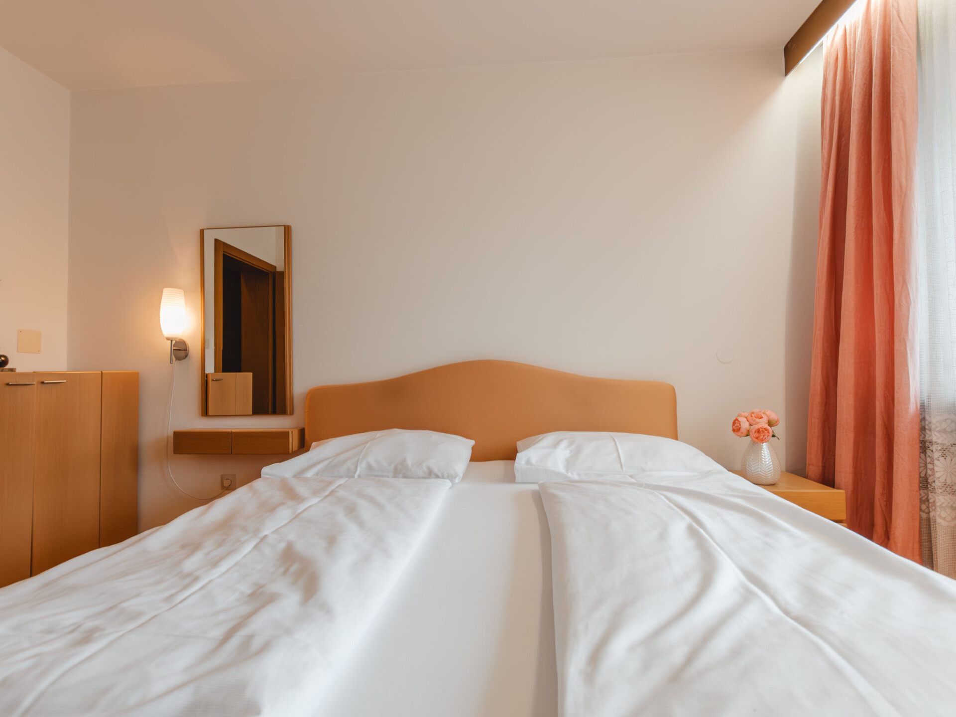 "Bella Vista", appartement 2-kamers 50 m2 op de 2e verdieping, op het zuiden gelegen. Gedeeltelijk gerenoveerd in 2019, eenvoudig en gezellig ingericht: 1 2-pers. kamer. Uitgang naar het balkon. Woon-/slaapkamer met 1 2-pers divanbed, eettafel en Sat-TV. Uitgang naar het balkon. Keuken in de hal (4-pits kookplaat, oven, broodrooster, waterkoker, diepvriezer, elektrische koffiemachine). Bad/WC. Balkon 9 m2, op het zuiden gelegen. Mooi uitzicht op de bergen en de tuin. 1 huisdier/hond toegestaan. 50402-000676-2020