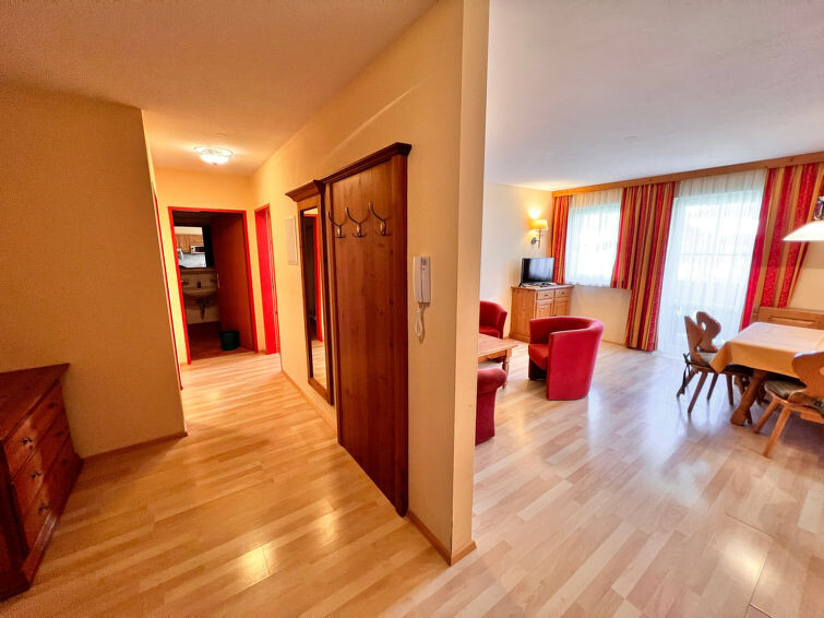 Altenmarkt: Op een toplocatie, in het hart van het sportgebied Amade met meer dan 850 km skipistes, bevindt zich dit fraai comfortabel flatgebouw "Hofresidenz". In de plaats, 1 km van het centrum van Altenmarkt, rustige, zonnige ligging, 3 km van het meer, 3 km van het skigebied. Voor medegebruik: terrein, weide, ligweide. Kinderspeelplaats. In het huis: receptie, restaurant, ontbijtruimte, sauna, fitnessruimte, bergruimte voor fietsen, zonneterras, berging voor ski's, centrale verwarming. Broodjesservice, ontbijt en half pension op aanvraag (extra). Parkeerplaats bij het huis. Levensmiddelenwinkel 100 m, restaurant 10 m, bushalte 100 m, treinstation "Altenmarkt" 2 km, thermaalbad "Therme Amadé" 150 m, meer (zwemmen) "Eben" 3 km. Golfterrein (18 holes) 5 km, tennis, manege 500 m, sportcentrum 1 km, kabelbaan 2 km, skilift 2 km, skibushalte 20 m, skischool 2 km, langlaufloipe 50 m, ijsbaan 500 m. Bekende skigebieden kunnen gemakkelijk worden bereikt: Flachau-Wagrain-St.Johann 5 km, Altenmarkt-Radstadt 3 km, Zauchensee-Flachauwinkel-Kleinarl 10 km. Gratis skibus. Gratis skibus naar het skigebied Flachau-Wagrain-St.Johann en Zauchensee-Flachauwinkel-Kleinarl. De afgebeelde foto is slechts een voorbeeld. Vergelijkbare accommodaties kunnen worden geboekt. In het huis bevindt zich een gezellig restaurant met open keuken en een heerlijk zonneterras met uitzicht op het mooie berglandschap. 1e Klas fitnessruimte met meer dan 40 "Technogym" toestellen en mooi saunacomplex met Finse sauna, stoombad en eigen rustruimte, nodigen uit tot ontspanning. De fitnessruimte is van 7-19 uur geopend voor kinderen vanaf 14 jaar.