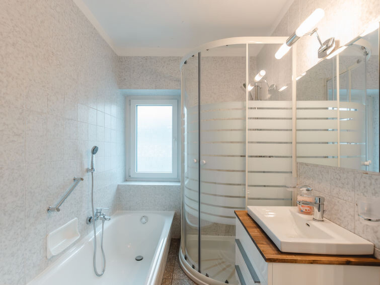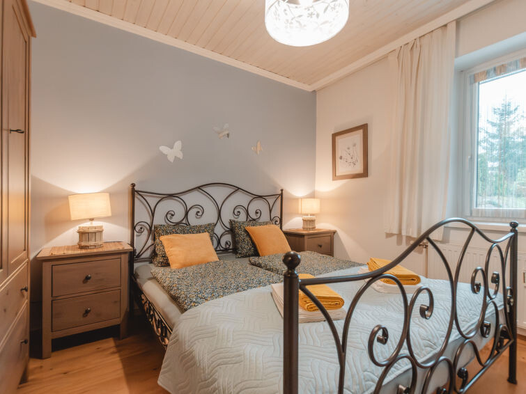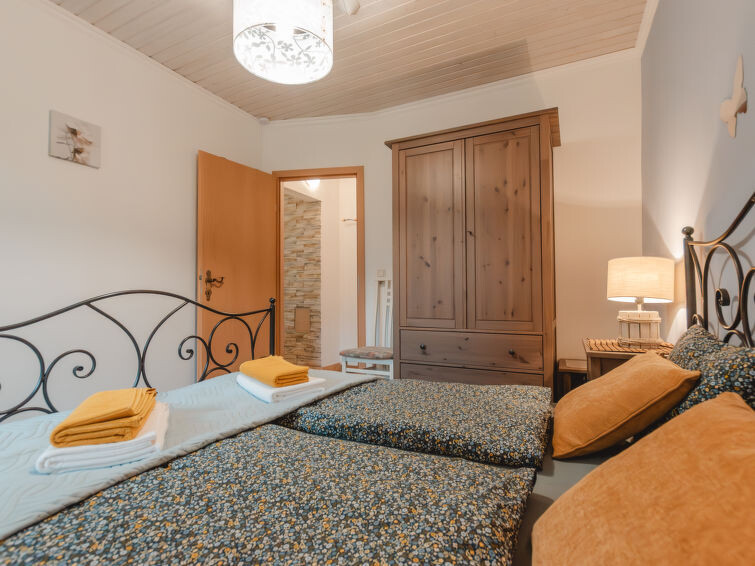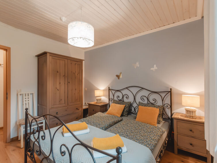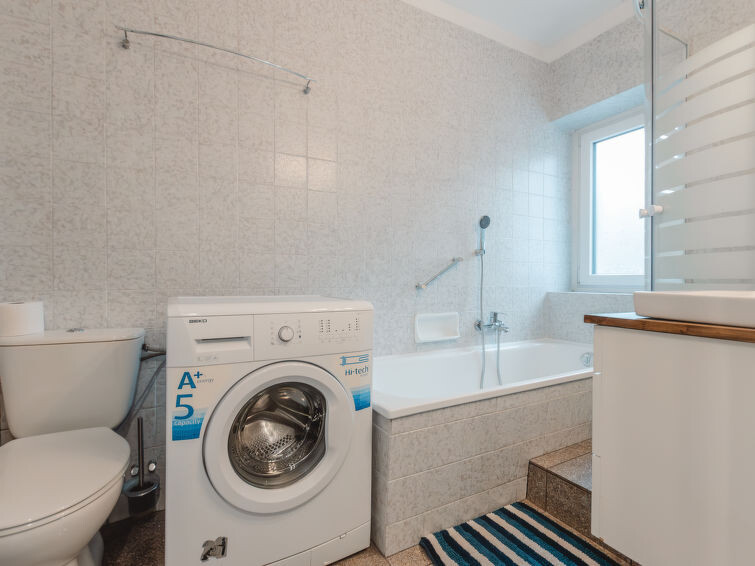 "Terrace Garden Retreat", appartement 3-kamers 67 m2, op de begane grond. Ruim en licht, volledig gerenoveerd in 2013, modern en gezellig ingericht: hal. Woon-/eetkamer met 1 2-pers divanbed (1 x 150 cm, lengte 200 cm), eettafel en Sat-TV (Flatscreen TV). Uitgang naar de tuin, naar het terras. 1 2-pers. kamer met 1 2-pers bed (160 cm, lengte 200 cm). 1 kamer met 2 bedden. Open keuken (oven, afwasmachine, 4 keramische glas kookplaten, broodrooster, waterkoker, magnetron, elektrische koffiemachine) met kleine bar. Bad/douche/WC. Parketvloeren. Terras 15 m2, gazon 20 m2. Terrasmeubelen. Mooi uitzicht op de bergen en het landschap. Ter beschikking: wasmachine. Internet (WiFi, gratis). Geschikt voor families. Niet rokers woning, rookvrij huis. 1 huisdier/hond toegestaan. Rookmelders. Let op: Kleine kinderen en baby's worden beschouwd als een volledig persoon en kunnen niet gratis worden genomen. 50403-000215-2020