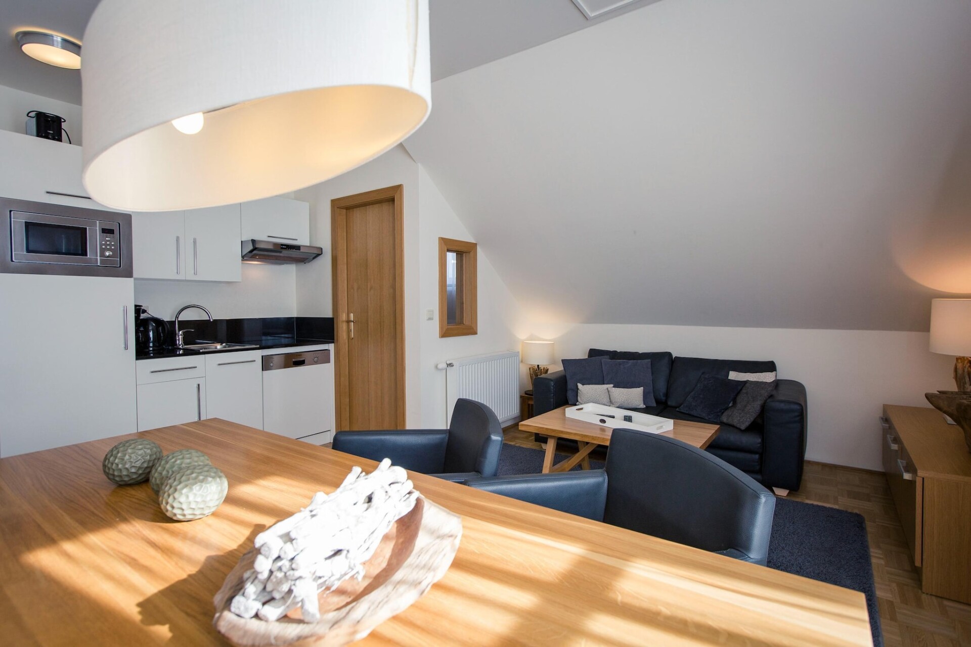 Het Edelweiss Apartment beschikt over 1 tot 2 slaapkamers, waar u kunt kiezen tussen een comfortabel tweepersoonsbed of stapelbedden, geschikt voor gezinnen of groepen. De moderne badkamer is uitgerust met een douche of bad, en voldoet aan uw ontspanningsvoorkeuren. De open keuken is een culinair genot, volledig uitgerust met alles wat u nodig hebt voor een zorgeloos verblijf. Het omvat een keramische kookplaat, magnetron, vaatwasser, koelkast met vriesvak, evenals essentiële apparaten zoals een broodrooster, waterkoker en koffiezetapparaat. Een startset met vaatwastabletten, afwasmiddel, spons, vuilniszakken, schoonmaakmiddelen en theedoeken wordt bij aankomst verstrekt om een soepele start van uw verblijf te garanderen. Blijf verbonden met gratis wifi en ontspan met satelliet-tv na een dag verkennen.