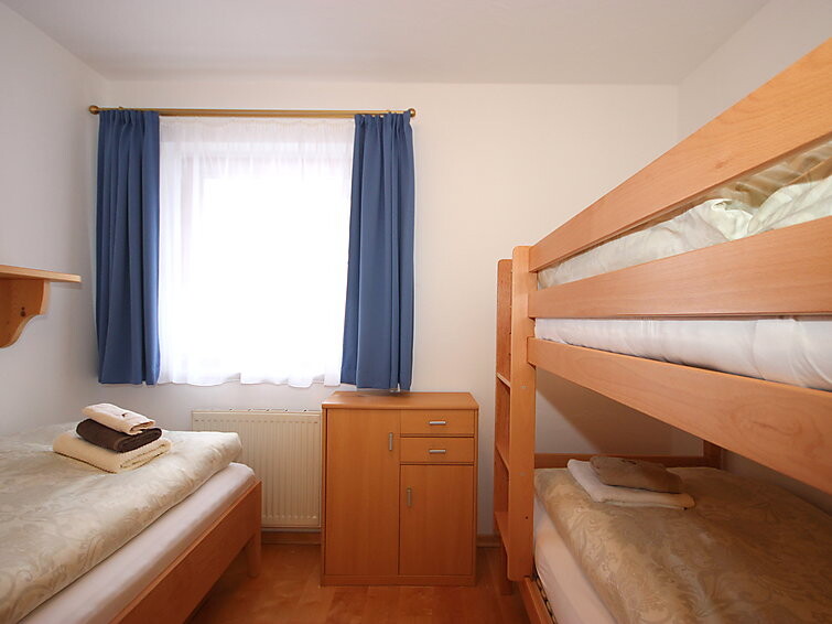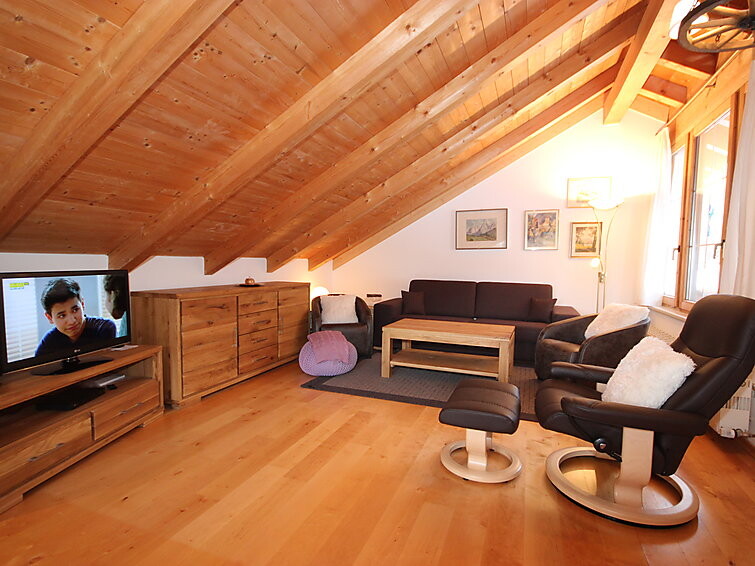 Huis in een rij 5-kamers 106 m2 op 3 verdiepingen. Ruim en licht, comfortabel en gezellig ingericht: hal. 1 kamer met 1 bed. 1 2-pers. kamer. Douche/WC. Bovenverdieping: 1 kamer met 1 bed en 1 x 2 stapelbedden (90 cm, lengte 200 cm). Open keuken (4-pits kookplaat, oven, afwasmachine, diepvriezer, elektrische koffiemachine) met eettafel. Uitgang naar het terras. Douche/WC. 2e Verdieping: groot woonkamer met afgeschuinde daken met TV (Flatscreen TV). Terrasmeubelen. Mooi uitzicht op de bergen en het landschap. Ter beschikking: Internet (Internet (WiFi), gratis). Parkeerplaats, garage. Geschikt voor families. Rookvrij huis. Rookmelders.