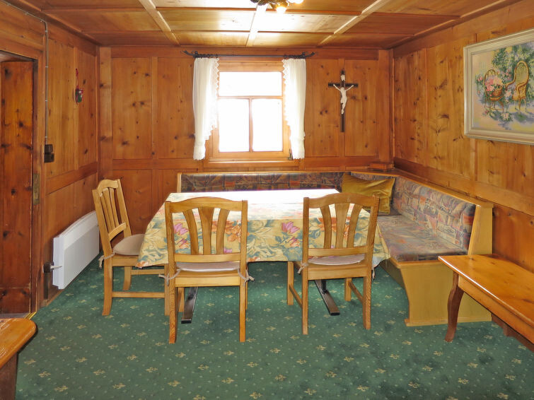 "Haus Hermann", huis 9-kamers 240 m2 op 2 verdiepingen. Gezellig en met veel hout ingericht: groot woon-/eetkamer met tegelkachel. Kleine woonkamer met Sat-TV. 1 kamer met 2 bedden. Keuken (oven, afwasmachine, 4 keramische glas kookplaten, broodrooster, waterkoker, magnetron, elektrische koffiemachine). Douche/WC, aparte WC. Bovenverdieping: 2 2-pers. kamers, elke kamer heeft wastafel. 1 2-pers. kamer. 1 kamer met 1 divanbed, 1 2-pers bed en wastafel. 1 2-pers. kamer met wastafel. Uitgang naar het balkon. Douche, aparte WC.
