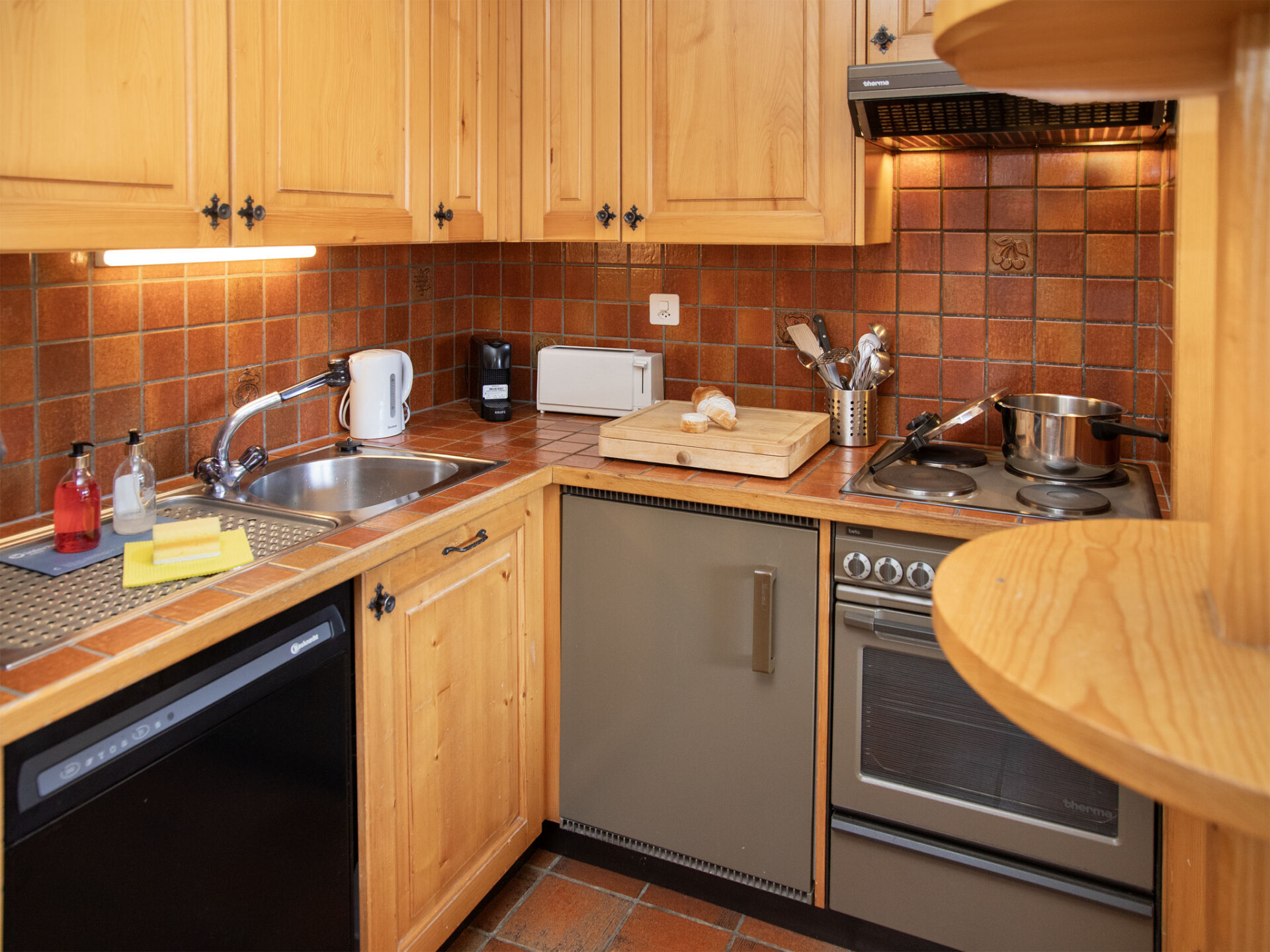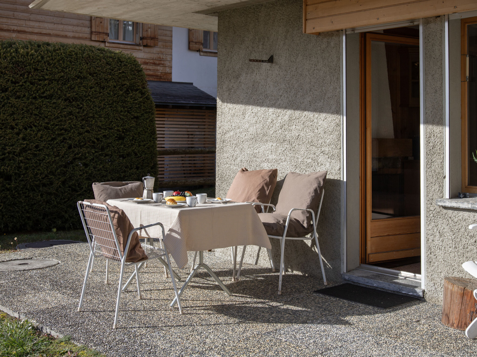 "Orchidée 111", appartement 2-kamers 45 m2, op de begane grond. Doelmatig en mooi ingericht: woon-/eetkamer met 1 2-pers divanbed, Kabel-TV en elektrische verwarming. Uitgang naar het terras. 1 kamer met 2 bedden (90 cm, lengte 200 cm). Uitgang naar het terras. Kookhoek (4-pits kookplaat, afwasmachine, broodrooster, waterkoker, elektrische koffiemachine, pads voor de koffiemachine (Nespresso) extra, raclette oven, fondue Set (kaas)). Badkamer. Terrasmeubelen, barbecue. Mooi uitzicht op de bergen. Ter beschikking: haardroger. Internet (WiFi, gratis). Parkeerplaats nr. 111 bij het huis. Niet rokers woning.