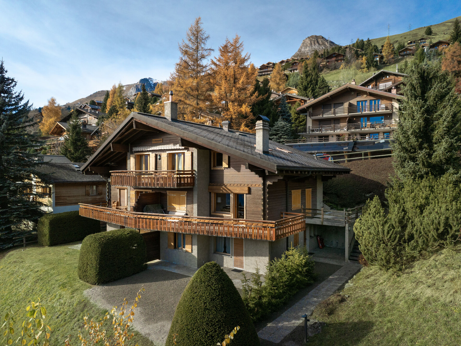Klein appartementencomplex "Orchidée", van 3 verdiepingen, omgeven door bomen en weiden. In de wijk de la Pleyeuse, 2 km van het centrum, rustige, zonnige ligging. In het huis: berging voor ski's. Toegangsweg tot 20 m voor aan het huis. (35 treden). Levensmiddelenwinkel 1.5 km, supermarkt 2 km, winkelcentrum 2 km, bakkerij 1.5 km, bushalte 100 m. Sportcentrum 2.5 km, kabelbaan op 800 m, skibushalte 100 m, skischool 2 km. Gratis skibus naar het skigebied de Verbier.