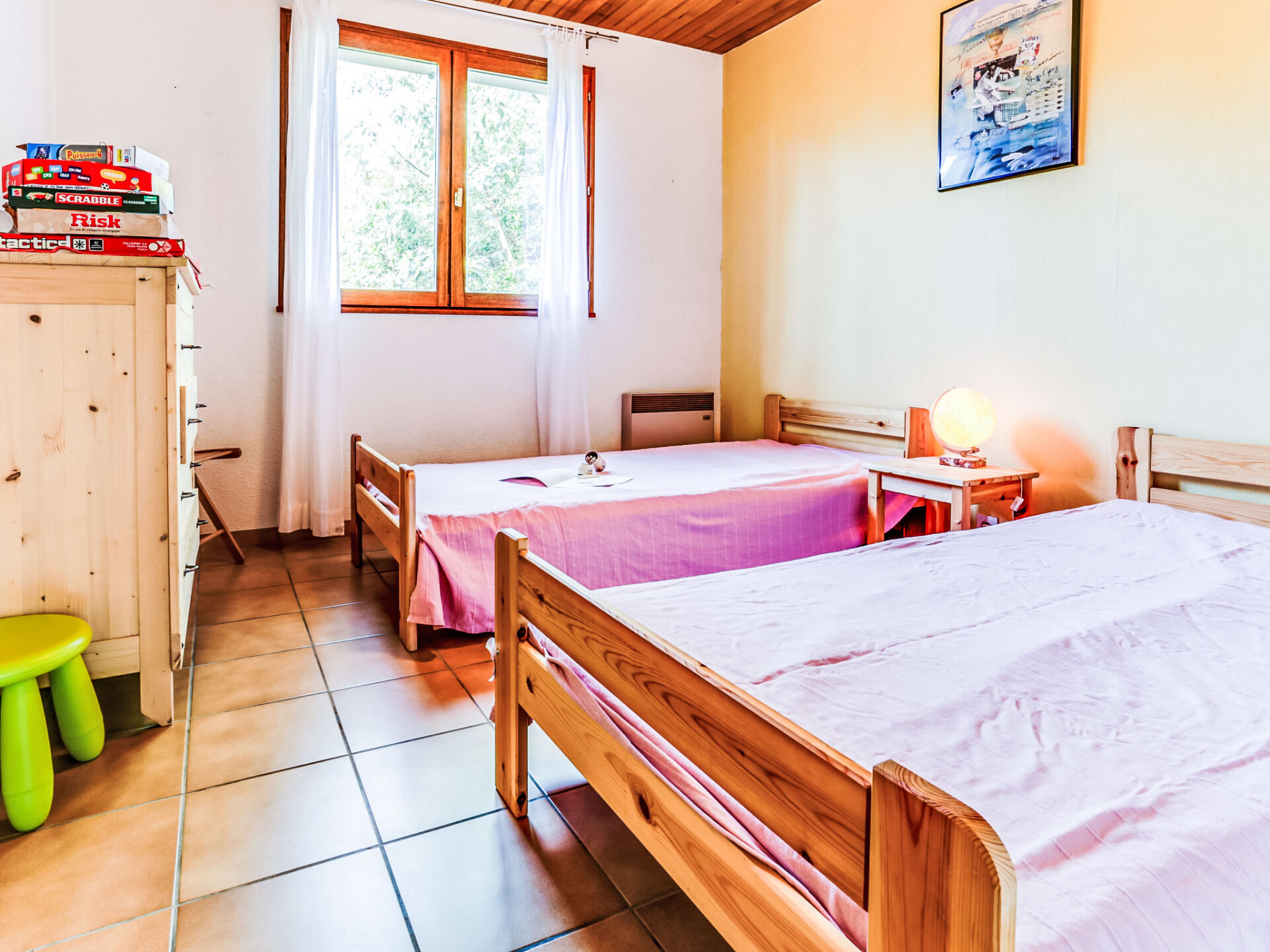 Huis 4-kamers 120 m2 op 2 verdiepingen, op het zuiden gelegen. Woon-/eetkamer met TV. Uitgang naar het terras. 1 kamer met 1 2-pers bed (140 cm, lengte 190 cm). 2 kamers, elke kamer heeft 2 bedden (90 cm, lengte 190 cm). Open keuken (oven, afwasmachine, 3 inductiekookplaten, magnetron, elektrische koffiemachine) met bar. Bad/douche, aparte WC. Verwarming. Bovenverdieping: galerij met 1 2-pers divanbed. Terras, op het zuiden gelegen. Terrasmeubelen. Ter beschikking: wasmachine. Internet (Internet (WiFi), gratis). Niet rokers woning. Rookmelders. In plaats van een afgesloten slaapkamer bevinden sommige slaapgedeeltes zich in een open ruimte (galerij, nis, etc.).