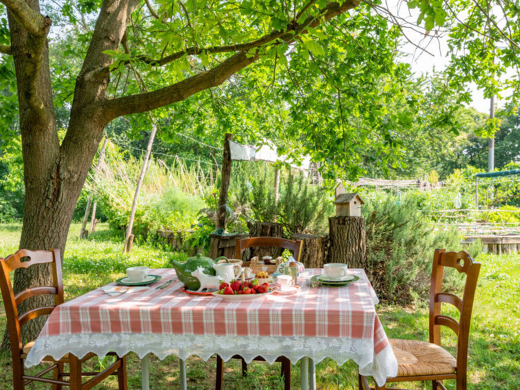 Cortiglione 20 km van Asti: Huis met 2 woningen "Ortondo B&B", omgeven door bomen, weiden en velden. In de wijk Cortiglione, 1 km van het centrum van Cortiglione, rustige, zonnige ligging op een heuvel, te midden van groen. Voor medegebruik: wild terrein 2.000 m2, tuin met planten en bomen, weide. Barbecue, parkeerplaats bij het huis op het terrein. Supermarkt 5 km, bushalte "Colla" 200 m, treinstation "Rocchetta Tanaro" 7 km, openluchtzwembad 4 km, overdekt zwembad 7 km. Auto noodzakelijk. Lokale verkoop van streekproducten. Eigenaar woont in apart huisgedeelte.
