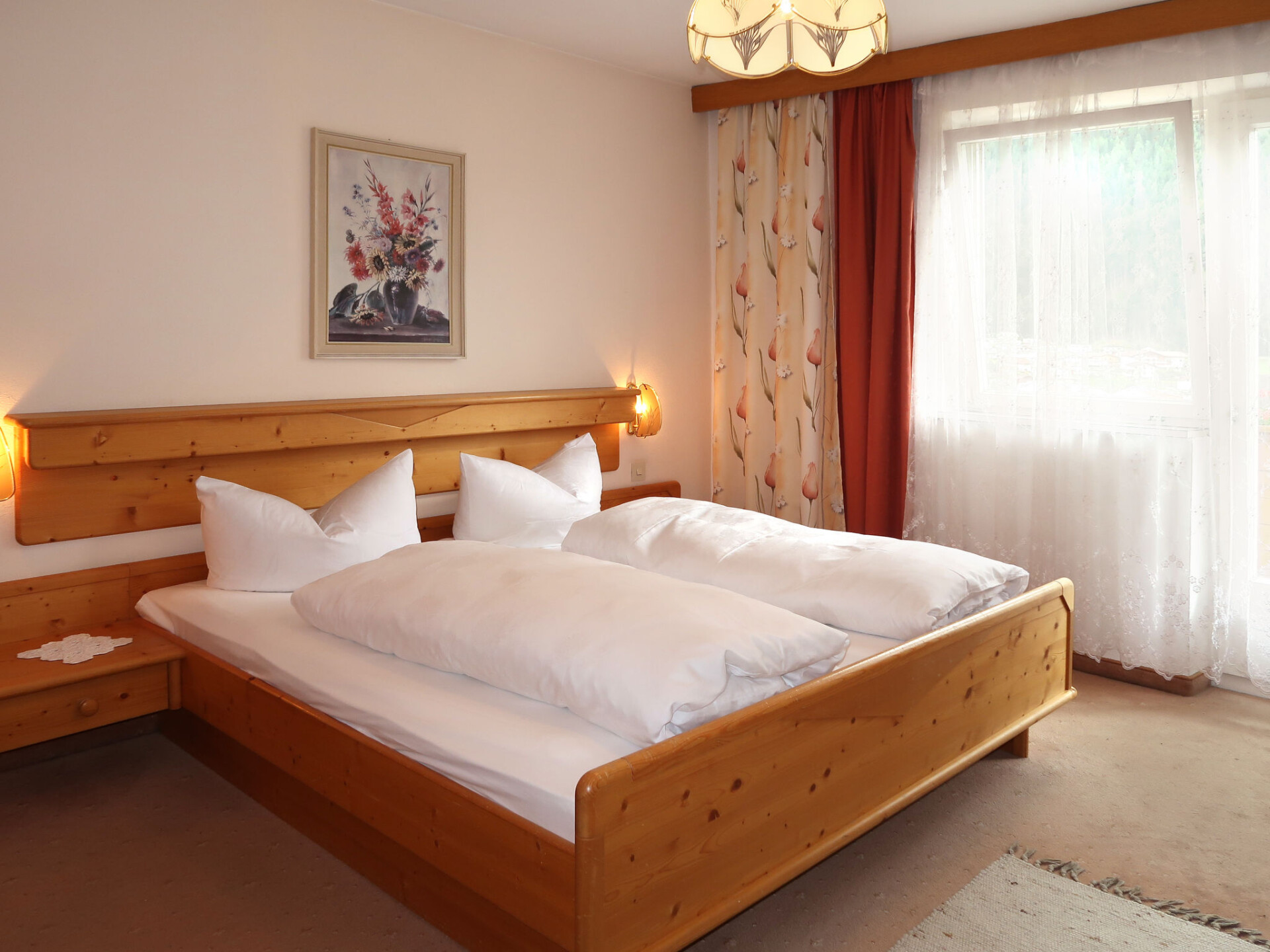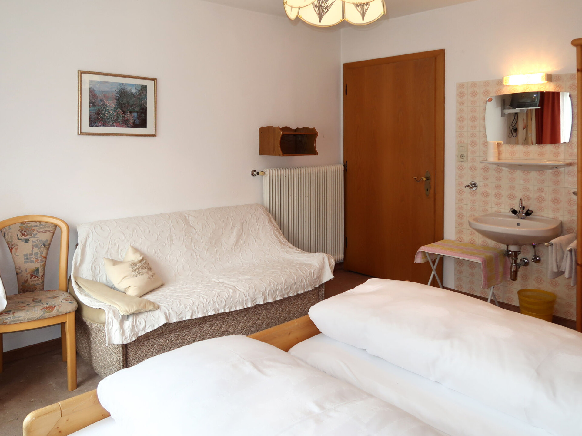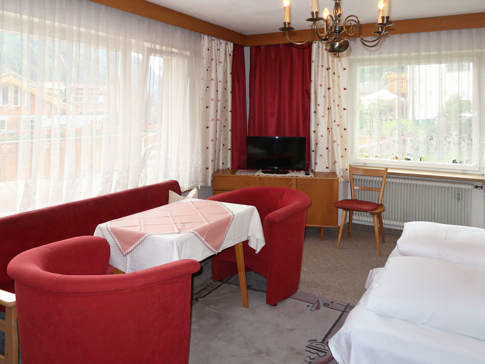 "Palman", huis 9-kamers 200 m2 op 3 verdiepingen, op het zuidoosten gelegen. Doelmatig en rustiek ingericht: groot woon-/eetkamer met eettafel, eethoek en Sat-TV. Keuken (oven, afwasmachine, 4 keramische glas kookplaten, broodrooster, waterkoker, magnetron, elektrische koffiemachine) met kleine eettafel. Douche/WC. Bovenverdieping: 1 2-pers. kamer met wintertuin met 1 2-pers bed, wastafel, douche/WC en Sat-TV. Uitgang naar de tuin. 2 2-pers. kamers, elke kamer heeft wastafel, douche/WC en Sat-TV. 2e Verdieping: 3 2-pers. kamers, elke kamer heeft wastafel, douche/WC en Sat-TV. Uitgang naar het balkon. 1 kamer met 1 bed en wastafel. 1 2-pers. kamer. Olie-verwarming. Vloerbedekking. 2 balkons, groot terras, zithoek in de tuin. Terrasmeubelen, balkonmeubilair. Mooi uitzicht op het dal, de plaats en Piz Buin. Ter beschikking: kinderstoel, kinderbed. Internet (Internet (WiFi), gratis). Als er minder dan het maximale aantal gasten in de accommodatie verblijft, zijn niet alle wooneenheden beschikbaar voor gebruik.