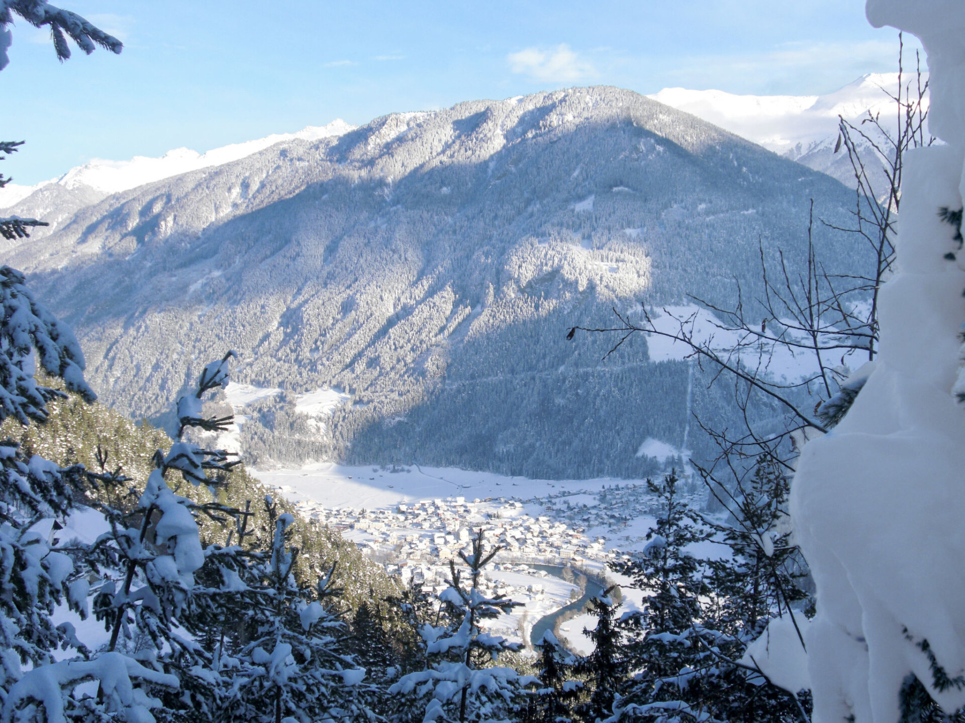 Appartementencomplex "Palman", 980 m boven zeeniveau, van 3 verdiepingen. In de wijk Stuben, 300 m van het centrum van Pfunds, 12.5 km van het centrum van Nauders, tegen een helling, in een woonwijk, direct aan de bosrand. Voor alleengebruik: terrein 300 m2 (omheind), verzorgde tuin met weide. Toegangsweg tot 200 m voor aan het huis. Parkeerplaats (voor 4 auto's) op het terrein. Supermarkt 550 m, bushalte 300 m, treinstation "Landeck" 30 km, openluchtzwembad 1 km, overdekt zwembad 28 km. Golfterrein (9 holes) 32 km, bergtrein 14.5 km. Bekende meren kunnen gemakkelijk worden bereikt: Reschensee 20 km.