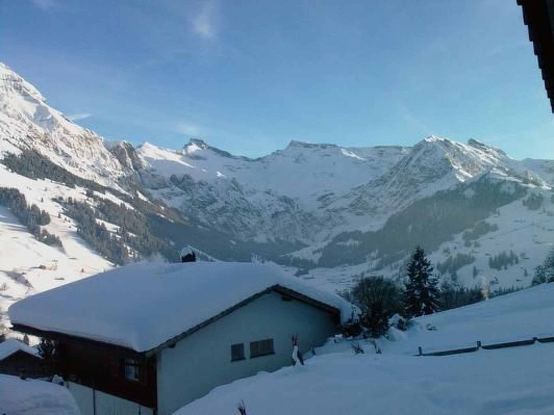 Charming chalet in Adelboden with breathtaking views of the mountain panoramaEnjoy peace and relaxation in our detached 5-room chalet (98 m²) above Adelboden. The view of the surrounding mountains is unique - perfect for nature lovers, families and active holidaymakers!Our chalet boasts one of the most beautiful views of the Adelboden mountain panorama. If you're looking for peace, nature and pure relaxation, you've come to the right place!Facilities & layoutLiving rooms:Cosy living room with TV, DVD, radio and CDAccess to a spacious balcony, garden with seating area and garden furnitureBedrooms:3 bedrooms, each with two single beds1 bedroom with bunk bedsBed linen and duvets (Nordic) includedKitchen:Modern kitchen with ceramic hob, oven, microwave, fridge and dishwasherFondue and raclette set, coffee machine and kettleKitchen towels availableBathrooms:1 bathroom with bathtub and WC1 additional guest toilet on the ground floorOther facilities:Washing machine, drying room and storage roomCentral heatingNon-smoking house (smoking possible outside)No pets allowedDirections & parking facilities2 open car parks directly behind the house2 indoor car parking spaces approx. 200 m awayIn the event of heavy snowfall, access to the holiday home is only possible as far as the car park (approx. 200 m from the chalet) for safety reasons. The path to the chalet (Jägerweg 19) is steep.Leisure activities in AdelbodenWinter: Skiing (4 ski areas), ice skating, curling, snowshoe tours, winter hiking (74 km of trails), cross-country skiing (24.5 km of trails), tobogganing and much more.Summer: hiking (extensive network of trails), barbecue areas, horse-drawn carriage rides, panoramic swimming pool, mountain biking, mountaineering, Trottiland (45 km route) and much more.Location descriptionAdelboden lies at an altitude of 1,350 metres in the heart of the western Bernese Oberland and impresses with its idyllic atmosphere and diverse sports facilities. The spacious, sunny valley invites you to enjoy the impressive mountain scenery in peace and quiet. The charming village centre in the traditional Bernese Oberland style offers a cosy setting for a stroll. Attractions such as the annual FIS World Cup ski race, varied mountain tours and the panoramic swimming pool make Adelboden an ideal destination for active holidaymakers and those seeking relaxation.Have you got the urge? Then we look forward to receiving your enquiry and to welcoming you to our chalet in Adelboden soon!