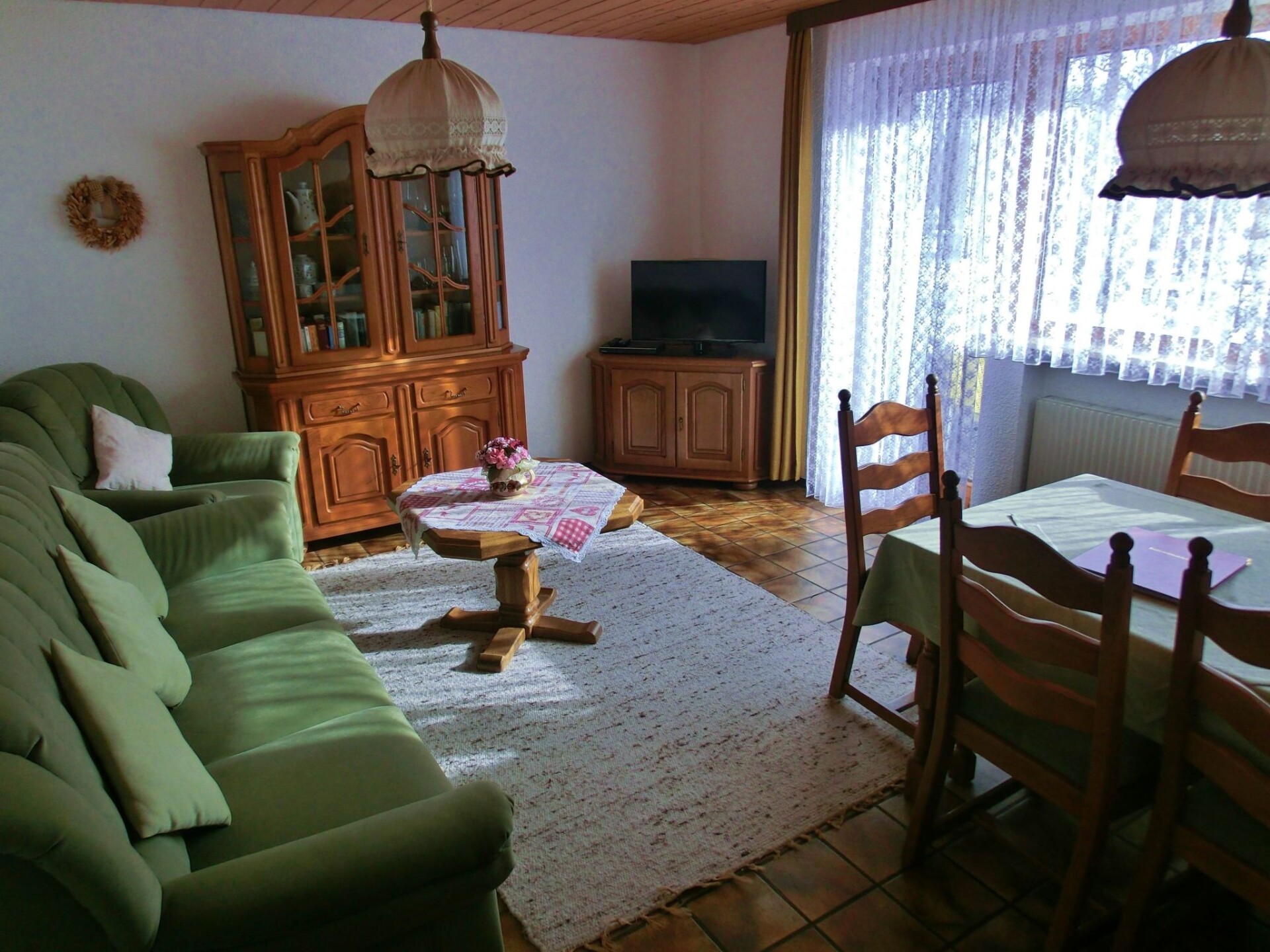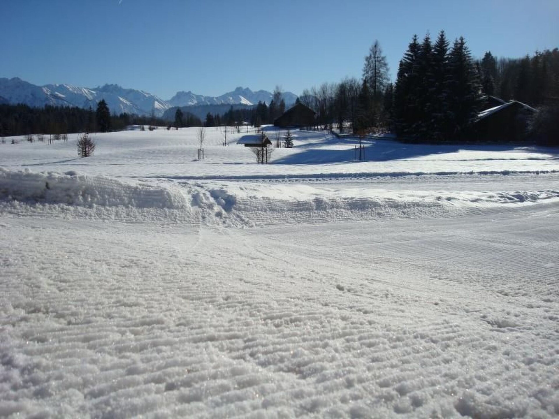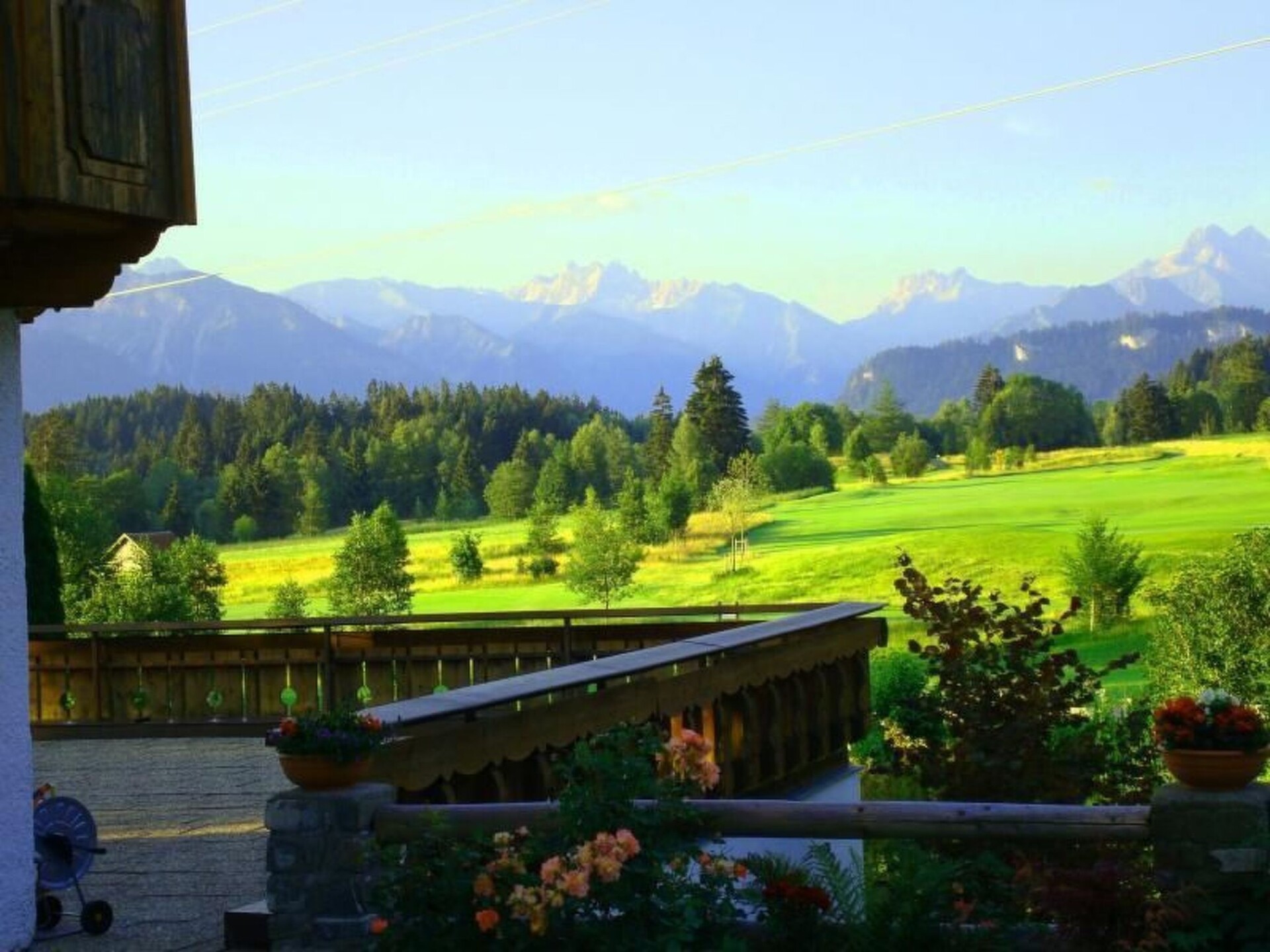 Maximaal 2 huisdieren/honden toegestaan. Unique unobstructed panoramic mountain views of the Allgäu Alps in a quiet secluded location, a huge garden with terrace is directly connected to the flat surrounded by mountain meadows and forests at an altitude of around 860 metres.In addition to large sunbathing and playing areas, barbecue area, paddling pool, table tennis etc., your holiday home offers a wonderful starting point for a sporty (in winter the cross-country ski trail and ski bus access is right next to the house) or relaxing, but in any case restful holiday!Relax in the cosy non-smoking holiday flat with every comfort: living room with satellite TV, DVD player, CD/Cass.radio. One bedroom with double bed, one children's room with pull-out double bed and wardrobe bed. Fully equipped kitchen with dishwasher, oven, fridge and freezer compartment***11 litres. Bathroom with shower/WC. Sauna in the house.The mountain railways Ofterschwang and Bolsterlang offer a comfortable ascent to the mountains of the Hörnergruppe and of course to their famous skiing areas in only 1 and 3 km distance. A village shop with a wide range of groceries and magazines as well as several restaurants are just 1 km away. A further 5 km away is the small town of Sonthofen with other high-quality shopping facilities, the usual discounters and outlet centres. The Wonnemar fun and sports pool invites you to relax and have fun. Other pools and bathing lakes are 3 - 10 km away. Mountain railways to the Allgäu high Alps can be found in Oberstdorf and the Kl. Walsertal 10 to 15 km away.