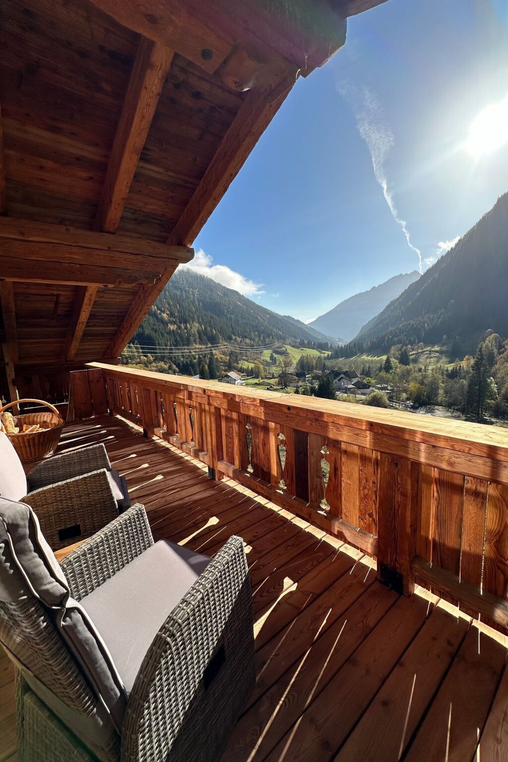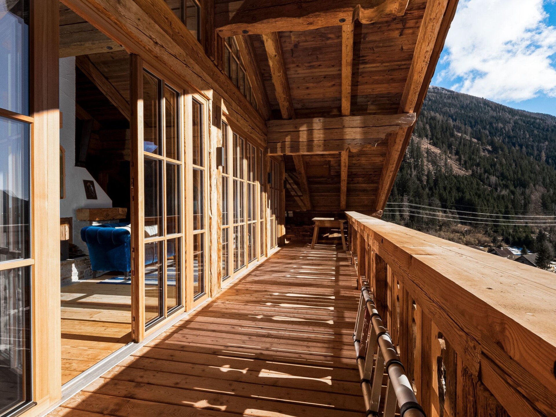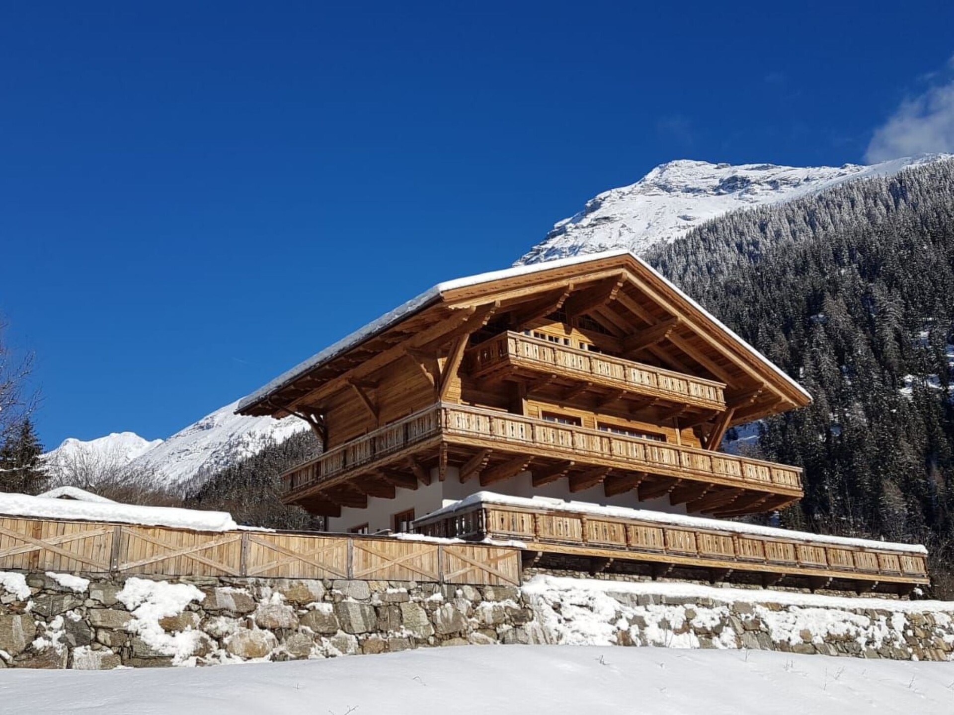 Welcome to the exclusive Grand Chalet, located at the foot of the majestic Mölltal Glacier! Our flat de luxe "Panorama" offers you the perfect starting point for nature activities and relaxing moments. Whether you want to explore the surrounding mountains, discover the breathtaking Mölltal Glacier or simply immerse yourself in the beauty of nature, here you will find countless opportunities to live out your love of the great outdoors.Inside the luxury flat, you will not only find an open fireplace that separates the cosy living/dining area from the sleeping area, but also a bathroom that meets the highest standards. The modern kitchen with high-quality cooking island and wine cabinet as well as the stylish interior made of natural materials such as natural stone and wood create an atmosphere of style and cosiness.The south-facing balcony with a majestic view of an impressive waterfall invites you to enjoy the peace and quiet and the view with a glass of wine after a day in the great outdoors. This unique balcony provides unforgettable moments of relaxation and is the perfect place to unwind.The area surrounding the Grand Chalet offers something for everyone: from the valley station of the Glacier Express, which is just 4 minutes away by car, to the Hohe Tauern National Park, which invites you to go on extensive hikes. The Innerfragant waterfall, which is just a 3-minute walk away, also offers a refreshing way to cool off on hot summer days. With attractions such as the Raggaschlucht natural monument, the glacier ski area and the diverse mountain bike and racing bike trails, there is certainly something for every adventurous heart.Step into your private hideaway in the Grand Chalet and experience a holiday that combines stylish elegance, comfort and nature in perfect harmony. We look forward to welcoming you to this unique mountain oasis and providing you with an unforgettable holiday. Let yourself be inspired by the extraordinary atmosphere and enjoy your time out from everyday life to the full.