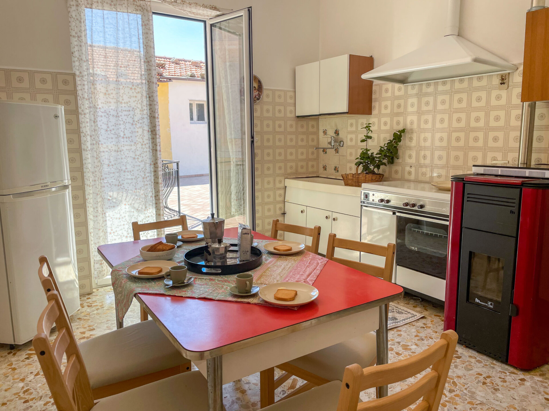 "Panoramica sul Terrazzo", appartement 3-kamers 85 m2, op de bovenverdieping. Ruim en licht, doelmatig en gezellig ingericht: 1 2-pers. kamer. 1 kamer met 2 bedden (90 cm, lengte 200 cm), Sat-TV. 1 kamer met 1 2-pers bed (1 x 160 cm, lengte 200 cm). Keuken (oven, afwasmachine, 2 inductiekookplaten, 4 kookpitten (vlammen), broodrooster, waterkoker, diepvriezer, elektrische koffiemachine) met eettafel, Sat-TV. Uitgang naar het terras. Douche/bidet/WC. Verwarming. Groot terras 25 m2. Terrasmeubelen. Mooi panoramazicht op de bergen en de plaats. Ter beschikking: wasmachine. Internet (WiFi). Maximaal 1 huisdier/hond toegestaan. Privé ingang.