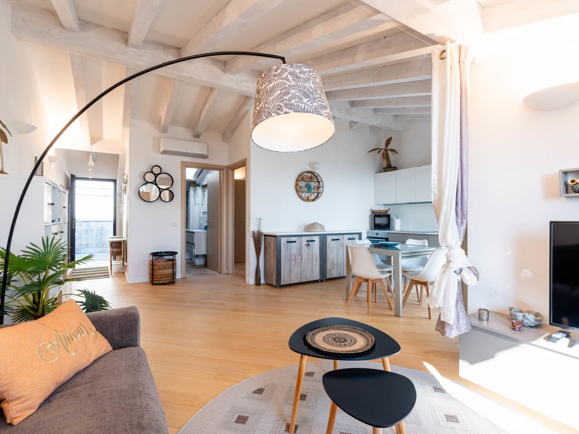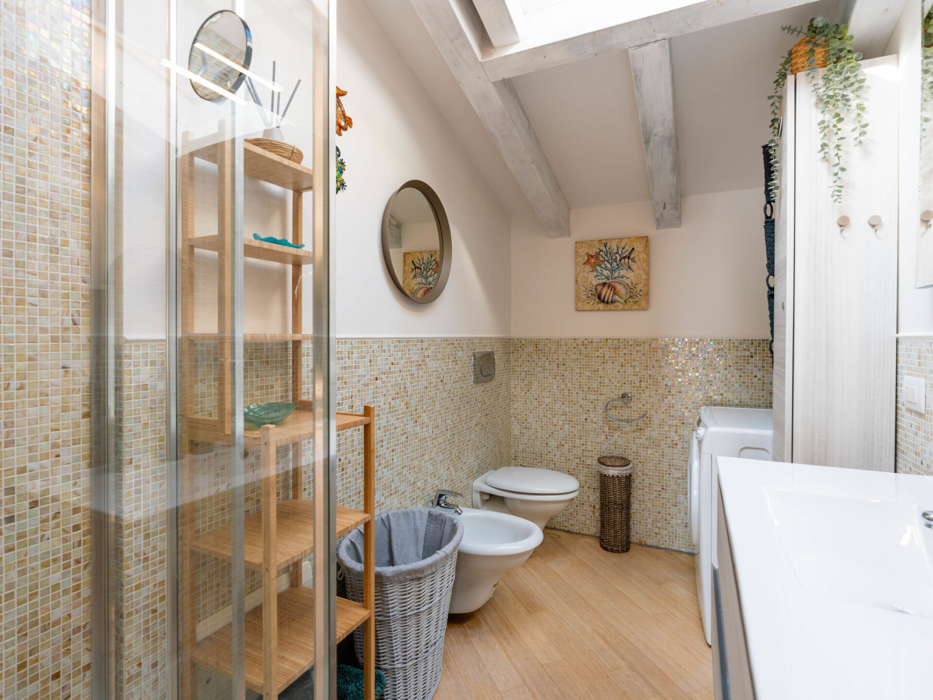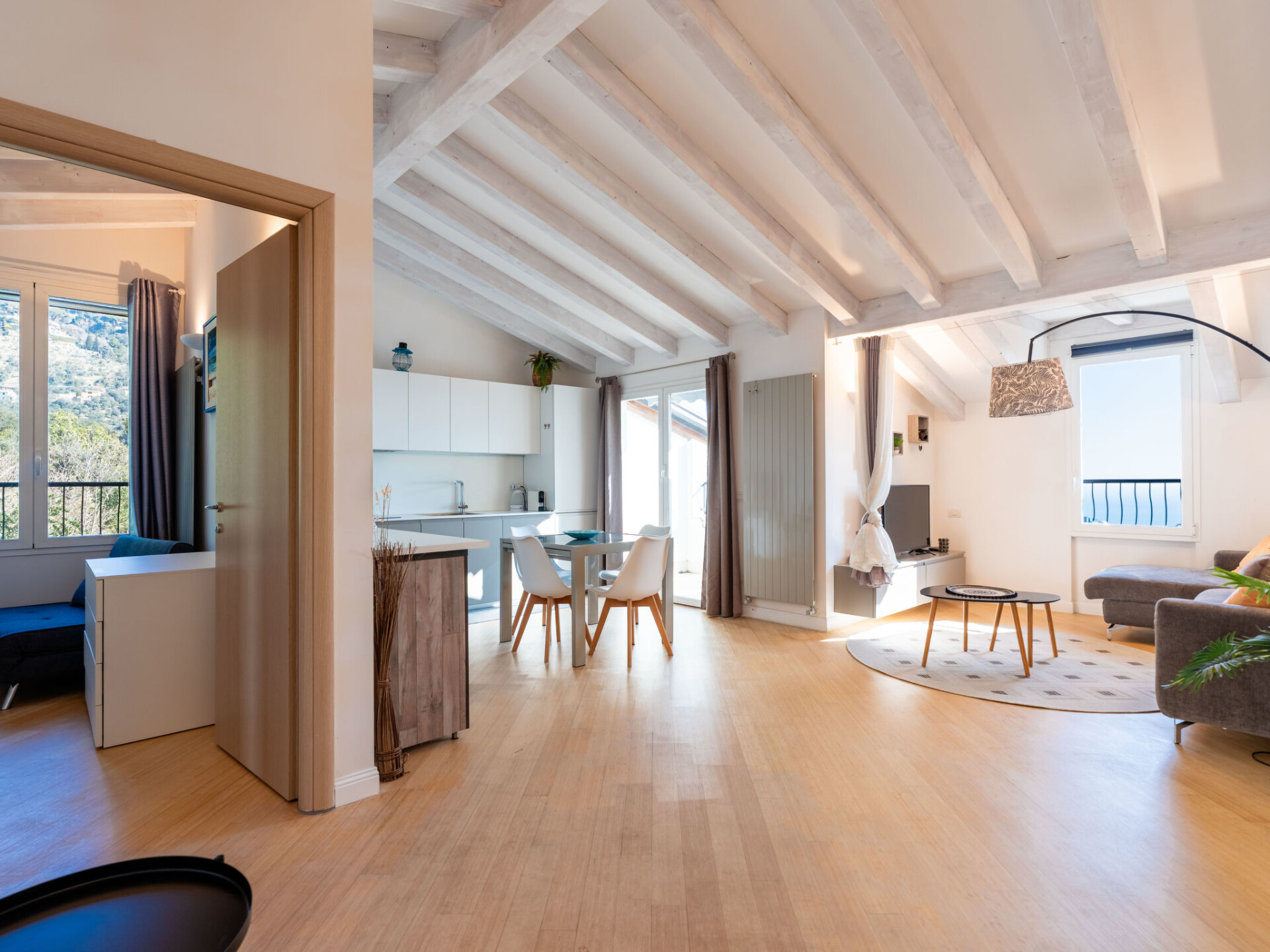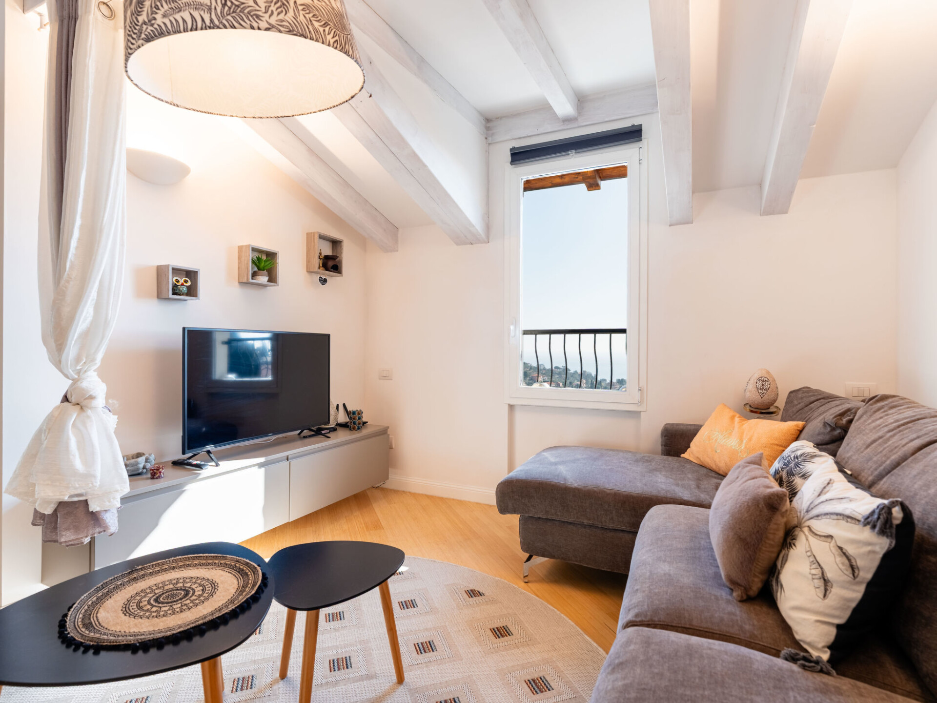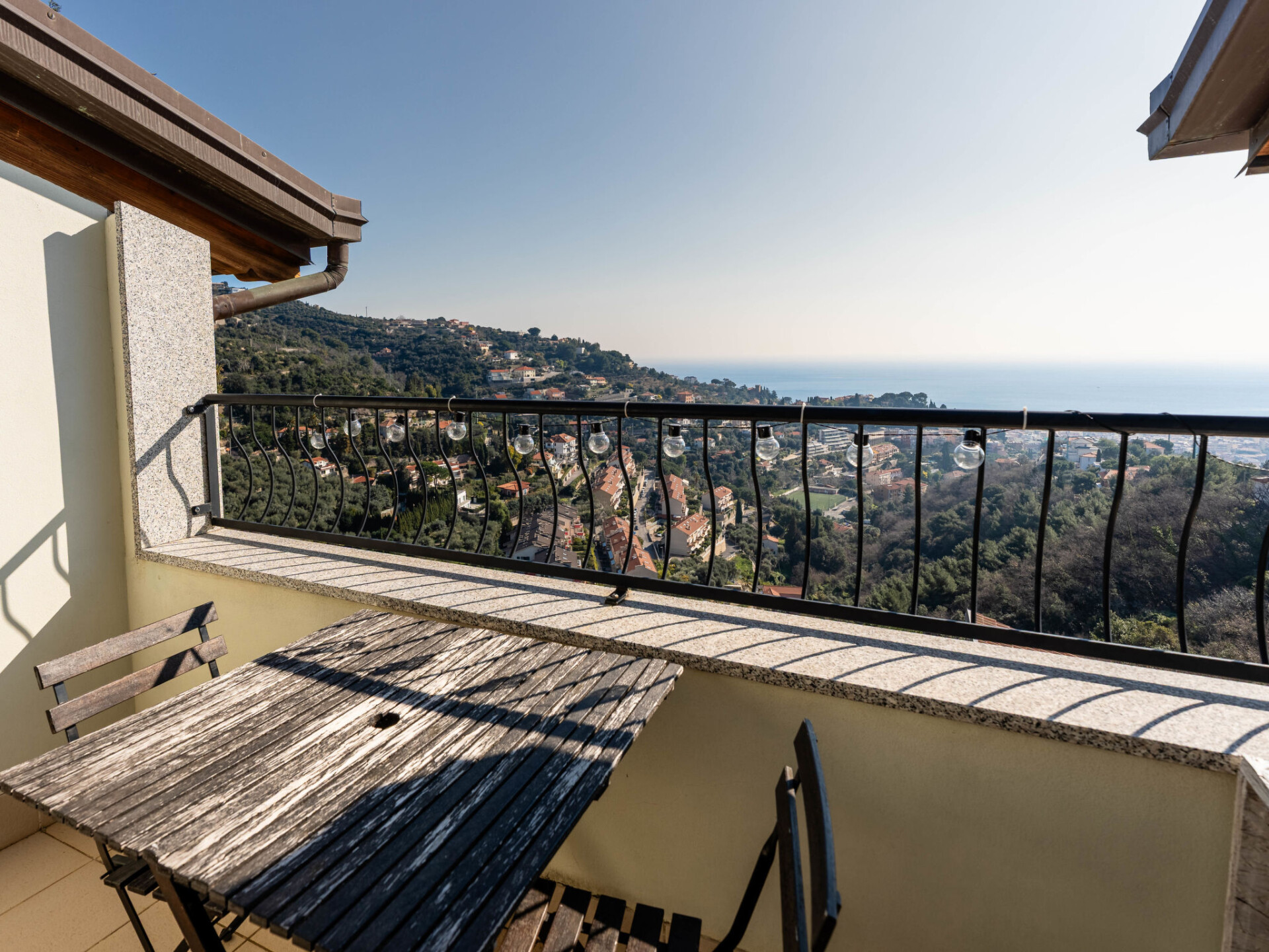 "Paradise View", penthouse 2-kamers 80 m2 op de 3e verdieping. Modern en smaakvol ingericht: woon-/eetkamer met 1 2-pers divanbed, TV en air-conditioning. Uitgang naar het balkon. 1 2-pers. kamer met air-conditioning. Woonkeuken (oven, afwasmachine, 4 inductiekookplaten, broodrooster, waterkoker, magnetron, elektrische koffiemachine). Douche/bidet/WC. Gas-verwarming. Verwarming alleen beschikbaar van 01.11. tot 15.04. Balkon 8 m2, 2 groot terrassen 20 m2. Terrasmeubelen. Mooi panoramazicht op zee. Ter beschikking: wasmachine, kinderbed tot 2 jaar, haardroger. Internet (WiFi, gratis). Garage bij het huis. Maximaal 1 huisdier/hond toegestaan. Privé ingang. IT009001B45J99FIPS