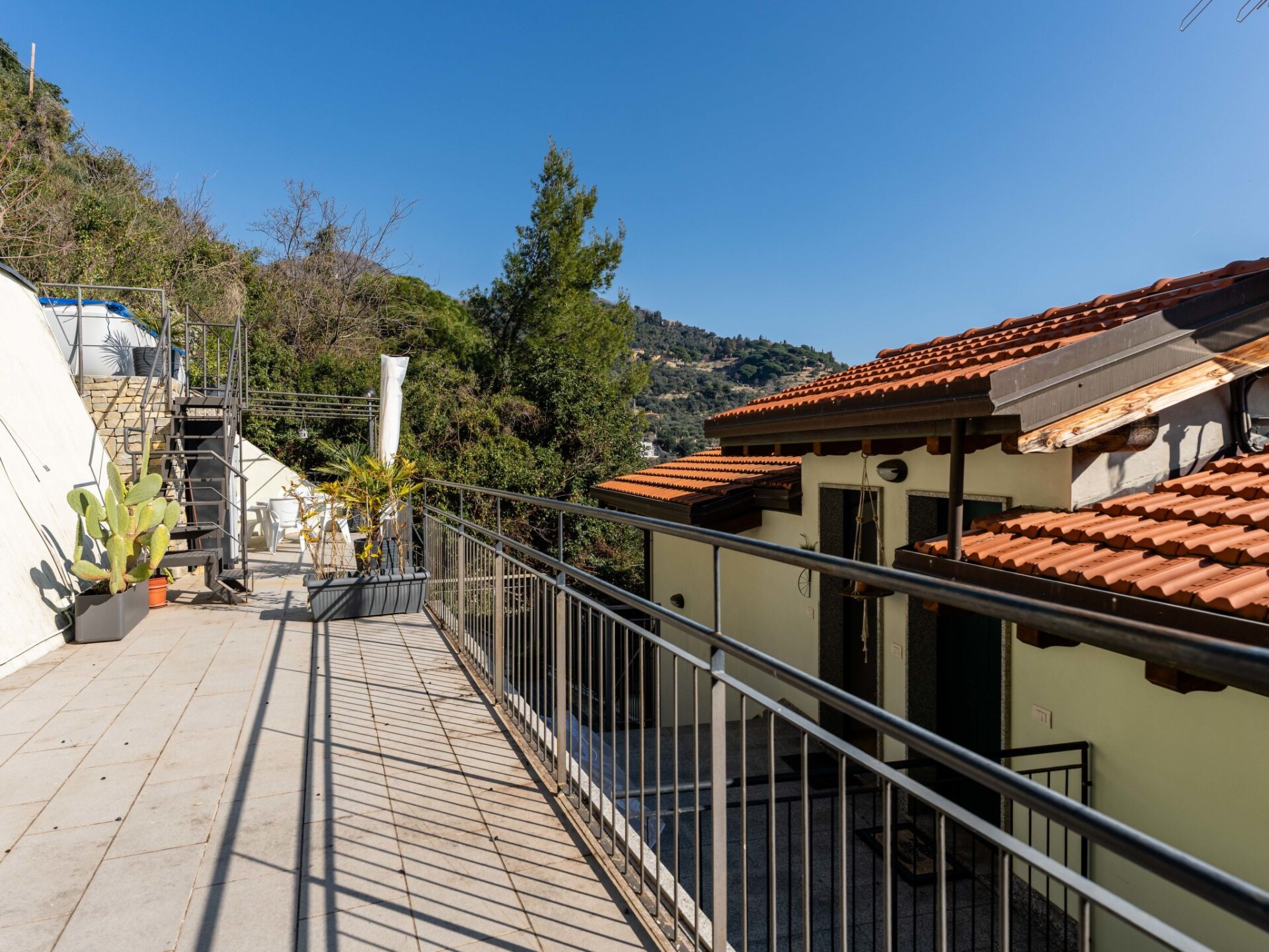 Gezellig Huis met 3 woningen van 3 verdiepingen. In de wijk Moglio, 3 km van het centrum van Alassio, 6 km van het centrum van Laigueglia, 11 km van het centrum van Cervo, tegen een helling, 3.5 km van zee. Voor alleengebruik: openluchtzwembad (verhoogd) (3 x 4 m, 90 - 100 cm diepte, seizoensgebonden beschikbaarheid: 01.Mei. - 30.Sep.) met trap. Terras, tuinmeubelen. Trappenweg (40 treden) naar het huis. Supermarkt 3 km, restaurant 2 km, bar 2 km, bakkerij 3 km, bushalte 300 m, treinstation "Alassio" 3 km, zandstrand 3.5 km. Attracties in de buurt: Muretto Alassio 3.5 km, Villa della Pergola 3 km. Auto noodzakelijk, geen lift.