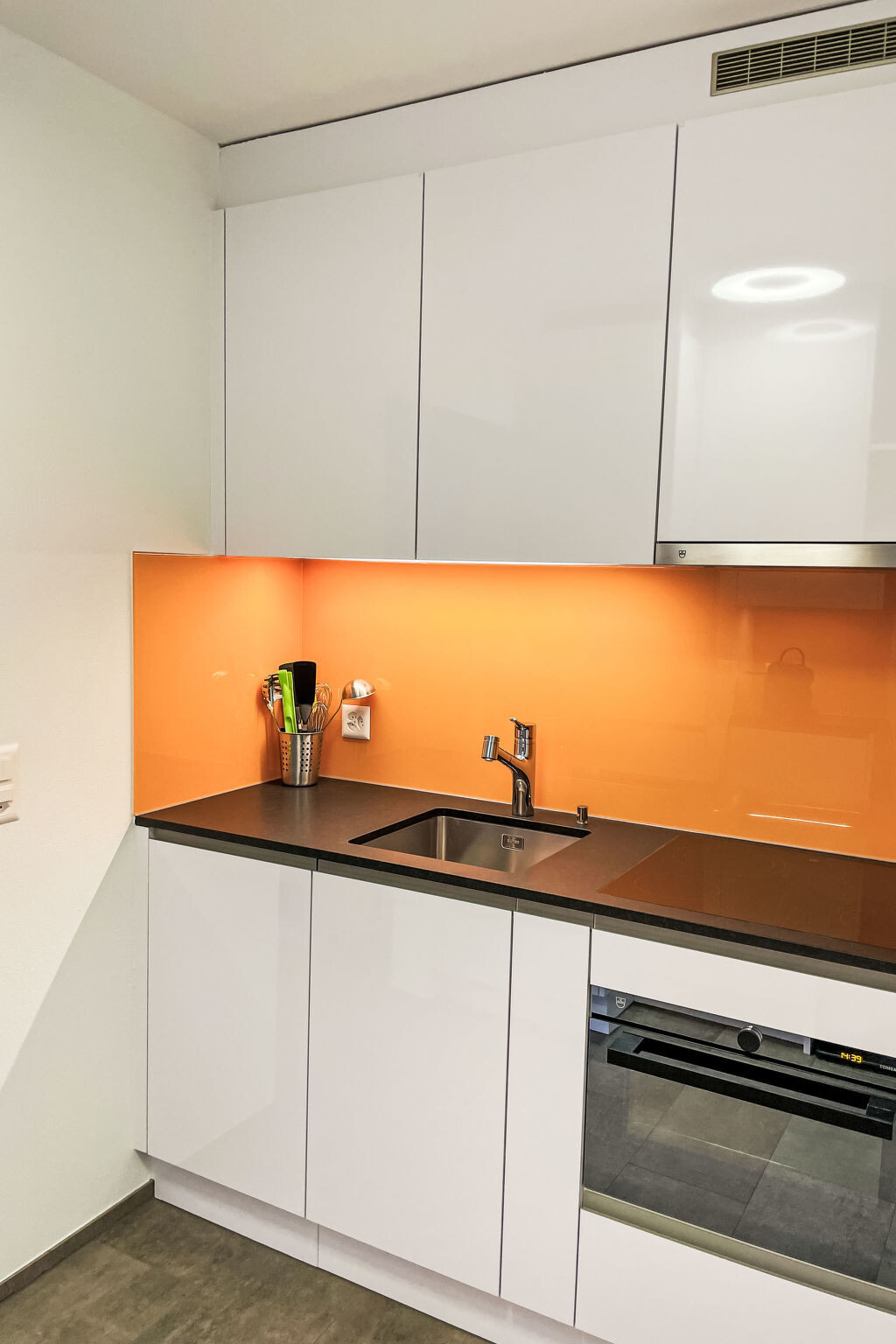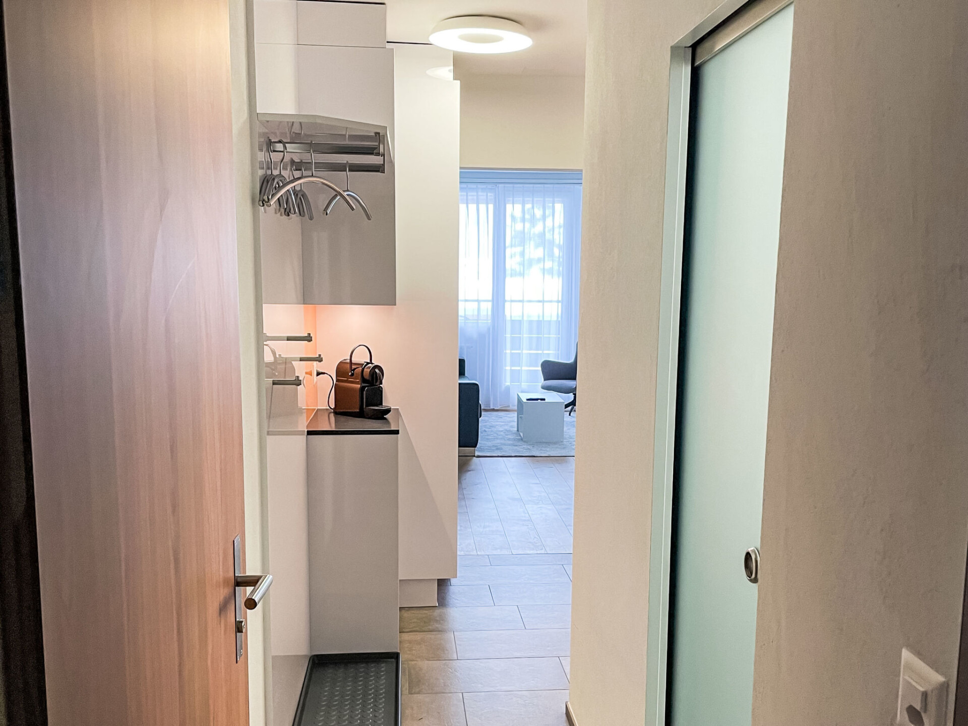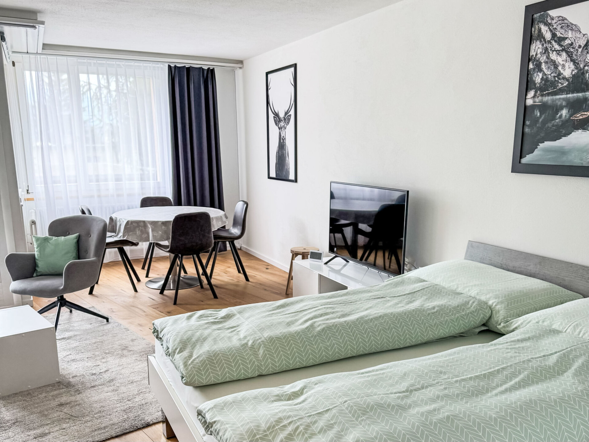 "Parkareal Apt 404", appartement 1-kamer 47 m2 op de 4e verdieping, op het zuidwesten gelegen. Volledig gerenoveerd in 2023, comfortabel en modern ingericht: open woon-/eetkamer met 1 divanbed (160 cm, lengte 200 cm), 1 2-pers bed (180 cm, lengte 200 cm), Kabel-TV (Flatscreen TV). Uitgang naar het balkon. Open keuken (oven, afwasmachine, 4 keramische glas kookplaten, waterkoker, diepvriezer, elektrische koffiemachine, pads voor de koffiemachine (Nespresso) extra). Douche/WC. Balkon, op het zuiden gelegen. Balkonmeubilair. Mooi uitzicht op de bergen, het landschap en de plaats. Ter beschikking: Internet (WiFi, gratis). Parkeerplaats (extra) bij het huis. Niet rokers woning. 12320