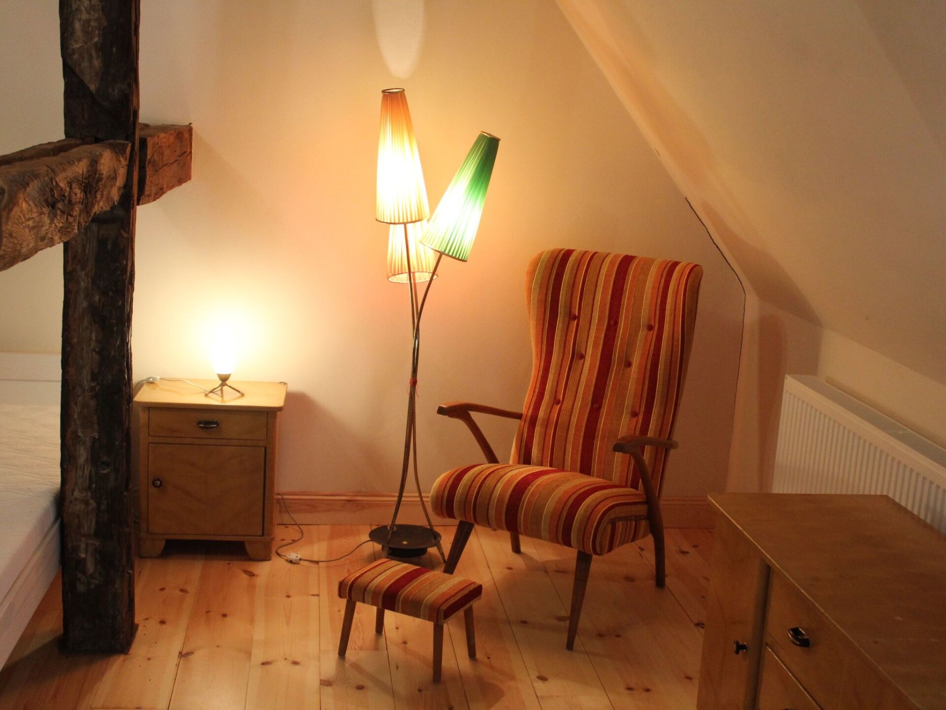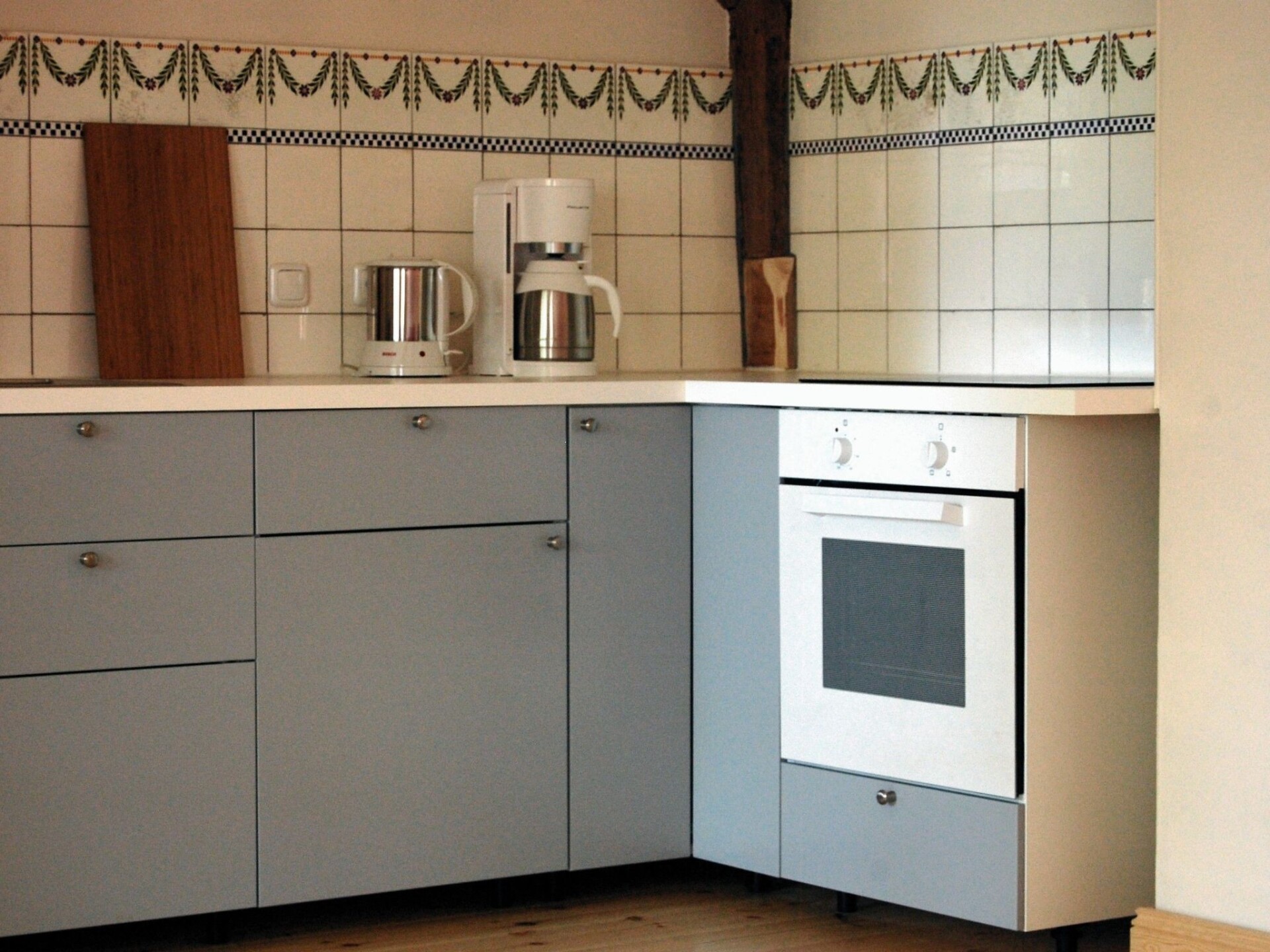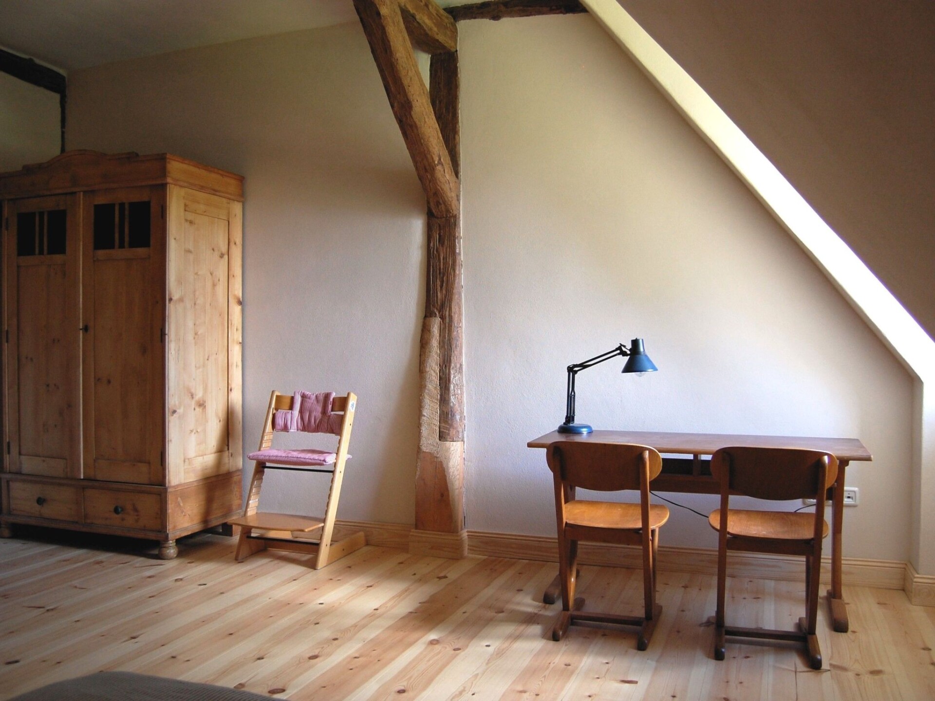 Maximaal 2 huisdieren/honden toegestaan. The accommodation is in a village with preserved old structures (church, manor house etc.), away from mass tourism by the Baltic Sea, where you can find peace and quiet but still get to the town and the beach within half an hour.The fully enclosed site measures 10,000m² and has a park-like character. There is a little herd of sheep in a separate area, which may be fed with bread. There are several shady or sunny spots with seating and loungers. A charcoal grill is available.The non-smoking apartment measures 85m² and can accommodate four people in two bedrooms. A child’s bed (for a toddler up to 2 years old) and a highchair can be provided. All the rooms have traditional wooden floorboards. One bedroom is furnished with a double bed (180 x 200cm), the other with two single beds (100 x 200cm). The kitchen is integrated into the very spacious living room.The house stands detached on a large site on the edge of the little village Petschow. All around, it is surrounded by meadows and fields. Those who like exercise outdoors have plenty of opportunity to do so. It is 2km to a swimming like by bike or car.Your apartment is in a historical listed building from 1743 that was renovated carefully and according to ecological standards in 2013. The Pastor Becker holiday apartment features the exposed beams of the original timber-framed structure.