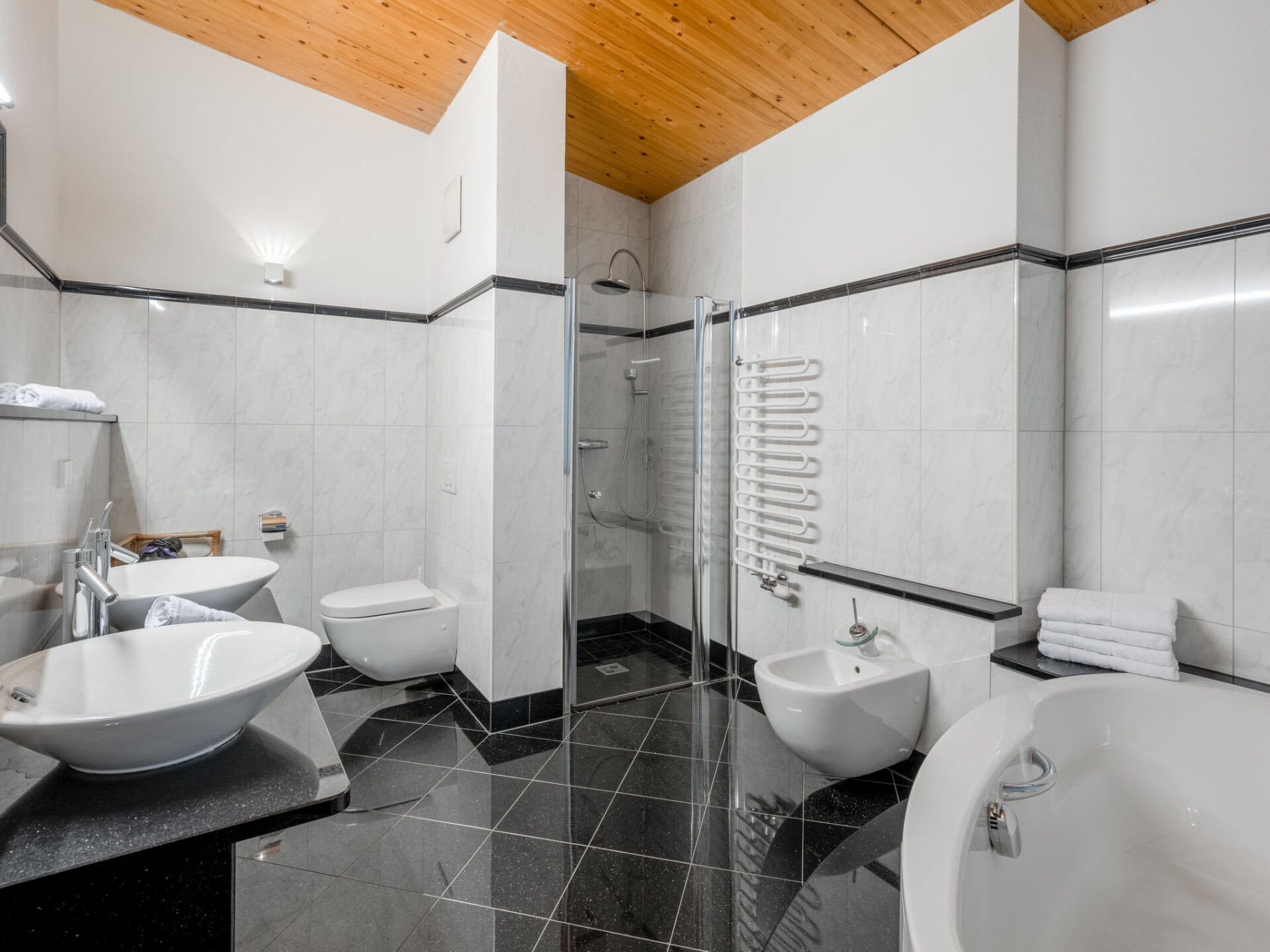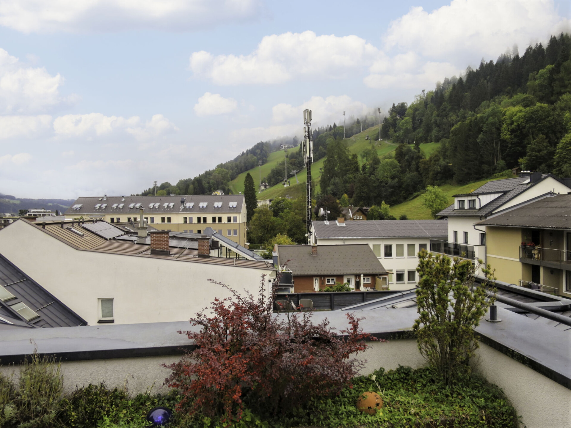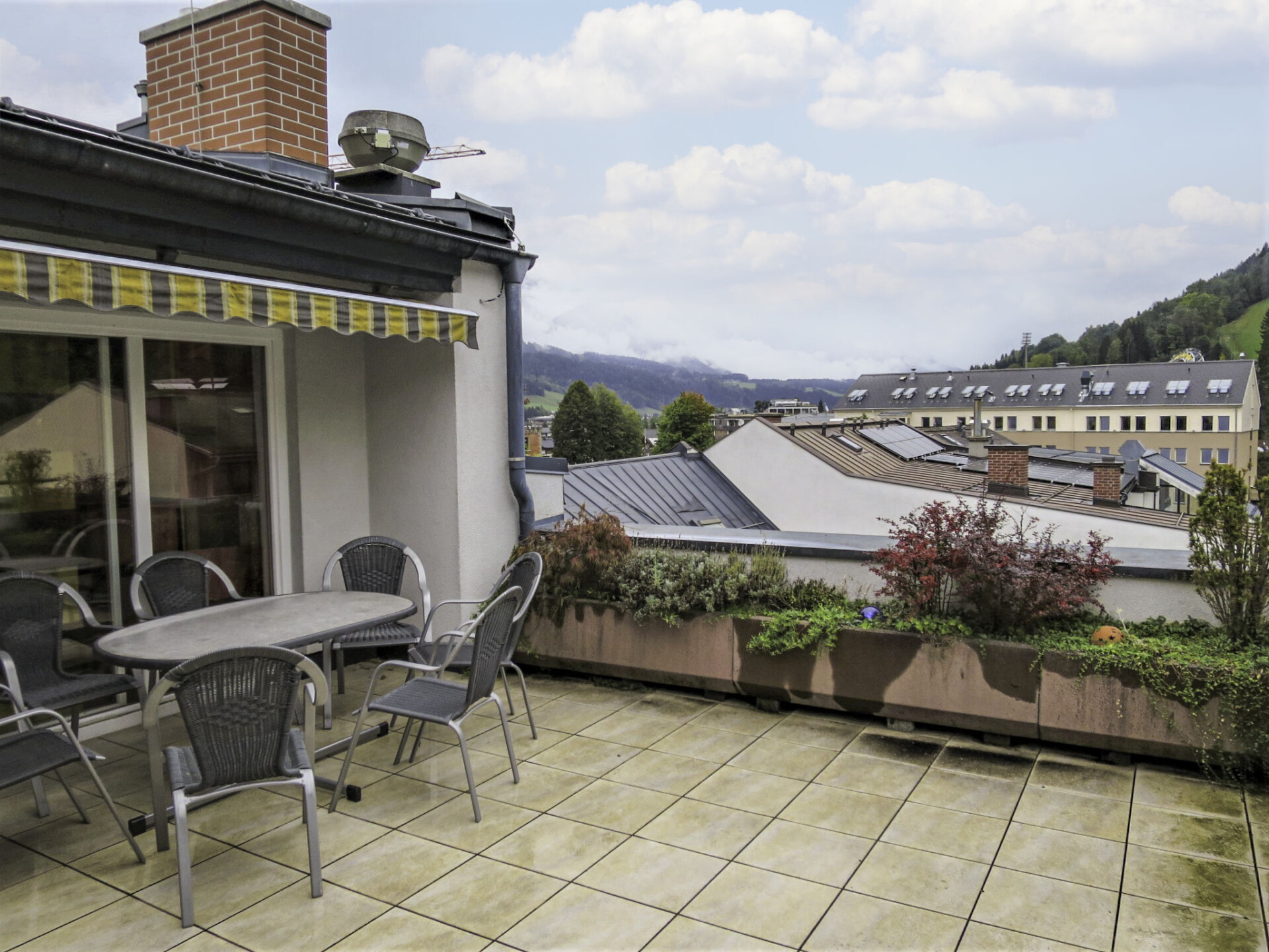 "Penthouse 1", penthouse 6-kamers 160 m2 op de 3e verdieping. Ruim en licht, comfortabel ingericht: woonkamer met open haard (alleen decoratie), Sat-TV en Flatscreen TV. Uitgang naar het balkon. 2 2-pers. kamers. Uitgang naar het balkon. 1 kamer met 2 bedden. Uitgang naar het balkon. 1 2-pers. kamer met bad/douche/WC en dubbele wastafels. Groot woonkeuken (oven, afwasmachine, 4 keramische glas kookplaten, broodrooster, waterkoker, magnetron, elektrische koffiemachine, steamer). Uitgang naar het terras. Douche/WC. Verwarming. Groot terras 16 m2, op het zuiden gelegen. Terrasmeubelen. Zeer mooi panoramazicht op de bergen, de skipiste en de stad. Ter beschikking: Internet (WiFi). Parkeerplaats (2 Auto's) op 250 m. Rookvrij huis. Maximaal 1 huisdier/hond toegestaan.