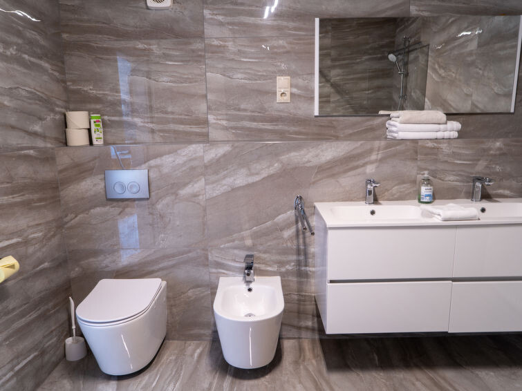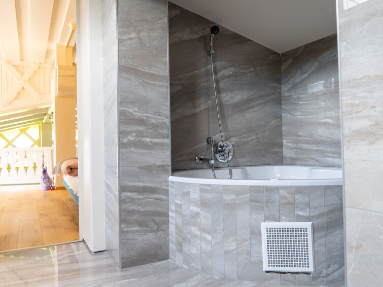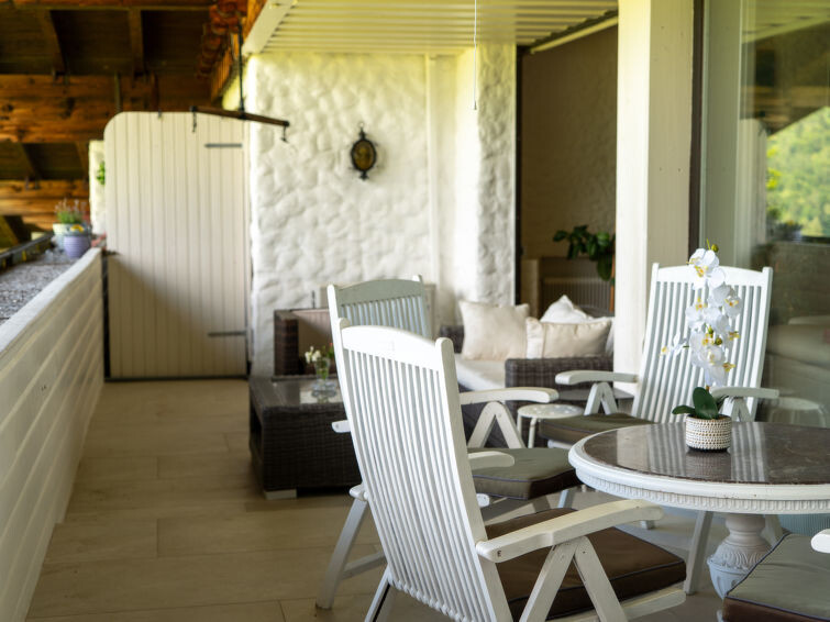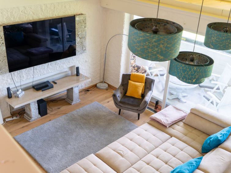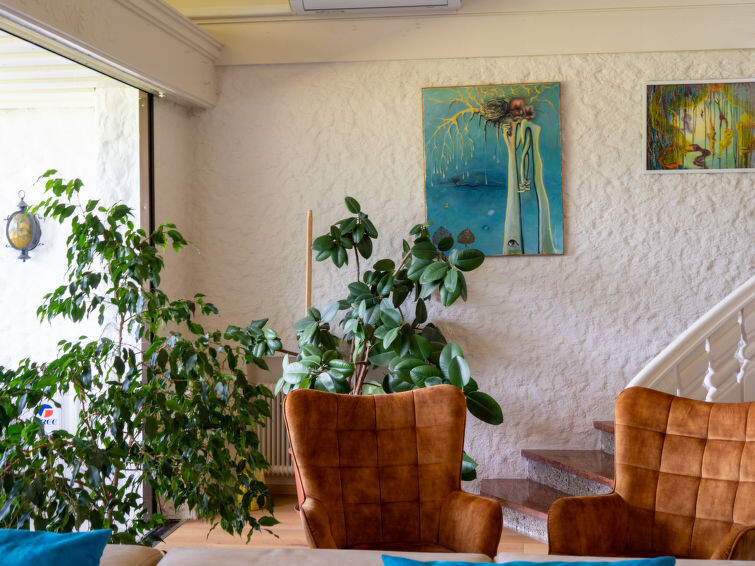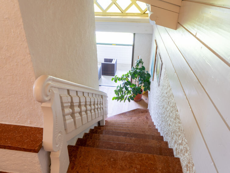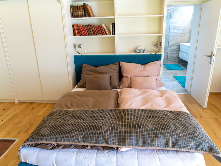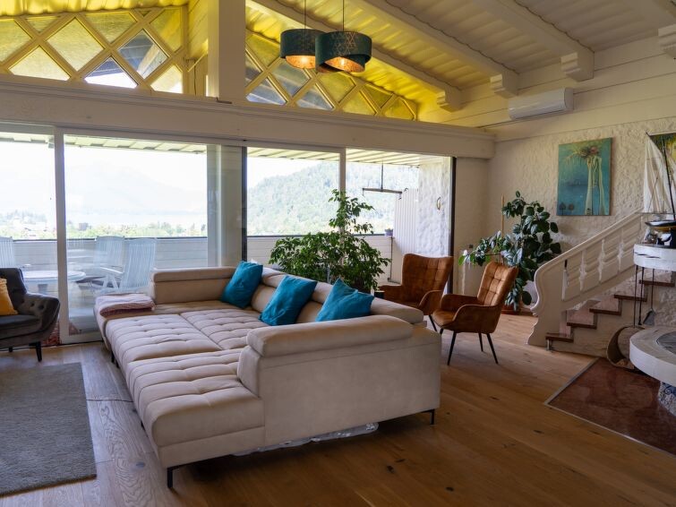 "Penthouse Deluxe Galerie 2 stöckig", penthouse 5-kamers 210 m2 op 2 verdiepingen. Luxueus en gezellig ingericht: woonkamer met 1 2-pers divanbed (180 cm, lengte 200 cm), Kabel-TV (Flatscreen TV). 2 2-pers. kamers, elke kamer heeft 1 2-pers bed (180 cm, lengte 200 cm). 1 kamer met 2 bedden (90 cm, lengte 200 cm). Woonkamer. Groot keuken (oven, afwasmachine, 4 inductiekookplaten, broodrooster, waterkoker, elektrische koffiemachine). Douche/WC, bad/douche/WC. Verwarming. Bovenverdieping: galerij met 1 2-pers bed (180 cm, lengte 200 cm). Groot terras 40 m2. Terrasmeubelen. Zeer mooi panoramazicht op het meer. Ter beschikking: Internet (WiFi, gratis). Niet rokers woning.