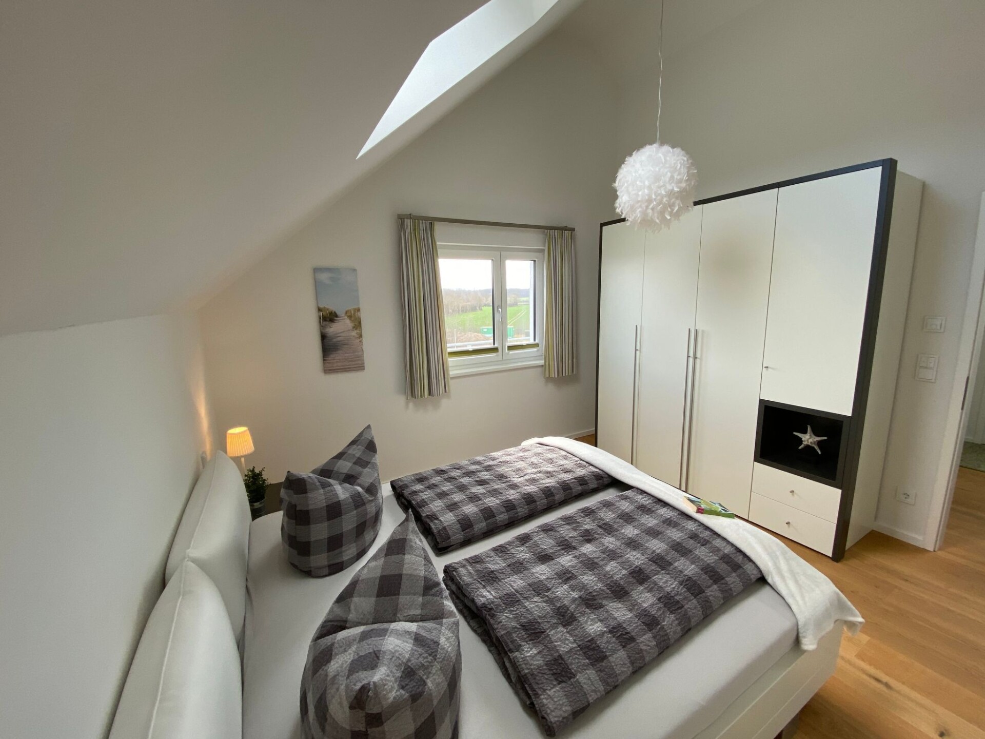 Het 2-kamer-vakantieappartement REEDER's TOPP by Seeblick Ferien ORO is een ruim appartement met ca. 70 m² woonoppervlak en een werkelijk spectaculair uitzicht op de haven, Schlei en Oostzee en bevindt zich op de 3e etage of bovenste verdieping van het woon- en handelsgebouw KLABAUTERMANN met uitsluitend rustige bedrijven (makelaardij, souvenirwinkels etc.) en torent daardoor praktisch als een klein huis boven het hele Oostzeebad uit! Het interieur van deze buitengewone havenflat met zijn woon-, eet- en keukengedeelte (ca. 31 m²), klein balkon (2 x 2 m), hal, slaapkamer en badkamer biedt genoeg ruimte om je meteen thuis te voelen - de open plafonds, waarvan sommige tot 4 m hoog zijn tot aan de nok van het dak, creëren een geheel eigen charme! Een infraroodcabine is ook beschikbaar!