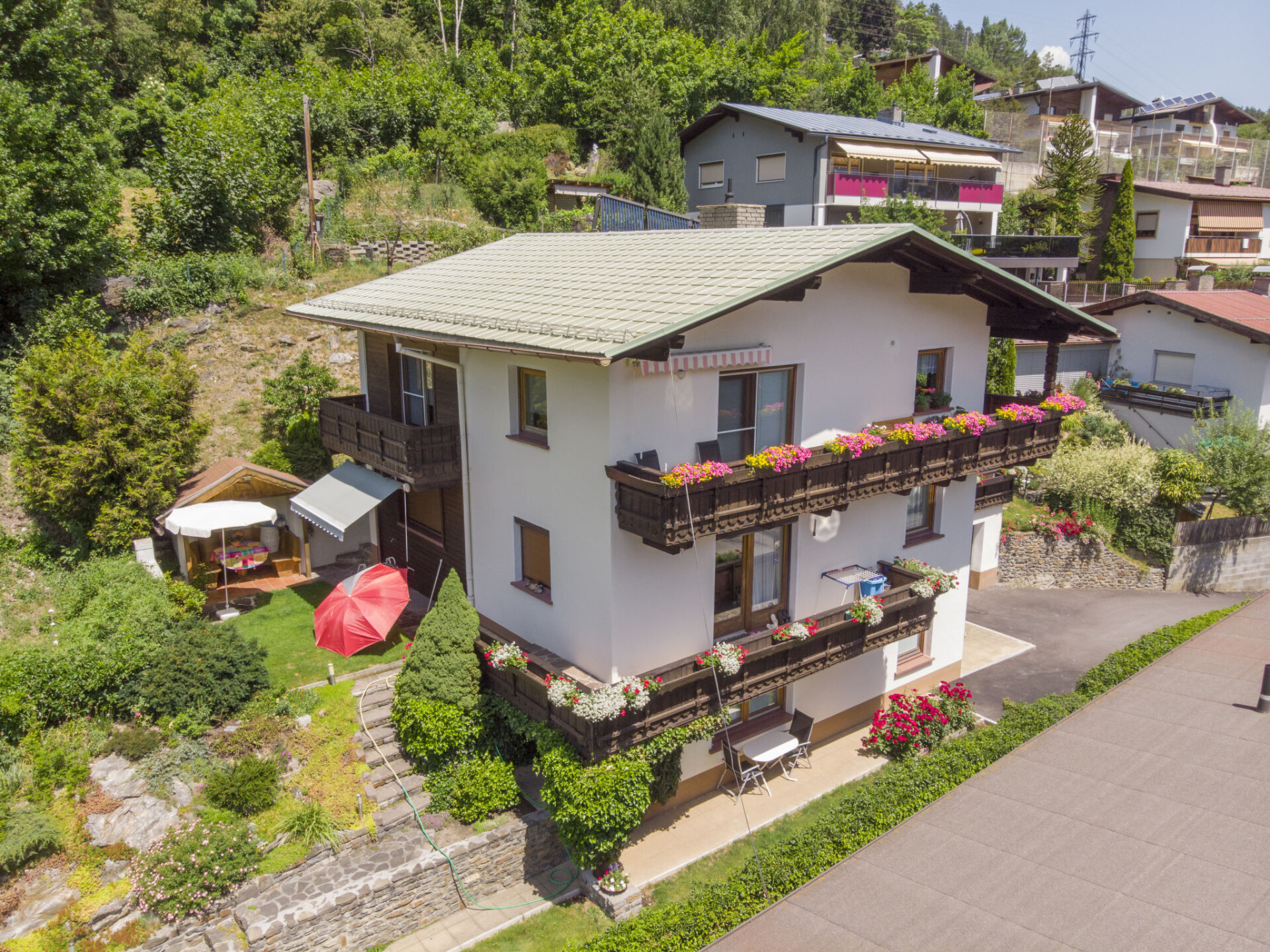 Landeck: Huis met 2 woningen "Pesjak". Buiten de plaats, 1 km van het centrum, rustige, zonnige ligging tegen een helling, direct aan de bosrand. Voor medegebruik: tuin. Tuinmeubelen. In het huis: bergruimte voor fietsen, berging voor ski's, centrale verwarming, wasmachine, droger (extra). Parkeerplaats. Levensmiddelenwinkel, restaurant 800 m, bushalte "Stanz b.Landeck Prandtauerweg" 400 m, treinstation "Ötztal Bahnhof" 32.2 km, openluchtzwembad 1 km. Tennis 1 km, bergtrein 1.5 km, skibushalte 1 km. Attracties in de buurt: Outdoor Park 'Area 47' in 33 km. Bekende skigebieden kunnen gemakkelijk worden bereikt: Ischgl Paznaun 20 km, St. Anton am Arlberg 20 km, Serfaus-Fiss-Ladis 30 km. Mogelijkheid om te raften 500 m (reserveren verplicht). Mogelijkheid om te paragliden. De eigenares spreekt ook Frans.