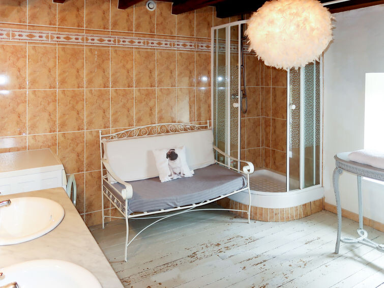 "Peuchaud", huis 6-kamers 144 m2 op 2 verdiepingen. Gerenoveerd, rustiek en smaakvol ingericht: woon-/eetkamer met zwedenkachel en eettafel. Salon met TV en DVD. 1 kamer met 1 2-pers bed (140 cm, lengte 190 cm). Keuken (1 kookplaat, oven, afwasmachine, Gasfornuis, 3 kookpitten (vlammen), broodrooster, waterkoker, magnetron, diepvriezer, elektrische koffiemachine) met eettafel. Bad/WC, douche/WC, hydro massage bad. Bovenverdieping: 1 kamer met 1 2-pers bed (140 cm, lengte 190 cm). 1 kamer met 2 bedden (100 cm, lengte 180 cm). 1 kamer met 1 bed (110 cm, lengte 180 cm), 1 2-pers bed (140 cm, lengte 190 cm). Douche, aparte WC, dubbele wastafels. Elektrische verwarming. Parketvloeren, natuurstenen vloeren. Terras, ruime zithoek in de tuin. Terrasmeubelen, barbecue (verrijdbaar). Ter beschikking: wasmachine, strijkijzer, kinderbed, haardhout (extra). Internet (WiFi, gratis). Niet rokers woning. Maximaal 3 huisdieren/honden toegestaan. Rookmelders.