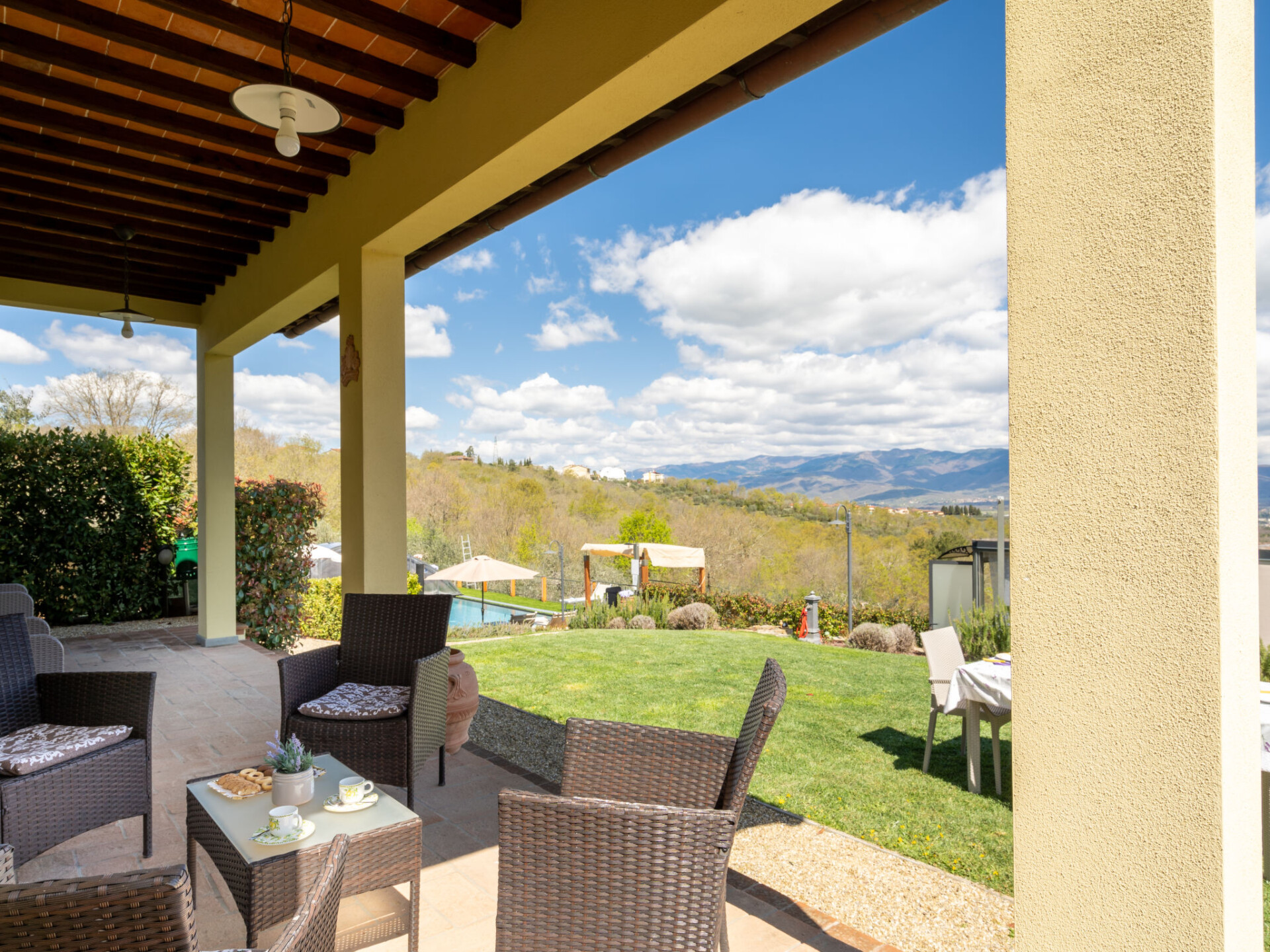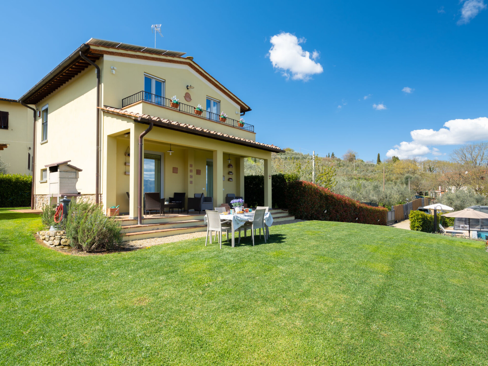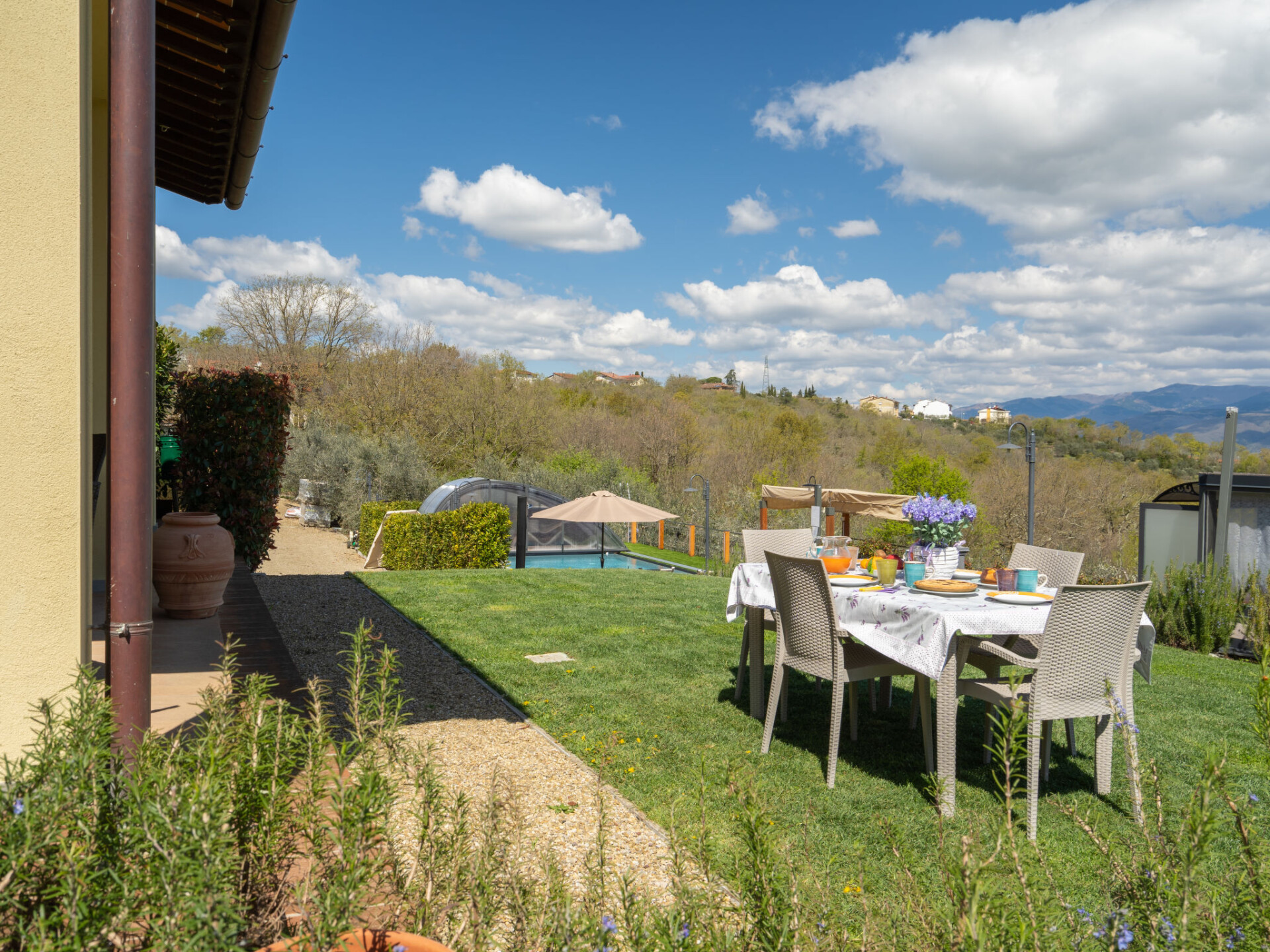 Comfortabele eengezinswoning "Pianelli". 1 km van het centrum van Pergine Valdarno, 15 km van het centrum van Arezzo, 40 km van het centrum van Siena, tegen een helling, te midden van groen. Voor alleengebruik: terrein 1.500 m2 (omheind), tuin op verschillende niveaus gazon en planten, openluchtzwembad verwarmd (8 x 4 m, seizoensgebonden beschikbaarheid: 10.Apr. - 25.Okt., extra). Buitendouche, prieel, terras, tuinmeubelen, barbecue, onderhoud zwembad door de eigenaar/tuinman. In het huis: sauna (extra). Hot tub (extra). Alarmsysteem. 500 m lange toegangsweg (onverharde weg). Parkeerplaats (voor 2 auto's) op het terrein. Oplaadstation. Supermarkt 1 km, bushalte 1 km. Attracties in de buurt: Arezzo 20 km, Firenze 65 km, Monte San Savino 29 km, Cortona 48 km, Castiglion Fiorentino 37 km. Bewaakt vakantiecomplex.