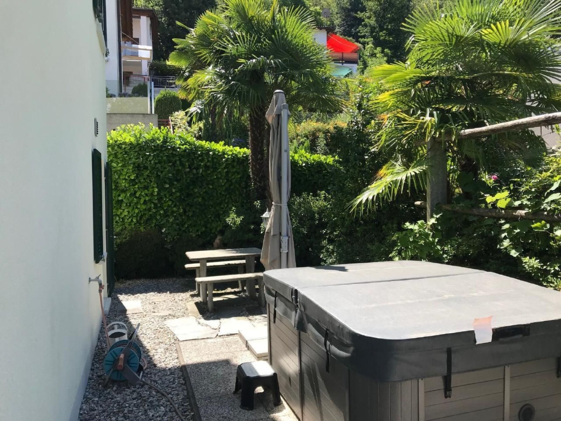 Discover the exclusivity of Casa al Castagno, a modern and detached holiday home that promises luxurious living comfort in the midst of a picturesque landscape with its breathtaking view of the lake and a generous living space of 145 square metres. This holiday home is ideal for families, couples and groups looking for an exceptional combination of quality, comfort and the incomparable beauty of nature.The interior of the house impresses with its high-quality furnishings and well thought-out room layout. The well-equipped kitchen and the spacious living and dining area on the ground floor offer ideal conditions for spending time together. The two separate studios on the upper floor, each with a bedroom, double bed en suite bathroom and private balcony, guarantee privacy and maximum comfort. Furthermore, the additional galleries, equipped with single beds, and an available cot make this holiday home particularly family-friendly.In the outdoor area of the house, guests will find plenty of opportunities for relaxation and entertainment. Terraces, partly covered and with seating areas, a small sunbathing lawn and a 3-seater jacuzzi, as well as access to a communal pool offer relaxation and enjoyment in a spectacular setting. These excellently designed outdoor areas invite you to enjoy the picturesque scenery to the full.The immediate surroundings of Casa al Castagno are full of opportunities for leisure activities. Just a few minutes away is Piazzogna with its charming town centre, which offers restaurants and shops. For active guests, there are hiking trails accessible directly from the house, and the proximity to the towns of Locarno and Ascona as well as the easy crossing with the liner from Magadino add cultural and adventurous activities to the offer. Attractions such as the "Eisenhut" botanical garden, Swissminiatur and the Falconeria in Locarno promise unforgettable experiences.Casa al Castagno is your dream destination for an unforgettable holiday. Thanks to the 4-star superior classification by the Swiss Tourism Federation (STV), the inviting surroundings and the award for family and biker-friendly accommodation, this holiday residence guarantees an exceptional break. Explore the beauty of the Gambarogno and enjoy a stay that will undoubtedly remain in your memory. NL-00000265