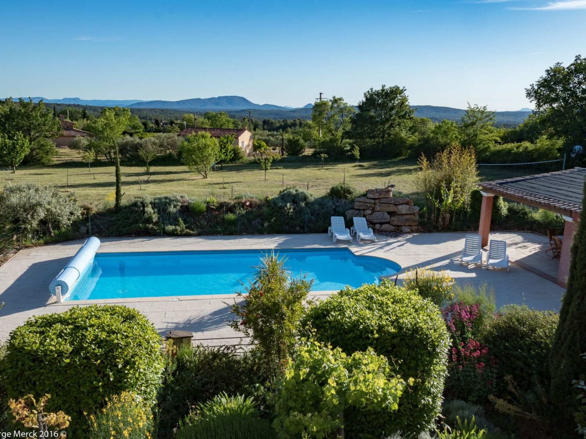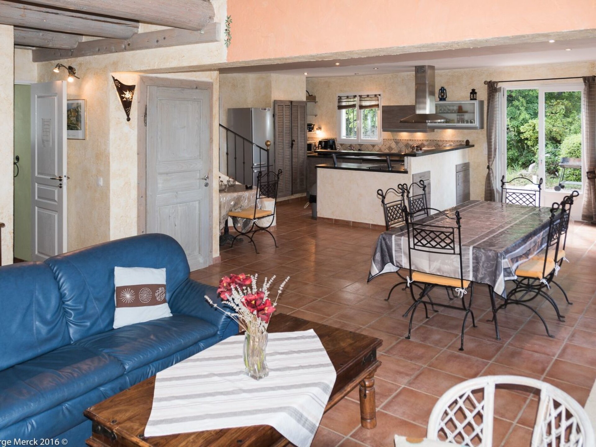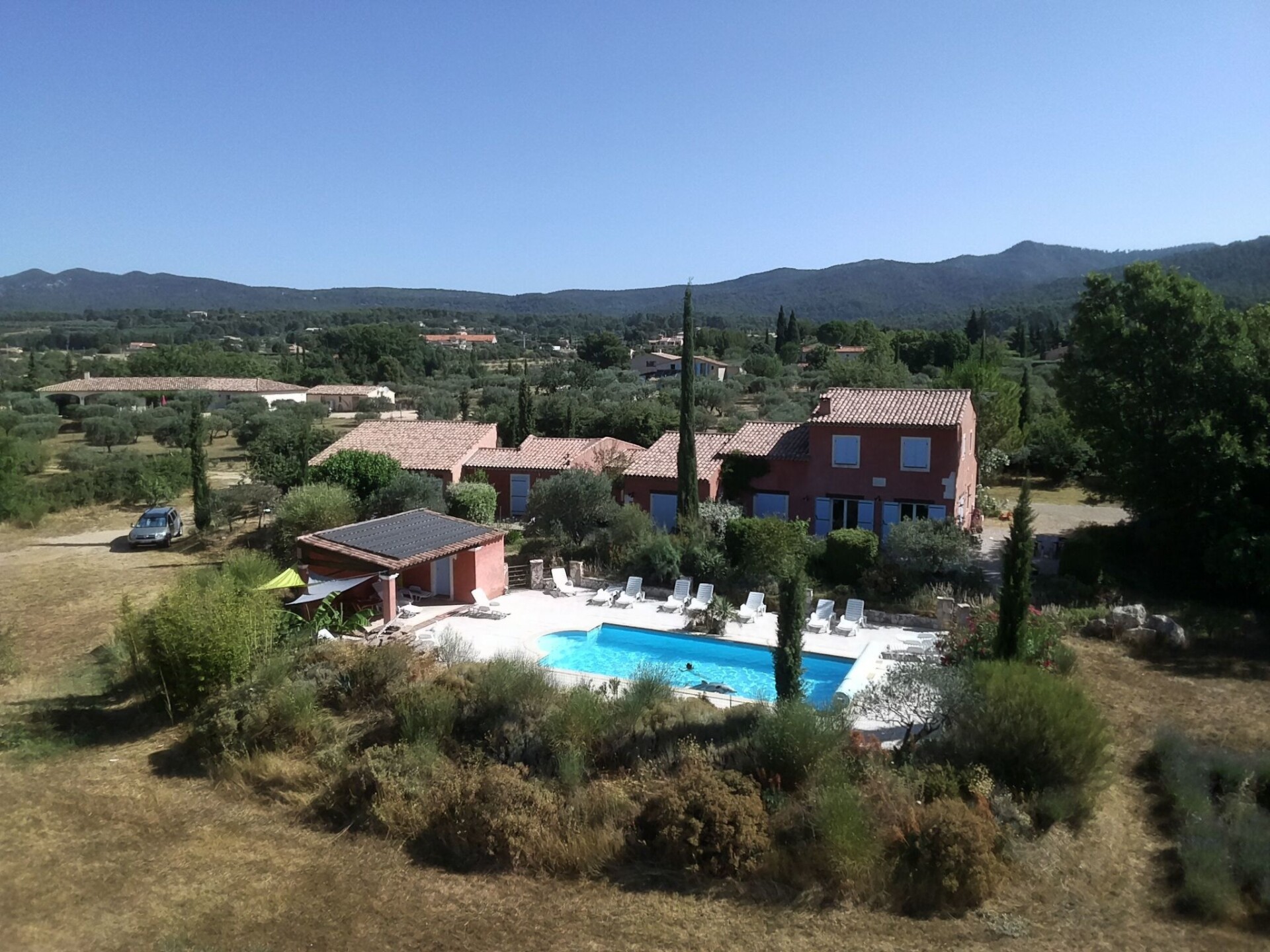 Le Mas de l'Aven, comprising 4 gîtes, is set in very peaceful surroundings in a large garden of over 7000m2 planted with trees. The charming village of Aups is within walking distance of the gîte. The gîte is located 15 km from the Lac de Ste Croix, 30 km from the Gorges du Verdon and close to several pretty southern villages with waterfalls, troglodyte houses, tufa cliffs and the most beautiful villages in France.Le Pin Parasol" has a surface area of 100m2 and offers a number of large, shaded terraces planted with trees and independent of the other gîtes.A large living room opens onto a fully-equipped open-plan kitchen with plenty of storage space.Upstairs is a bedroom with a double bed. Upstairs is a bedroom with a double bed and a second bedroom with three single beds.A cosy mezzanine TV lounge area.A bathroom with walk-in shower.Two separate WCs, one on the ground floor.A large solar-heated swimming pool (10m x 5m), shared around a large deck with pool house and plenty of sun loungers and parasols.A volleyball court, ping pong table, play area with swings, slide and boules for you to enjoy. SIREN: 911 410 371