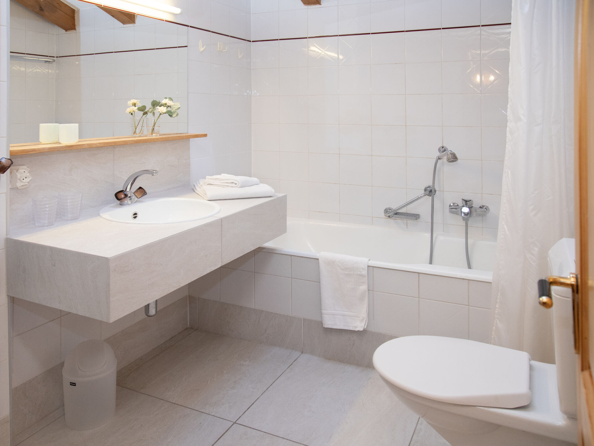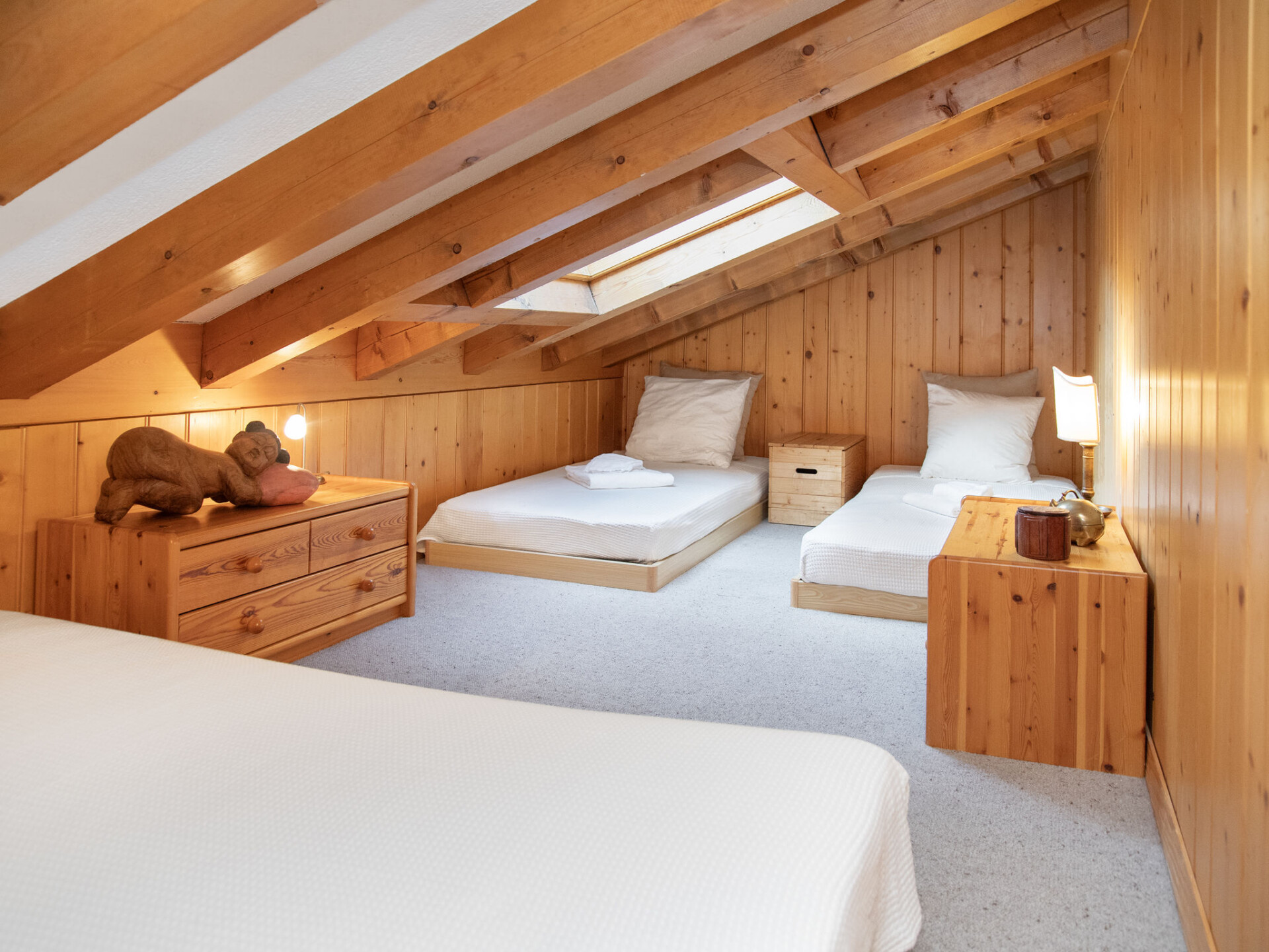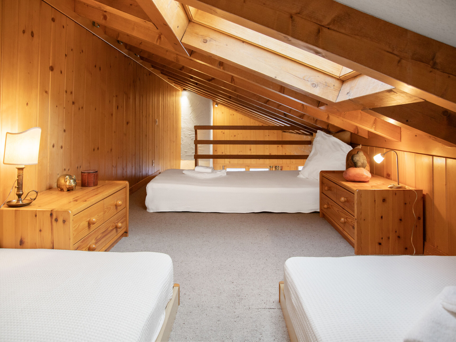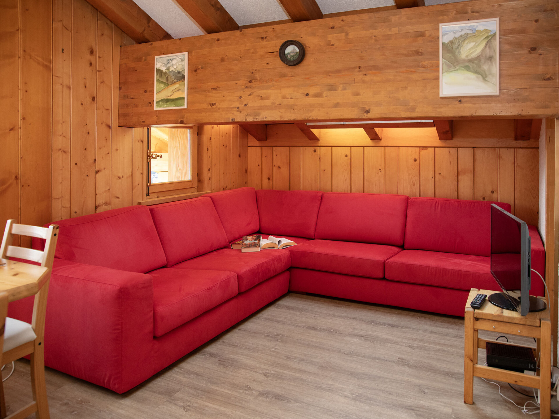 "Pinot Gris combles", dakappartement 2-kamers 59 m2 op 2 verdiepingen, op de bovenste verdieping, op het zuiden gelegen. Doelmatig en mooi ingericht: woon-/eetkamer met afgeschuinde daken met open haard (alleen decoratie), eettafel, Kabel-TV en elektrische verwarming. Uitgang naar het balkon, op het zuiden. 1 kamer met 1 2-pers bed (2 x 90 cm, lengte 190 cm). Kookhoek (4-pits kookplaat, oven, afwasmachine, waterkoker, fondue Set (kaas)). Bad/WC. Elektrische verwarming. Zolderverdieping: (steile trap) kleine, open galerij met afgeschuinde daken met 3 bedden (90 cm, lengte 190 cm). Klein balkon, op het zuiden gelegen. Balkonmeubilair. Zeer mooi panoramazicht op de bergen, de skipiste, het landschap en de plaats. Ter beschikking: haardroger. Internet (WiFi, gratis). Niet rokers woning, geen parkeerplaats. Geen lift. In plaats van een afgesloten slaapkamer bevinden sommige slaapgedeeltes zich in een open ruimte (galerij, nis, etc.).
