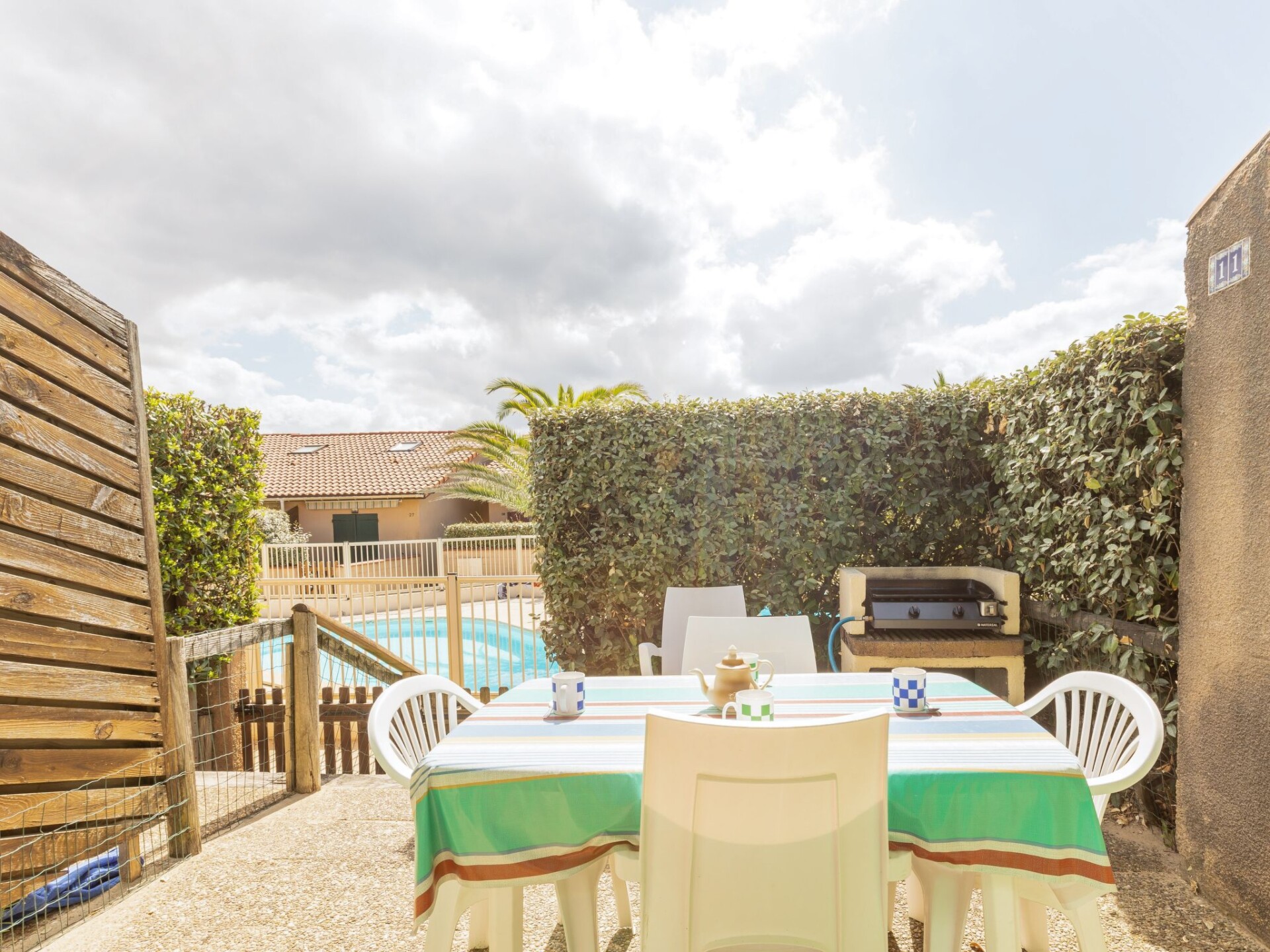 Capbreton 2 km van Hossegor: De residentie "Plage Sud" bestaat uit 25 huizen in een rij, bevindt zich op 100m van het strand van la Savane in Capbreton (duinen over te steken) rijtjeshuis "Plage sud". 100 m van zee, 6 km van het meer. Voor medegebruik: openluchtzwembad (10 x 8 m, 90 - 200 cm diepte, seizoensgebonden beschikbaarheid: 15.Jun. - 15.Sep.). Parkeerplaats. Levensmiddelenwinkel, restaurant 800 m, bushalte 300 m, zandstrand "La Savane" 100 m. Golfterrein (18 holes) 5 km.