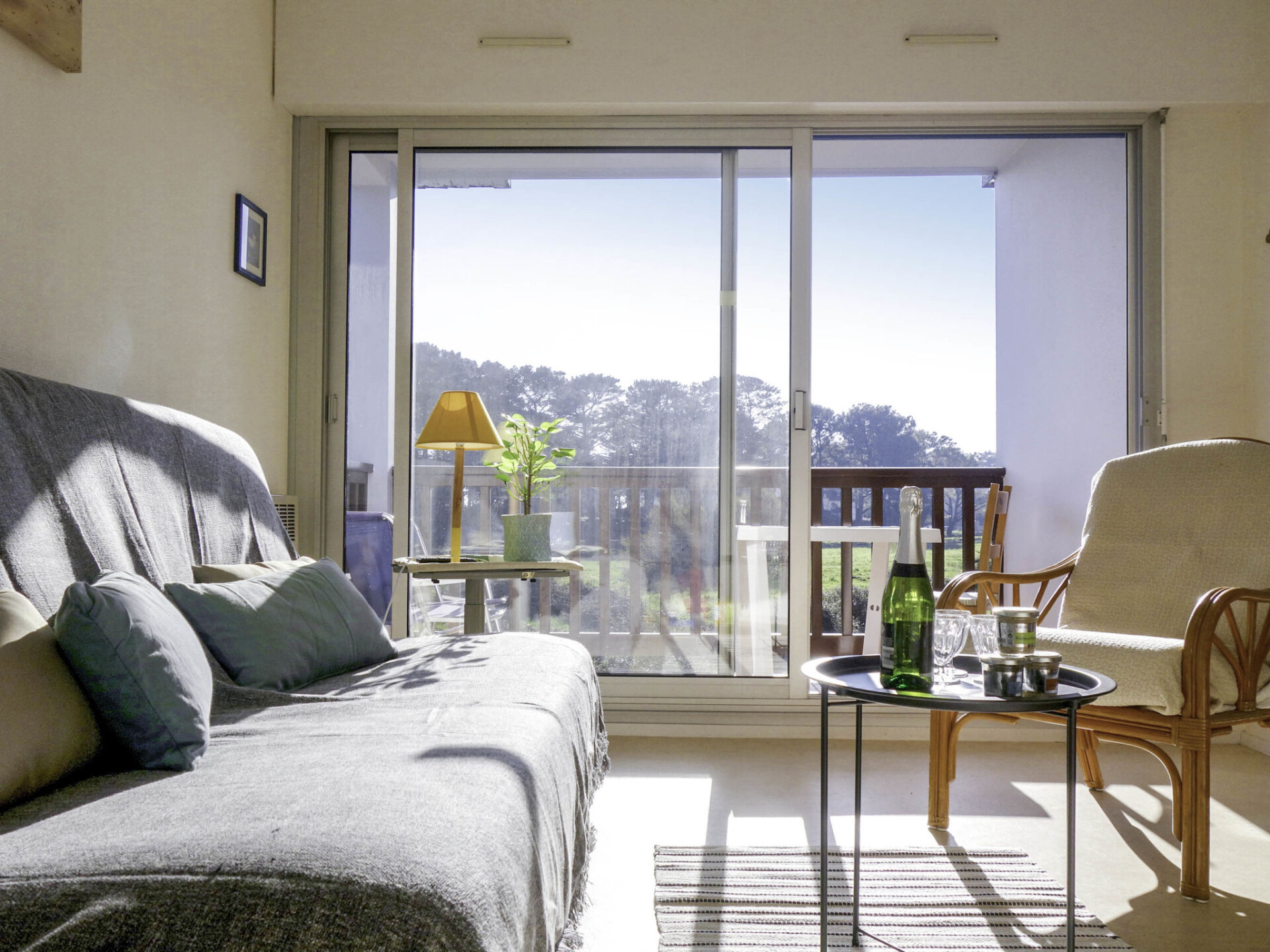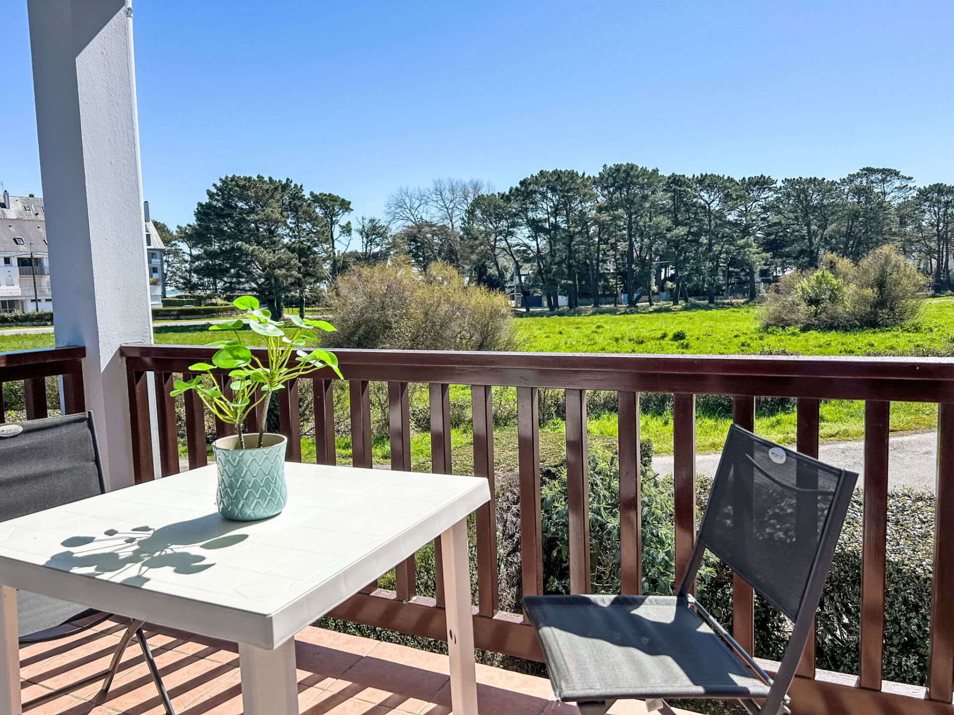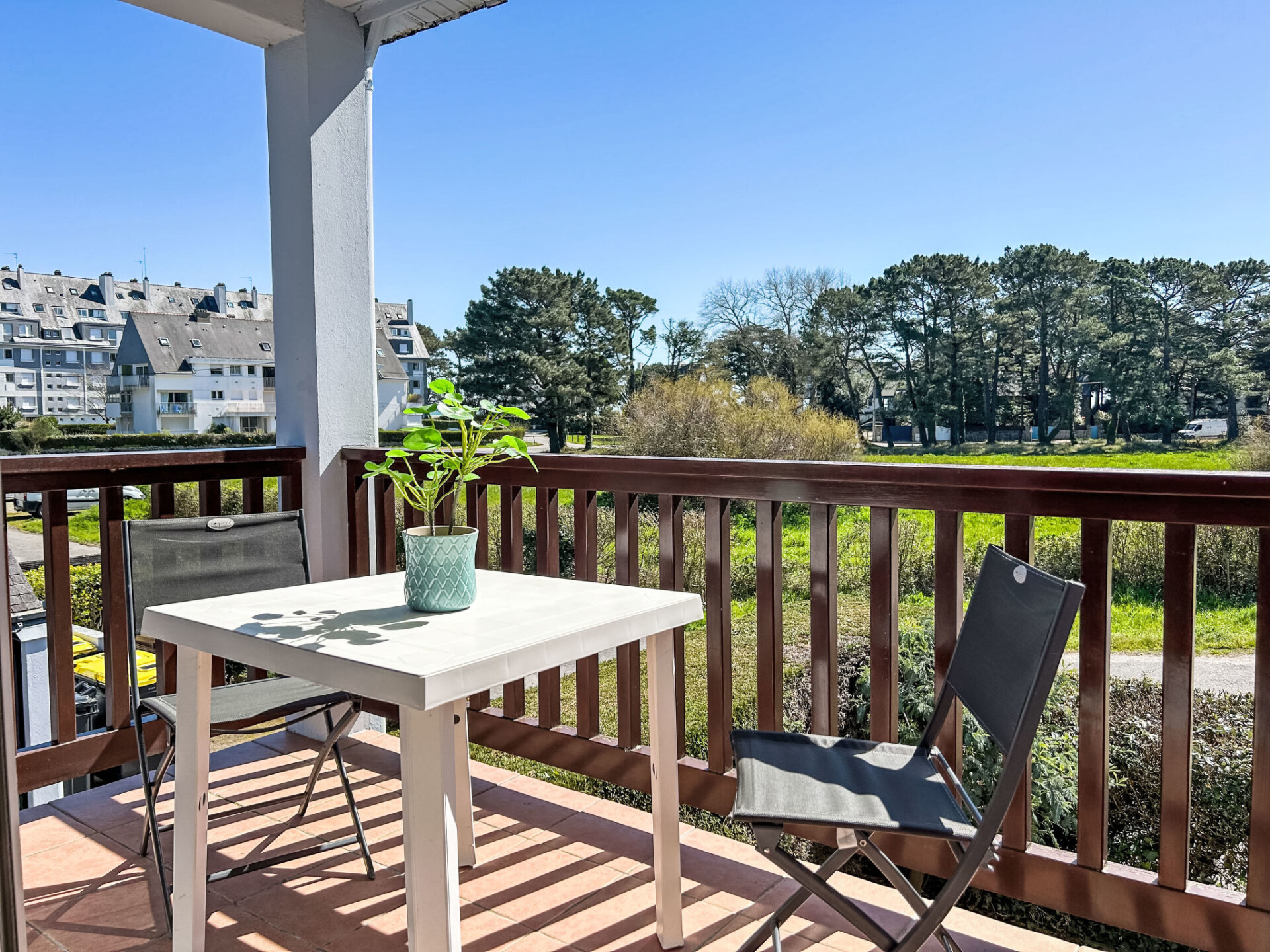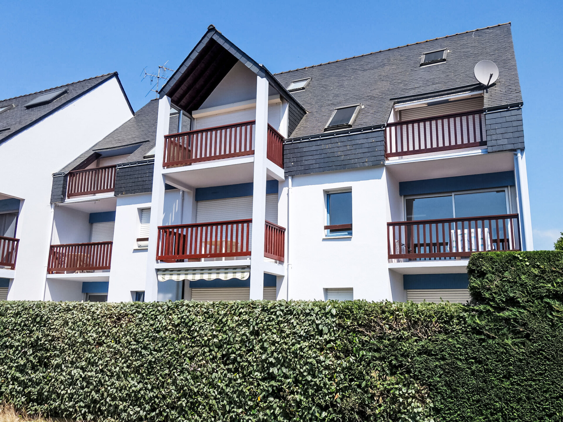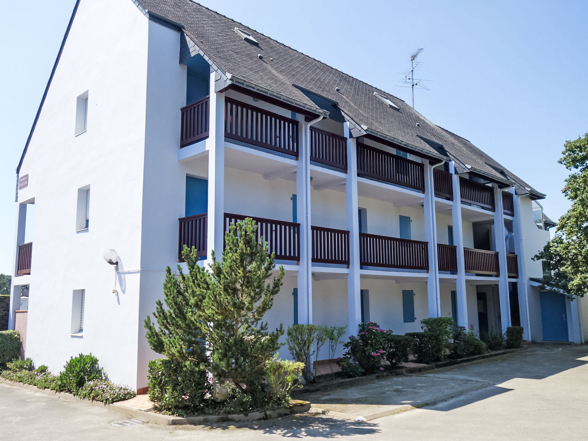 Flatgebouw "Plein Ciel", van 2 verdiepingen. Centrale, rustige ligging, 150 m van zee, 150 m van het strand. In het huis: bergruimte voor fietsen. Winkel 2 km, supermarkt 500 m, restaurant 2 km, café 2 km, zandstrand "Plage du men Du -Anse de Beaumer" 200 m, thermaalbad "Thalassothérapie de Carnac" 3 km. Zeilschool 3 km. Attracties in de buurt: Vannes 35 km, Lorient 50 km, Thalassotherapie 3 km, Alignements de Carnac 4.5 km, Presqu'île de Quiberon 20 km, La Trinité 3 km.